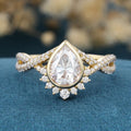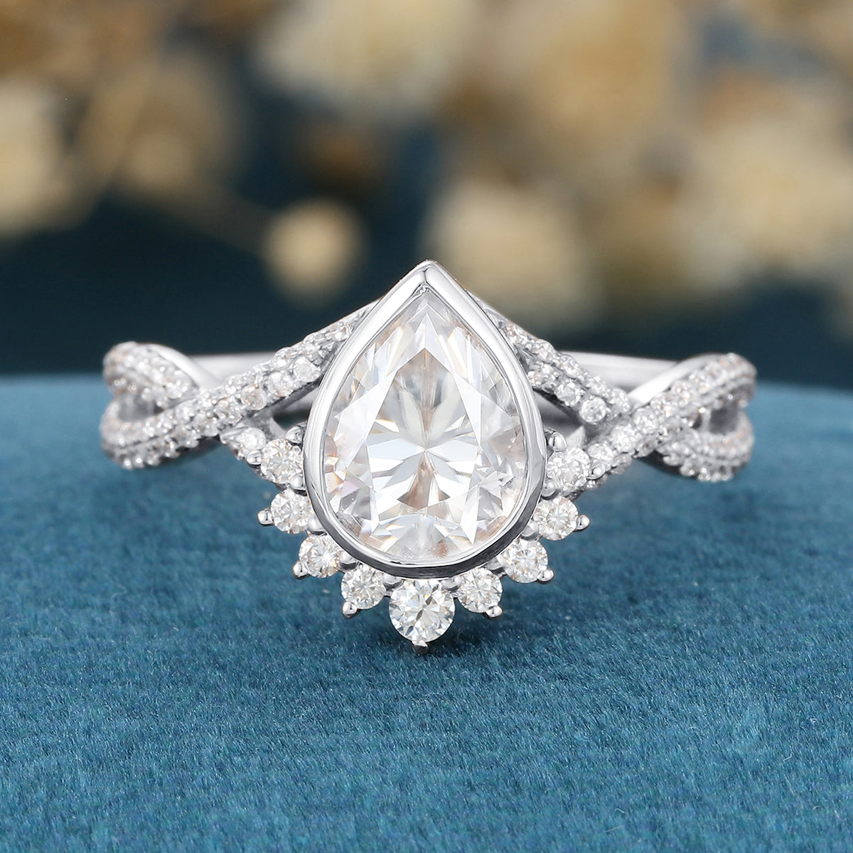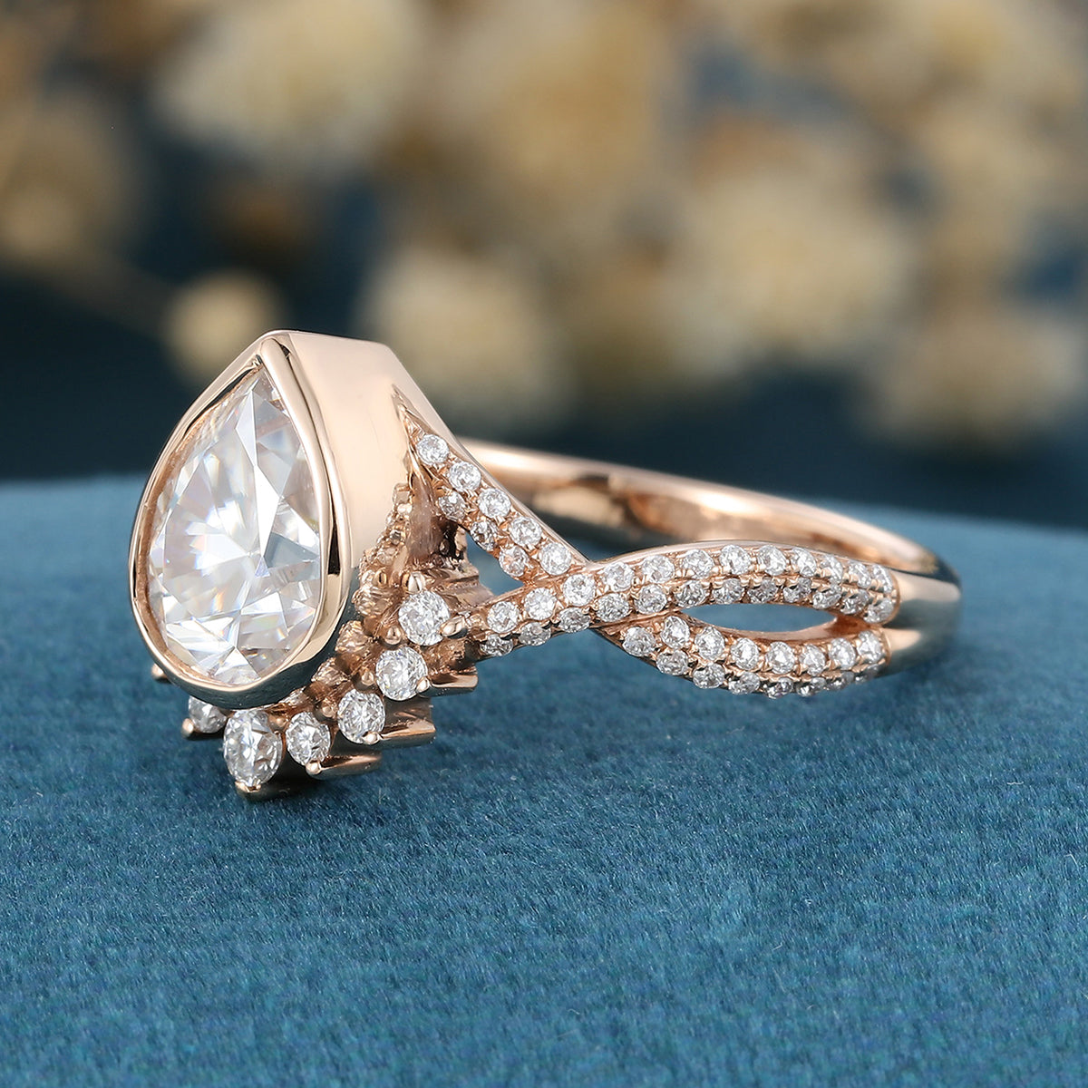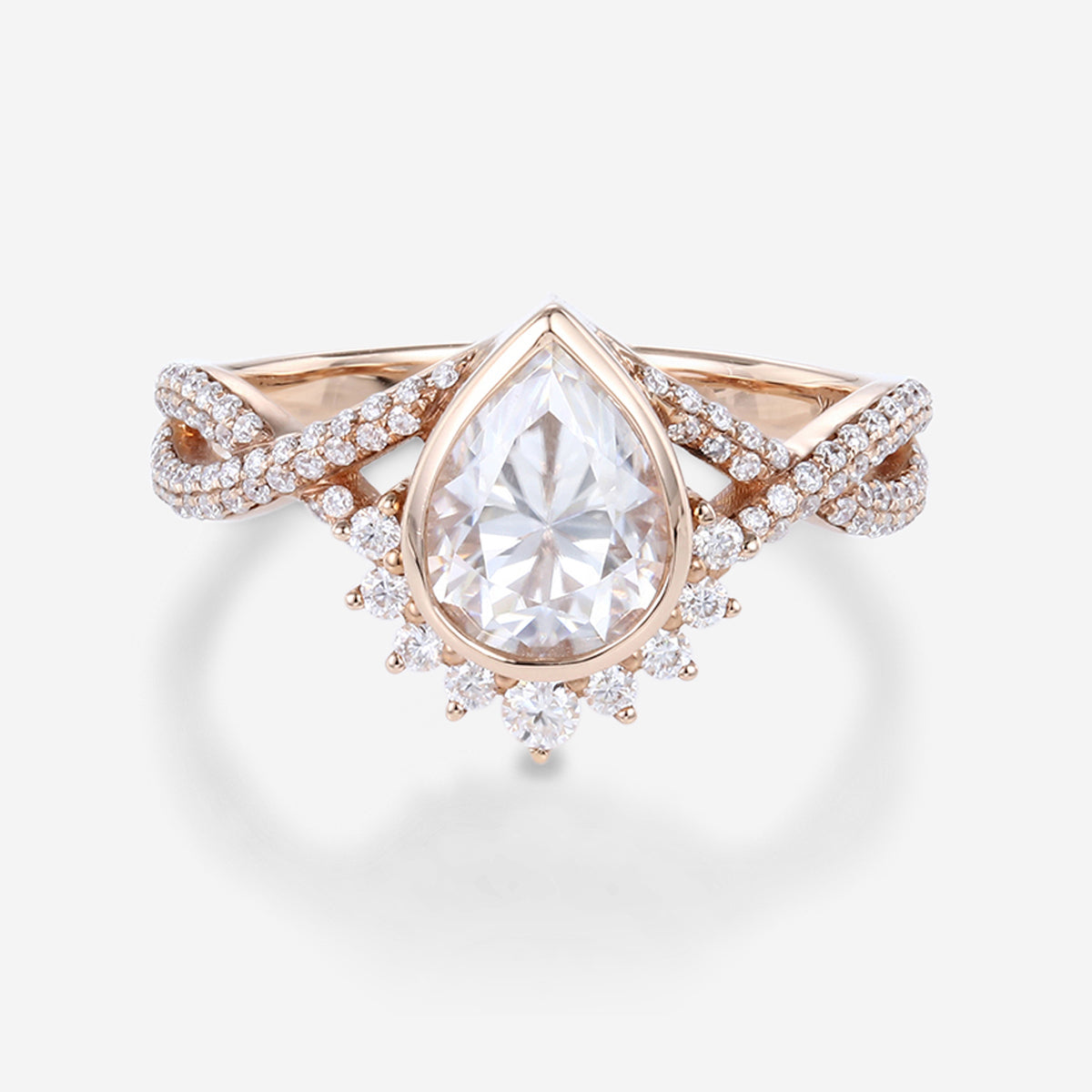 Bezel setting Pear cut Moissanite Gold Engagement Ring