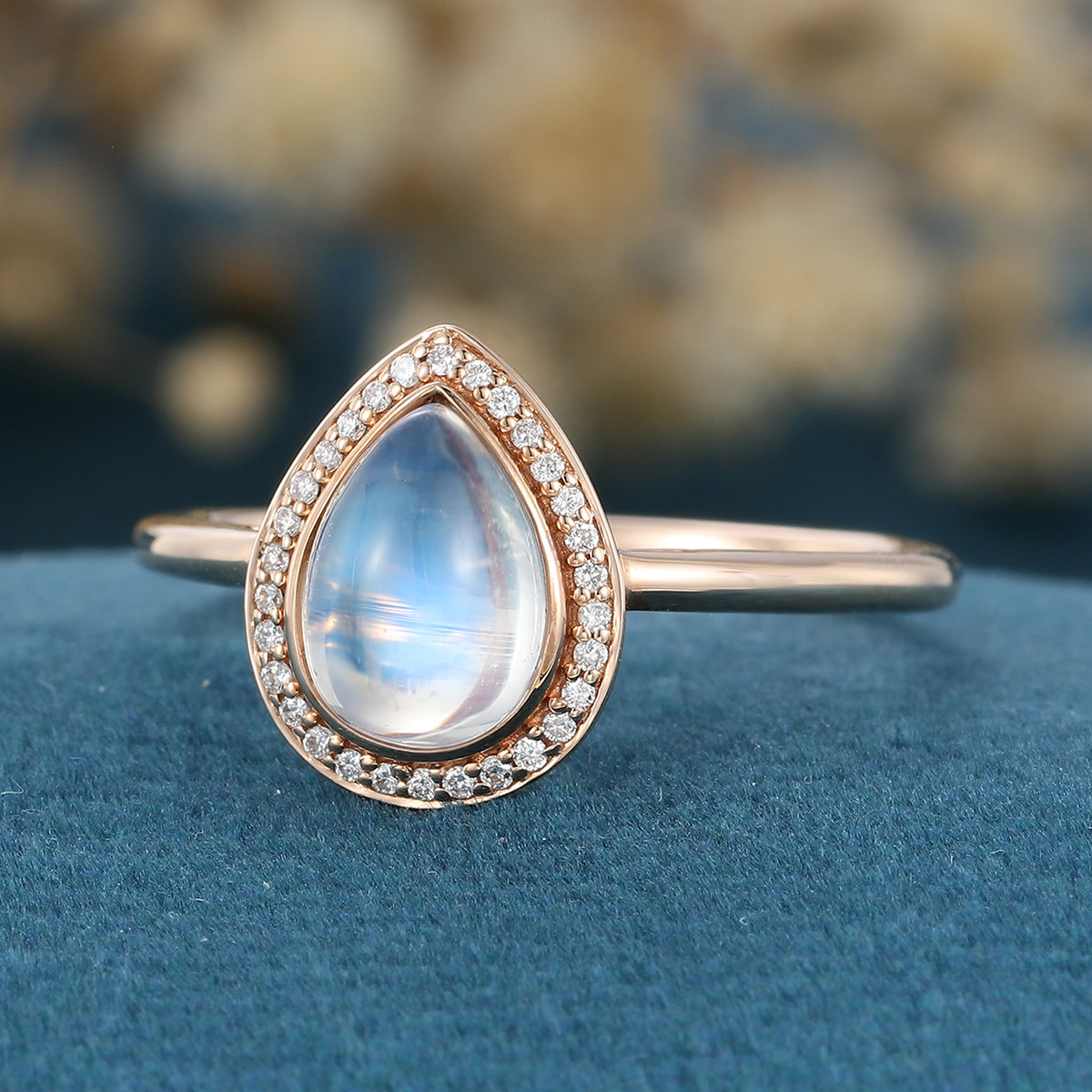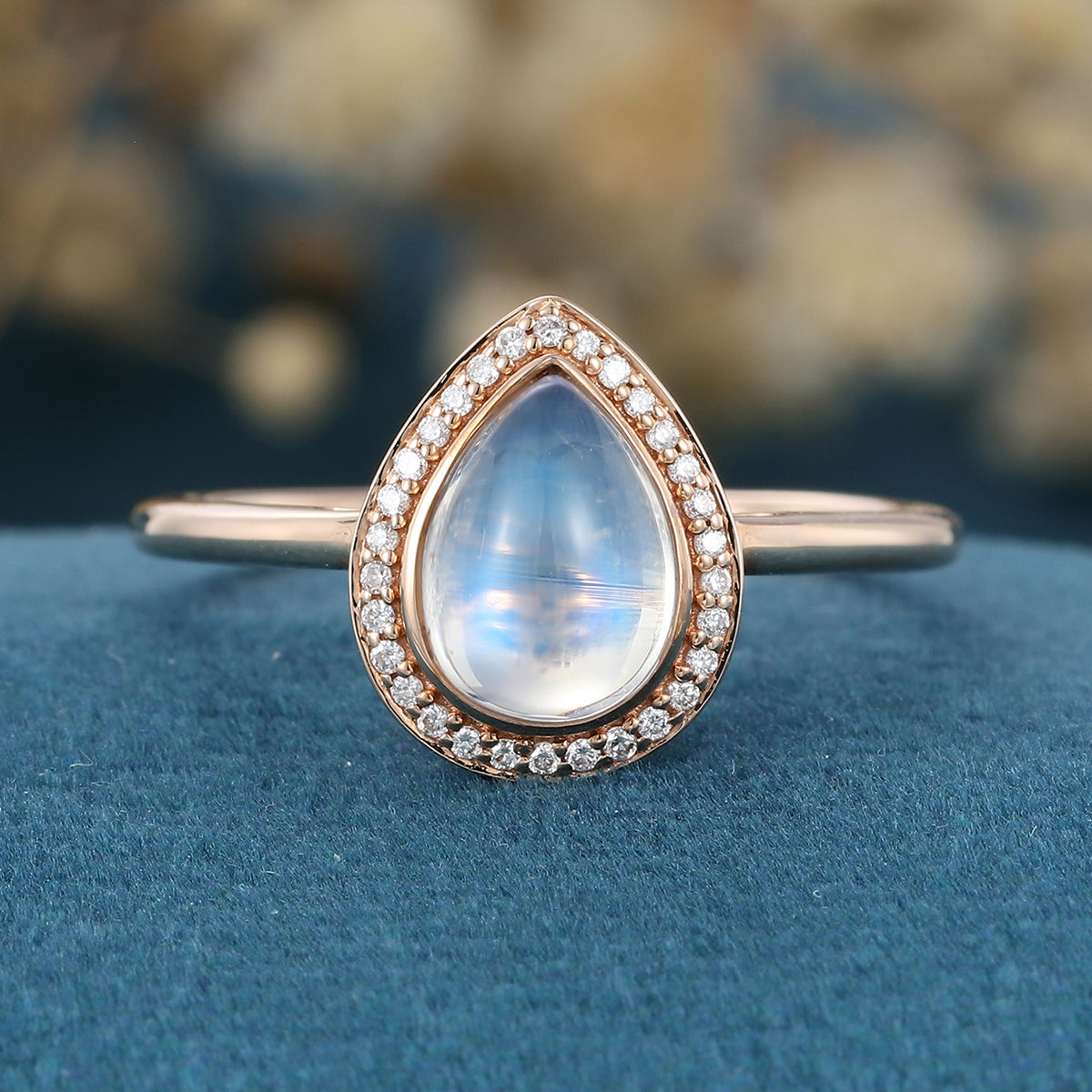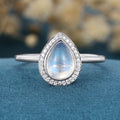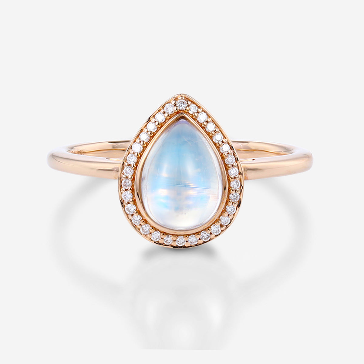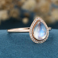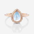 Bezel setting Pear cut Moonstone Halo Moissantie| Diamonds Gold Engagement Ring
