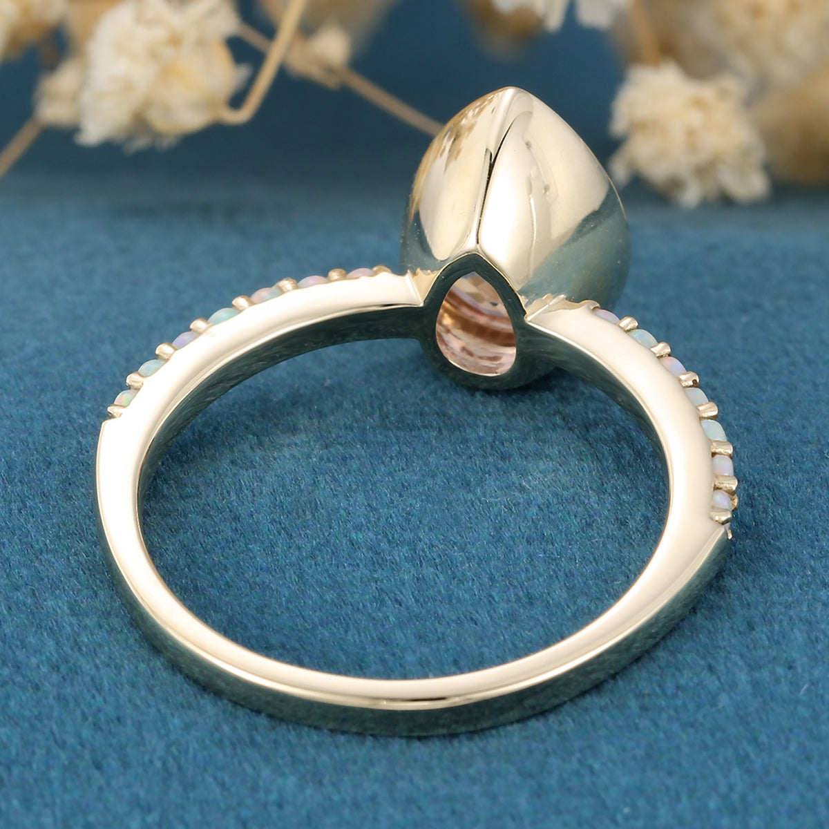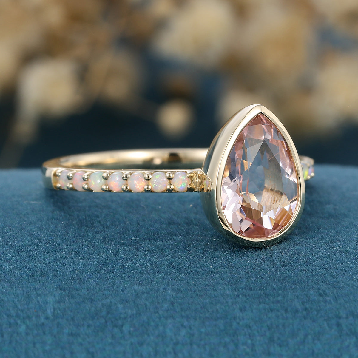 Bezel setting Pear cut Morganite Half Eternity Gold Engagement Ring