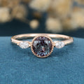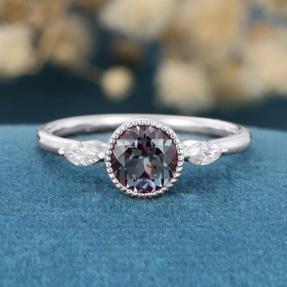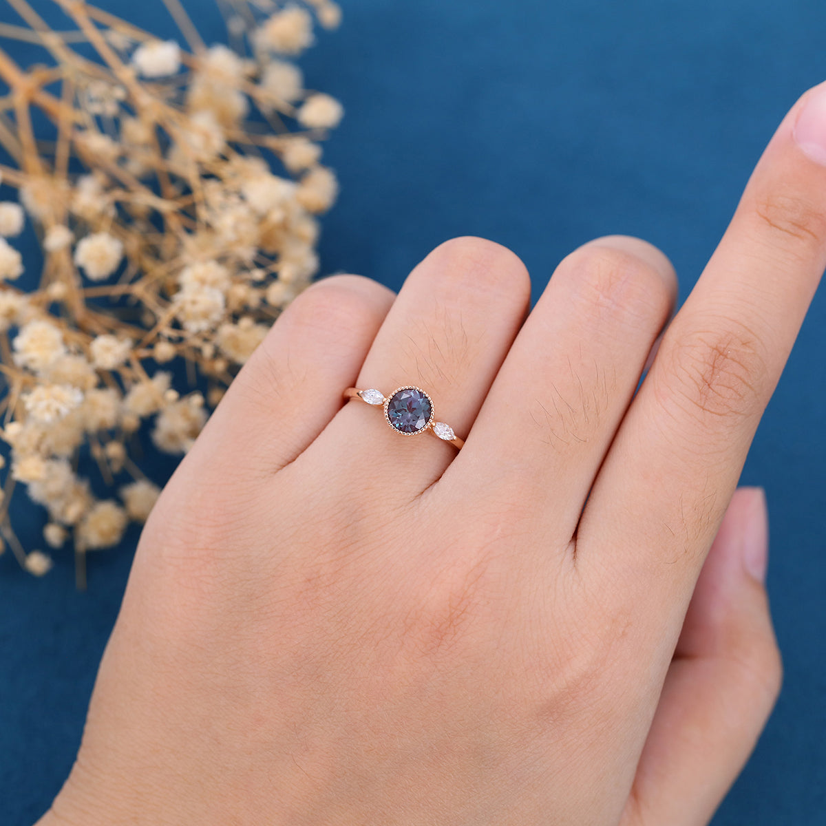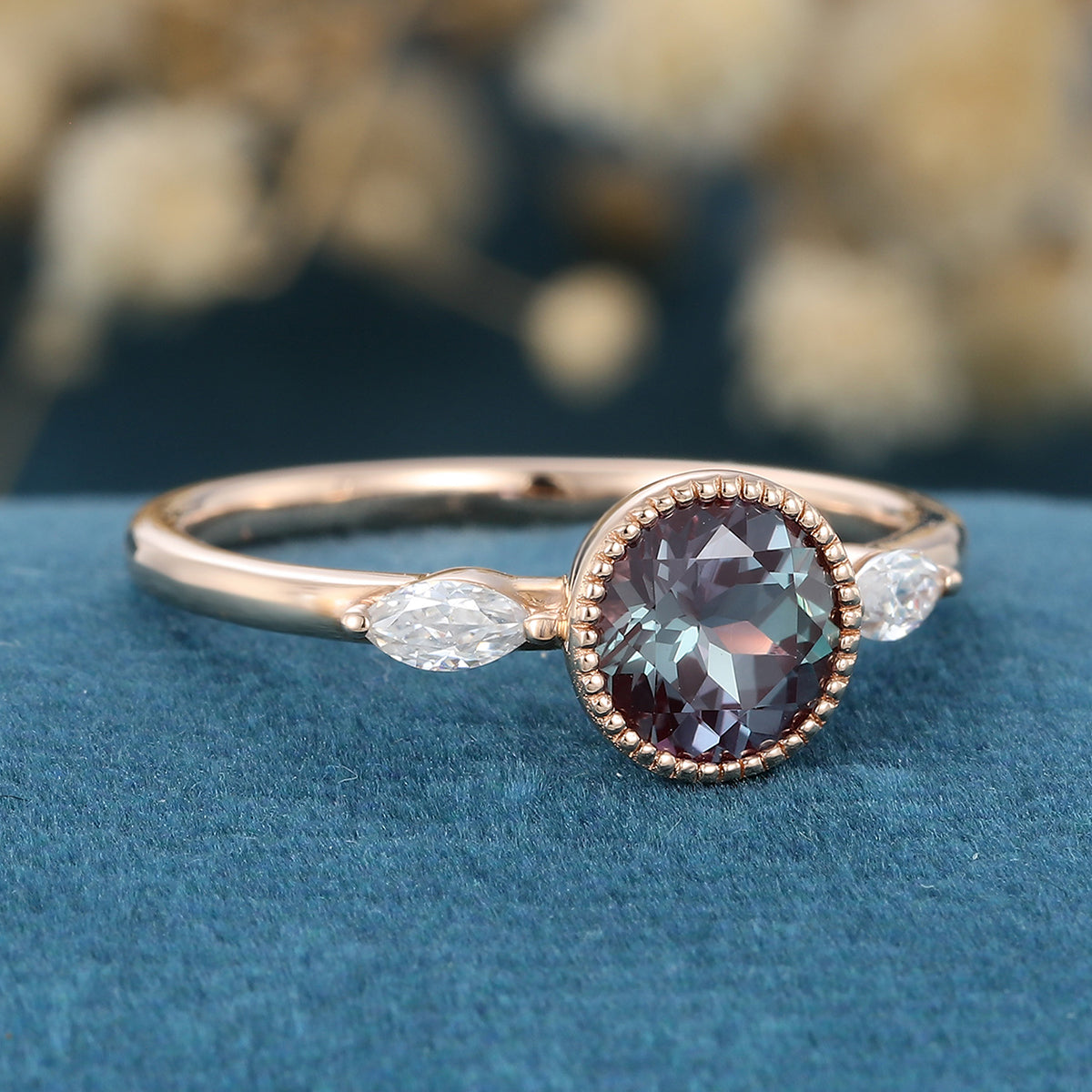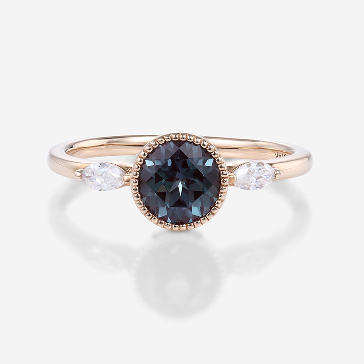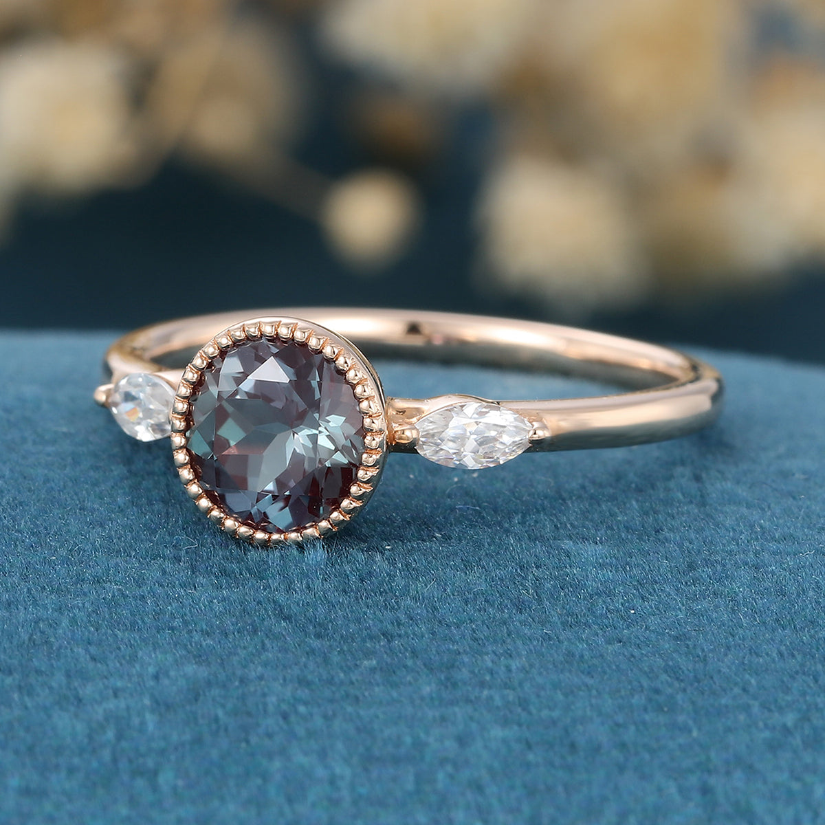 Bezel setting Round cut Lab Alexandrite Gold Engagement Ring