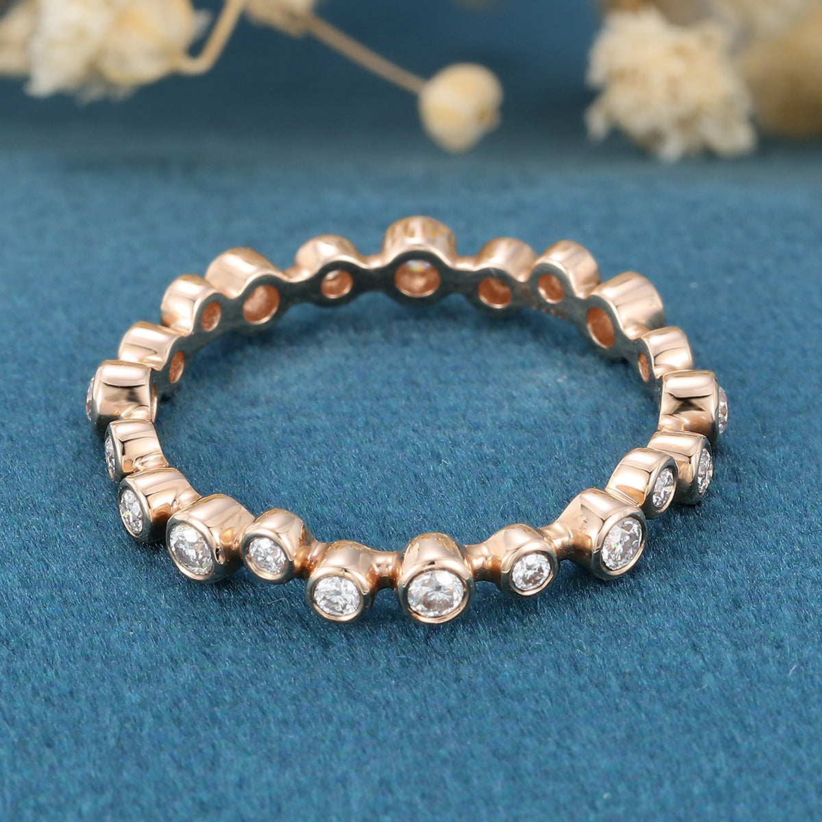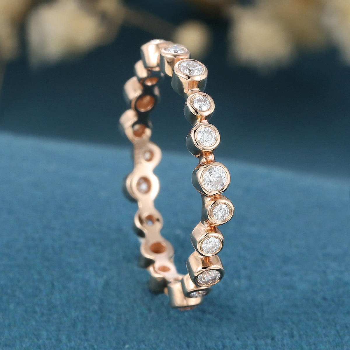 Bezel setting Round cut Moissanite | Diamond Full Eternity Gold Wedding Band