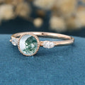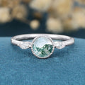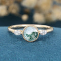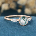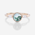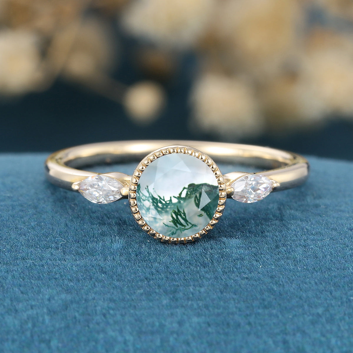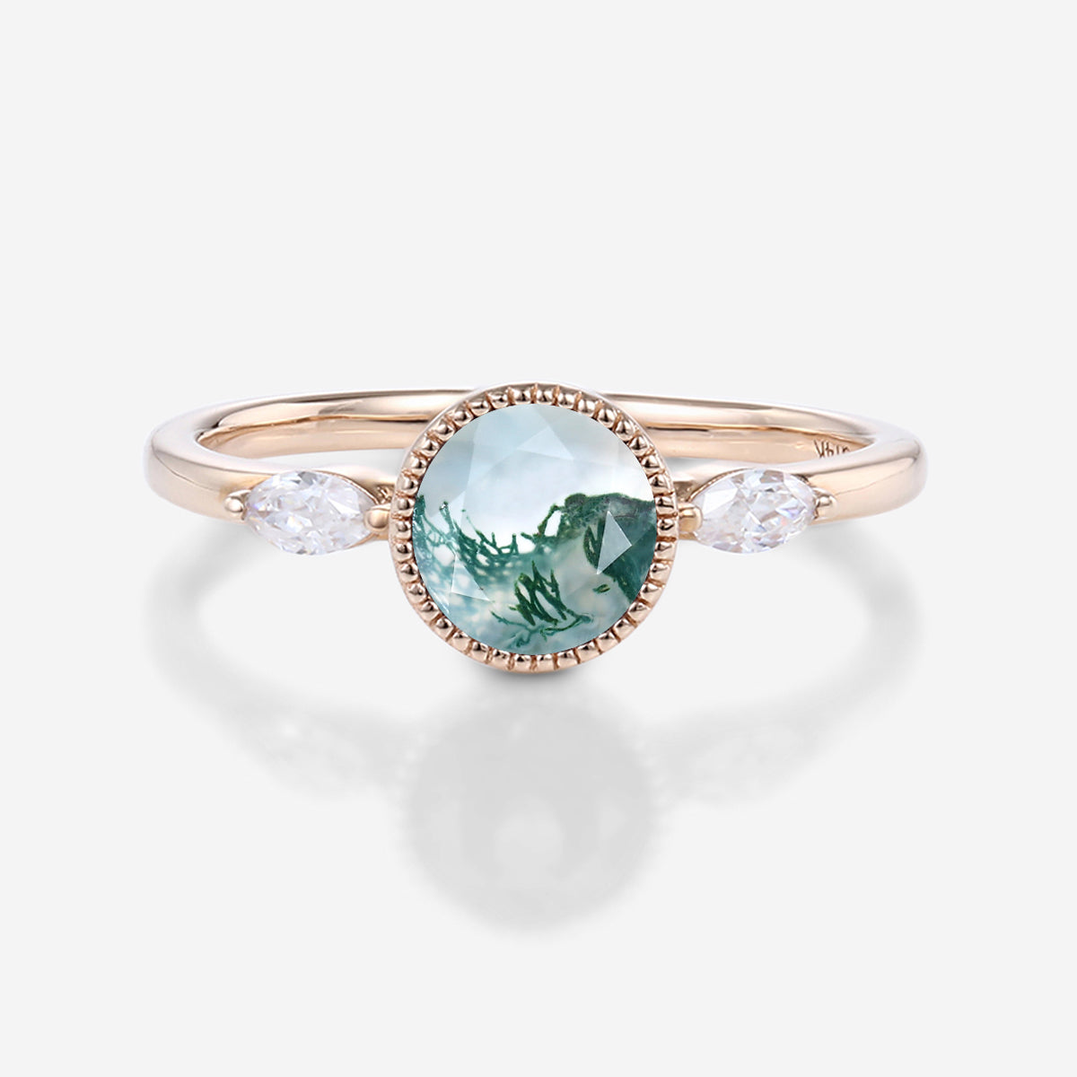 Bezel setting Round cut Moss Agate Gold Engagement Ring