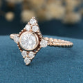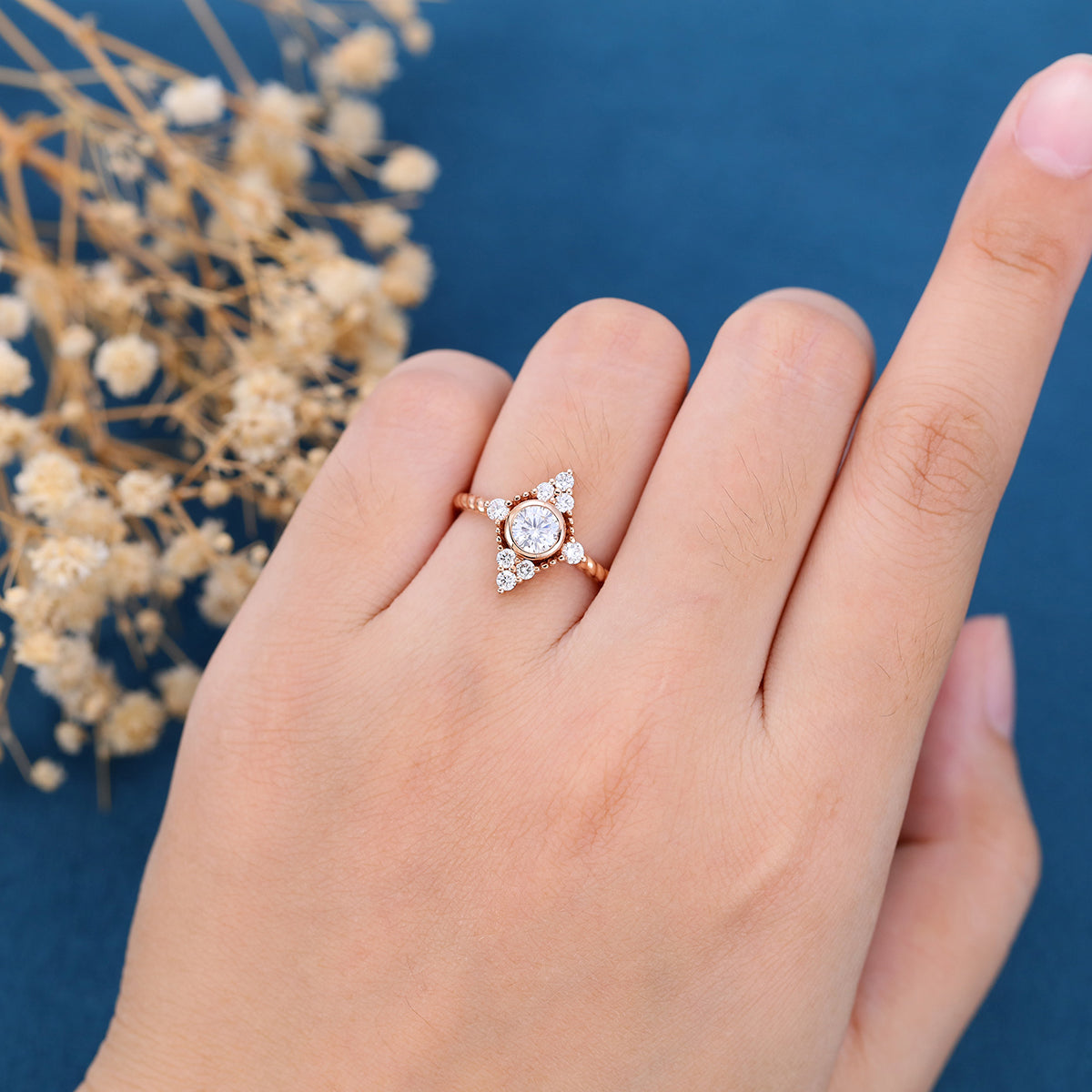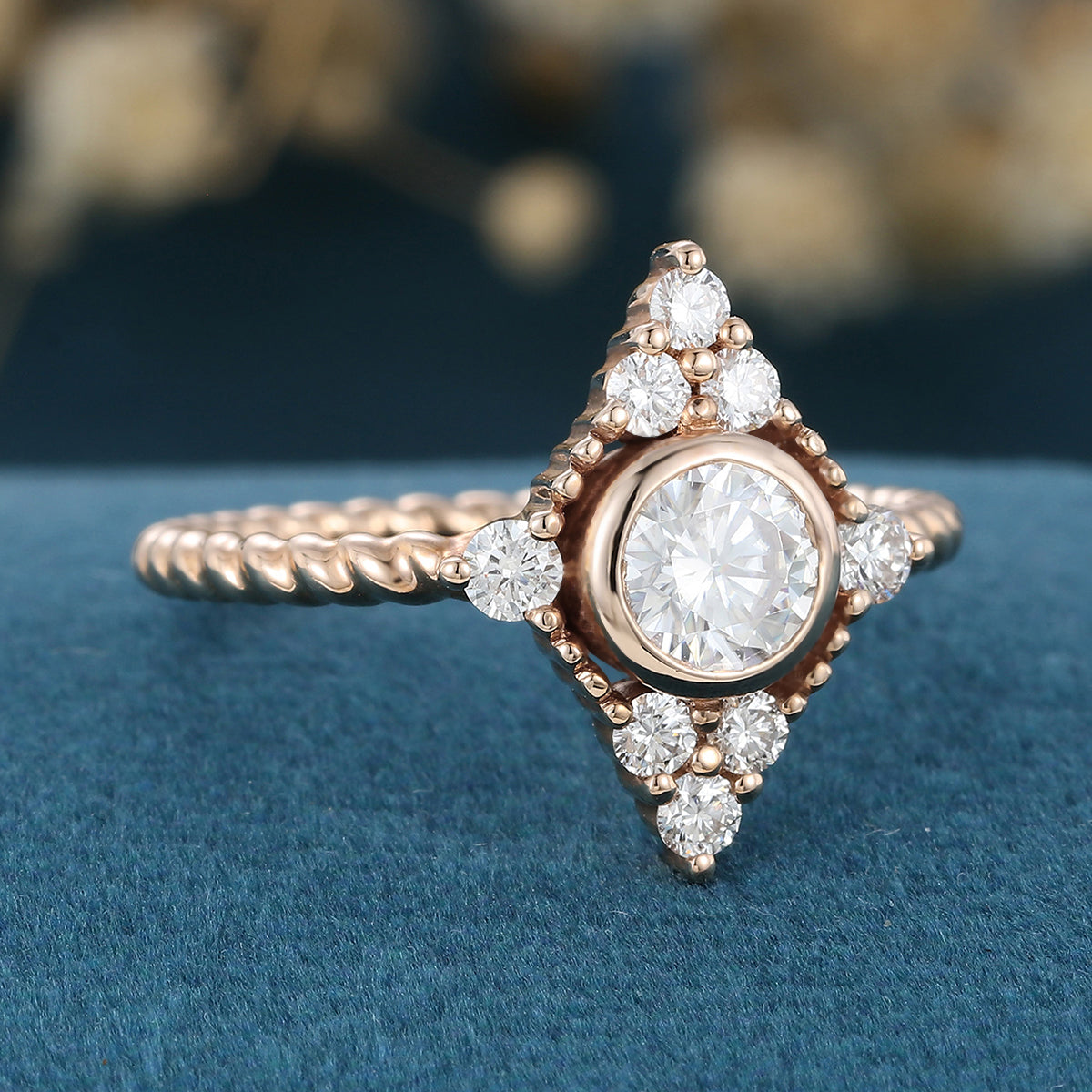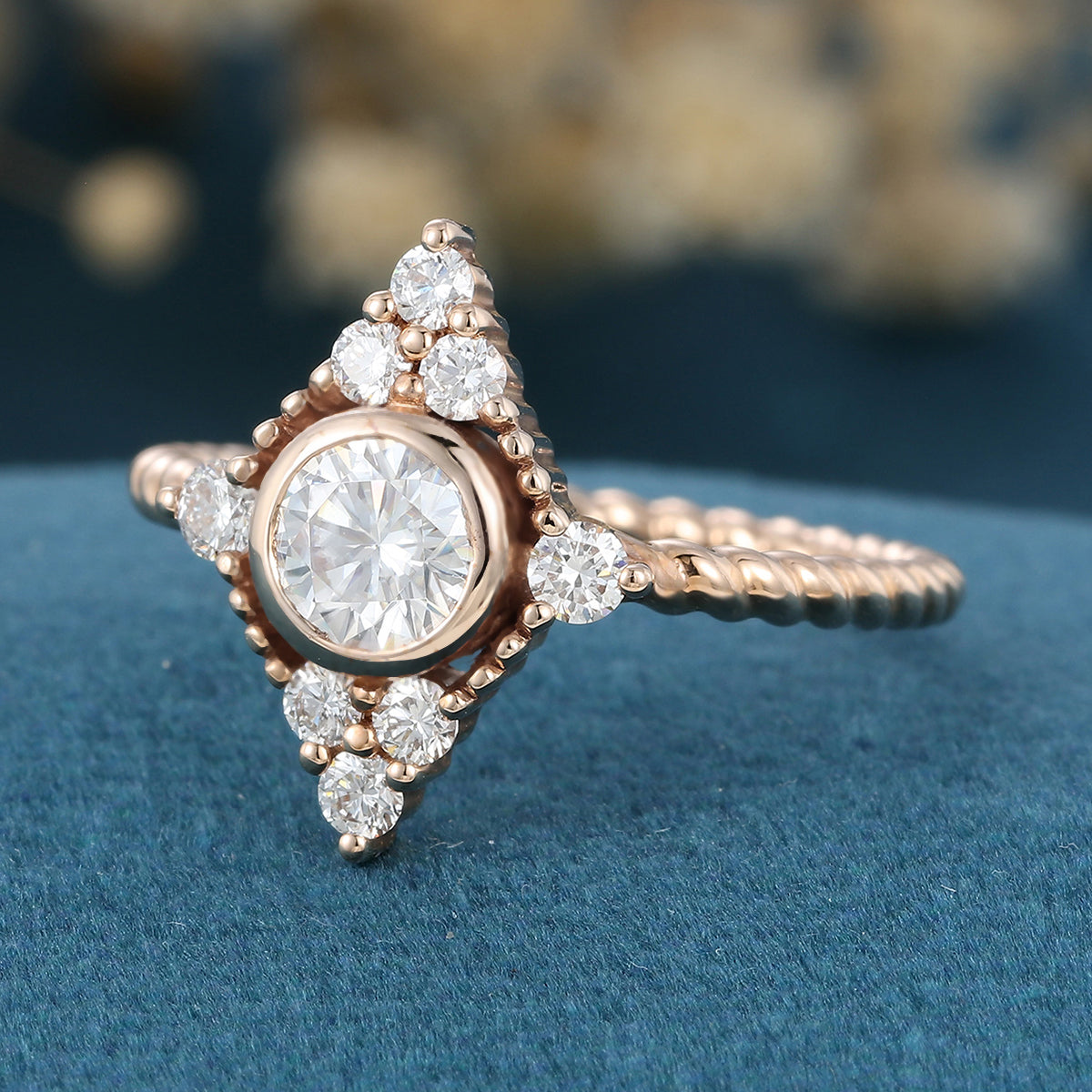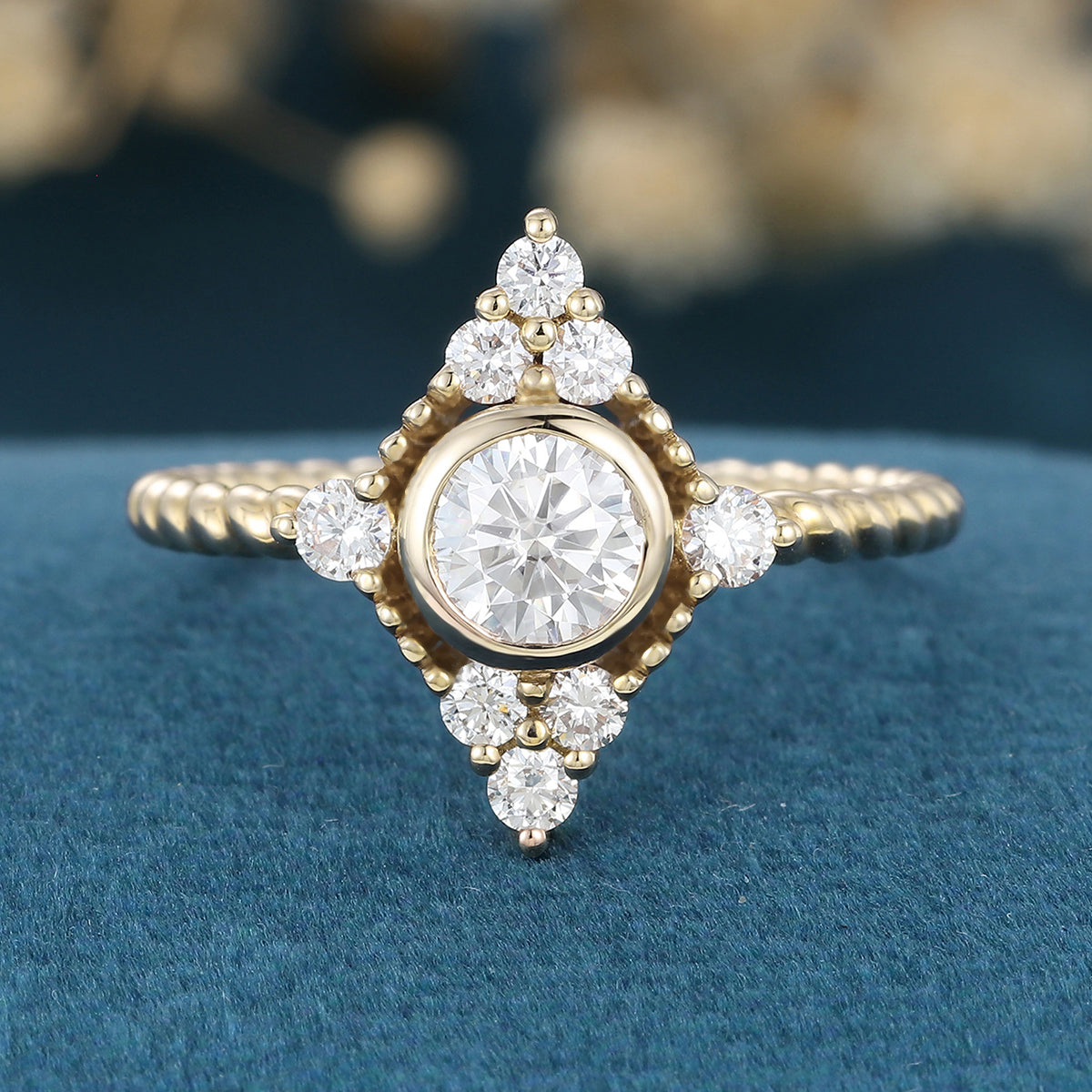 Bezel SetSet Round cut Moissanite Halo Gold Engagement Ring