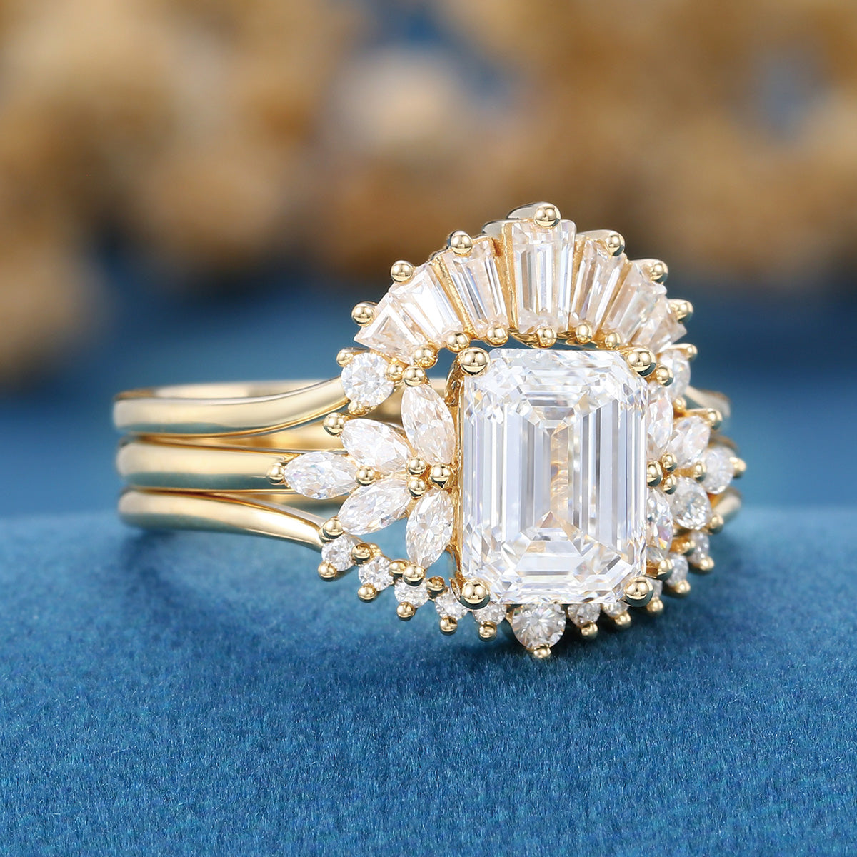 Emerald cut Lab-Grown Diamond Wedding Bridal Set