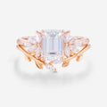 2PCS Emerald Cut Moissanite Cluster Engagement ring Bridal Set