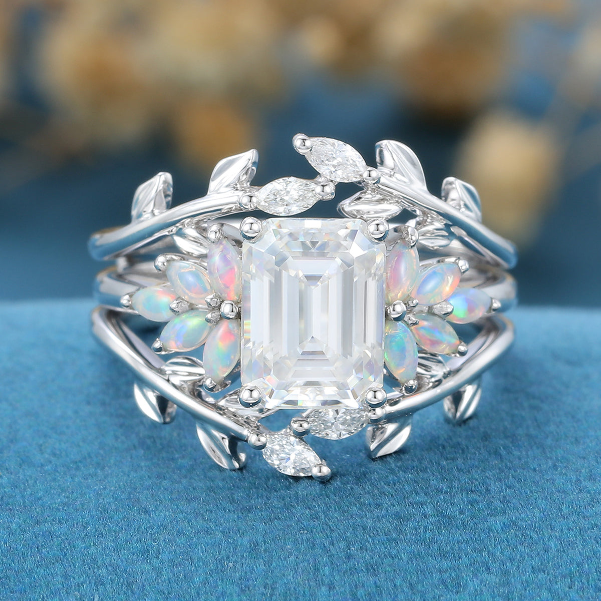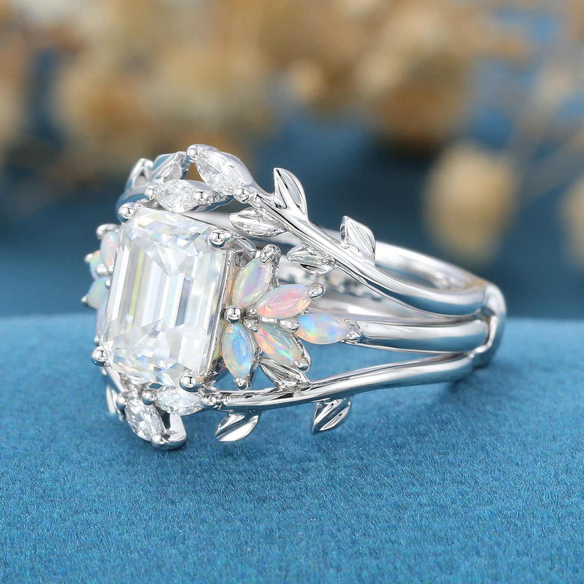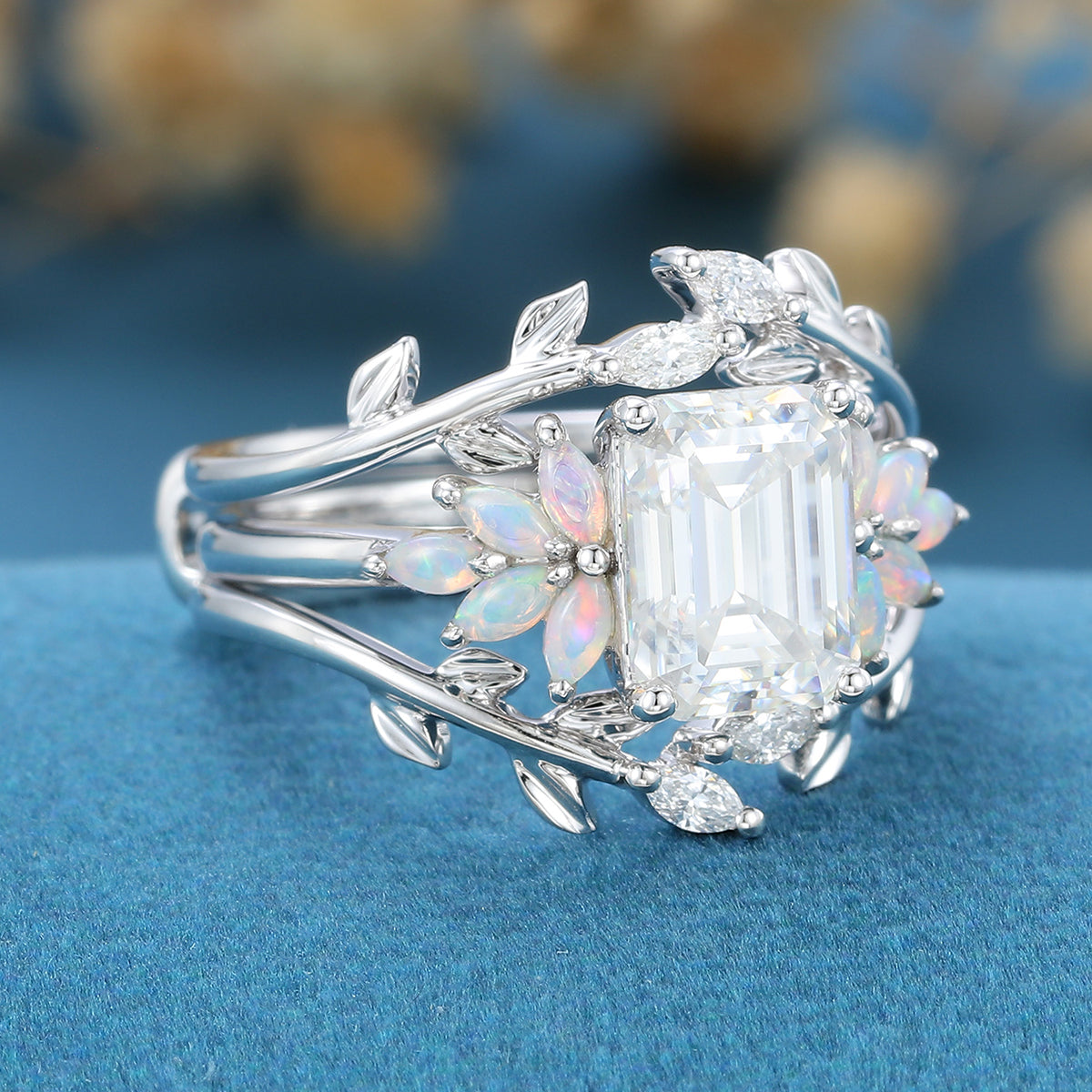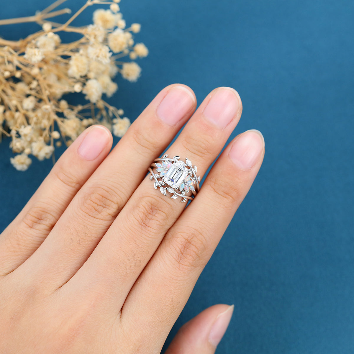 Emerald cut Moissanite Matching Moissanite | Diamonds Gold Bridal Set