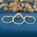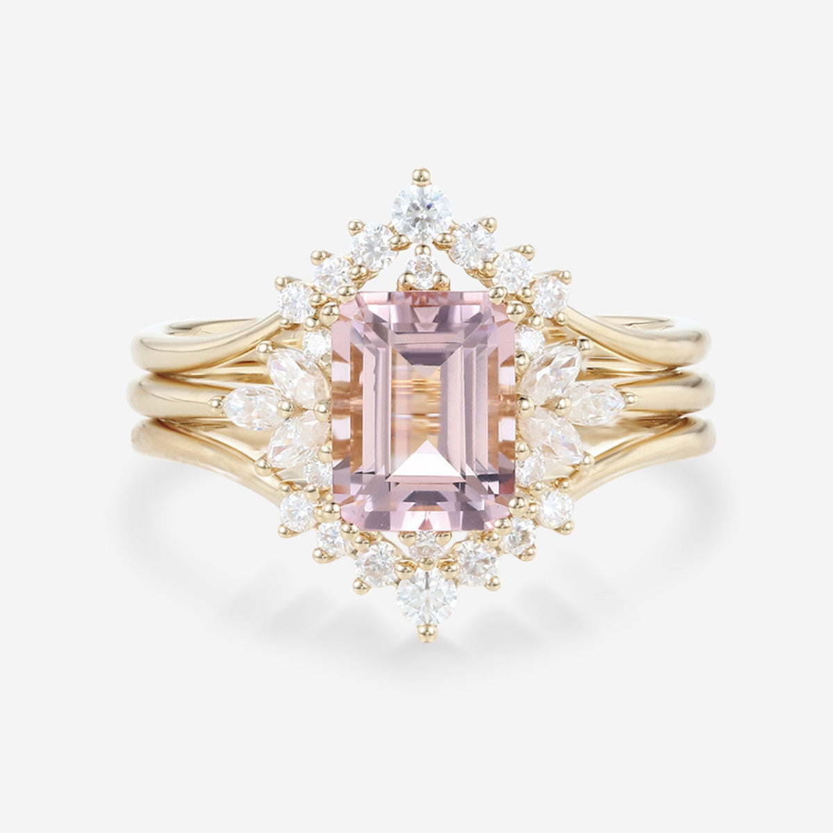 Emerald cut Morganite Cluster Wedding Bridal Set