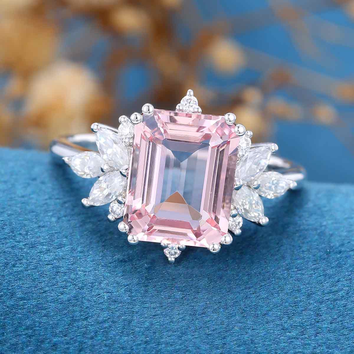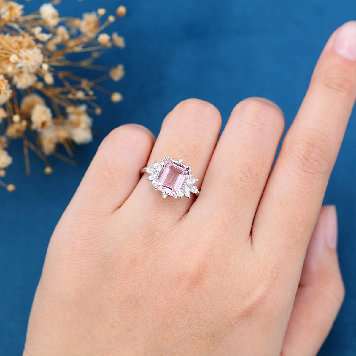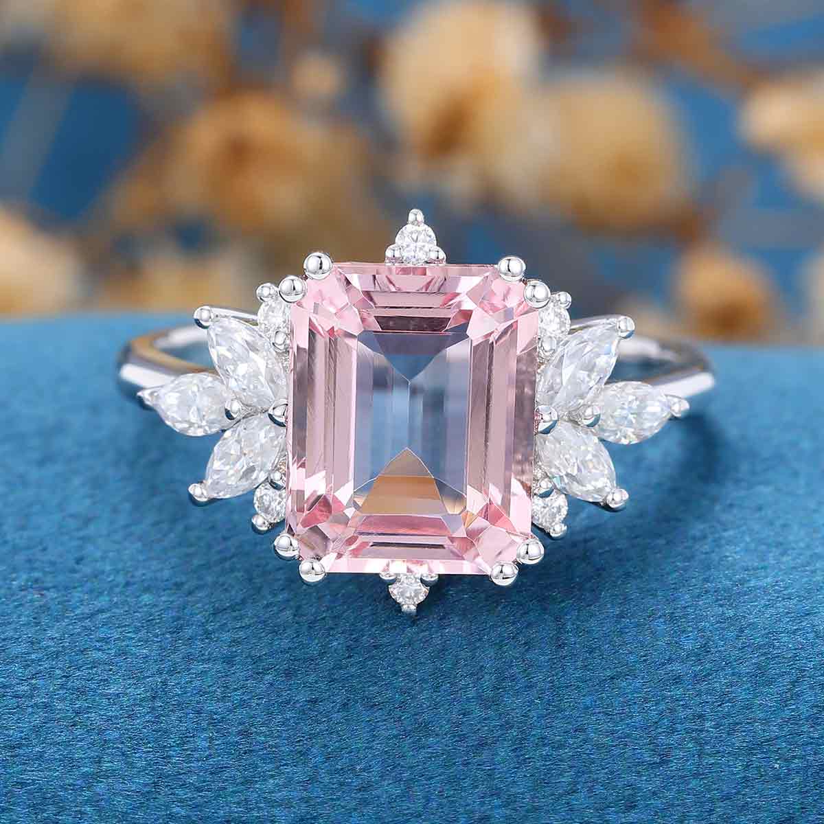 Type: Morganite 3.2 Carat Size: 6 x 8 mm Shape: Emerald cut Total weight: 4.3 g(Depending on the ring size) |