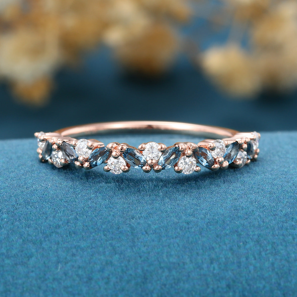 Marquise London Blue Topaz Matching Moissanite | Diamond Half Eternity Wedding Band