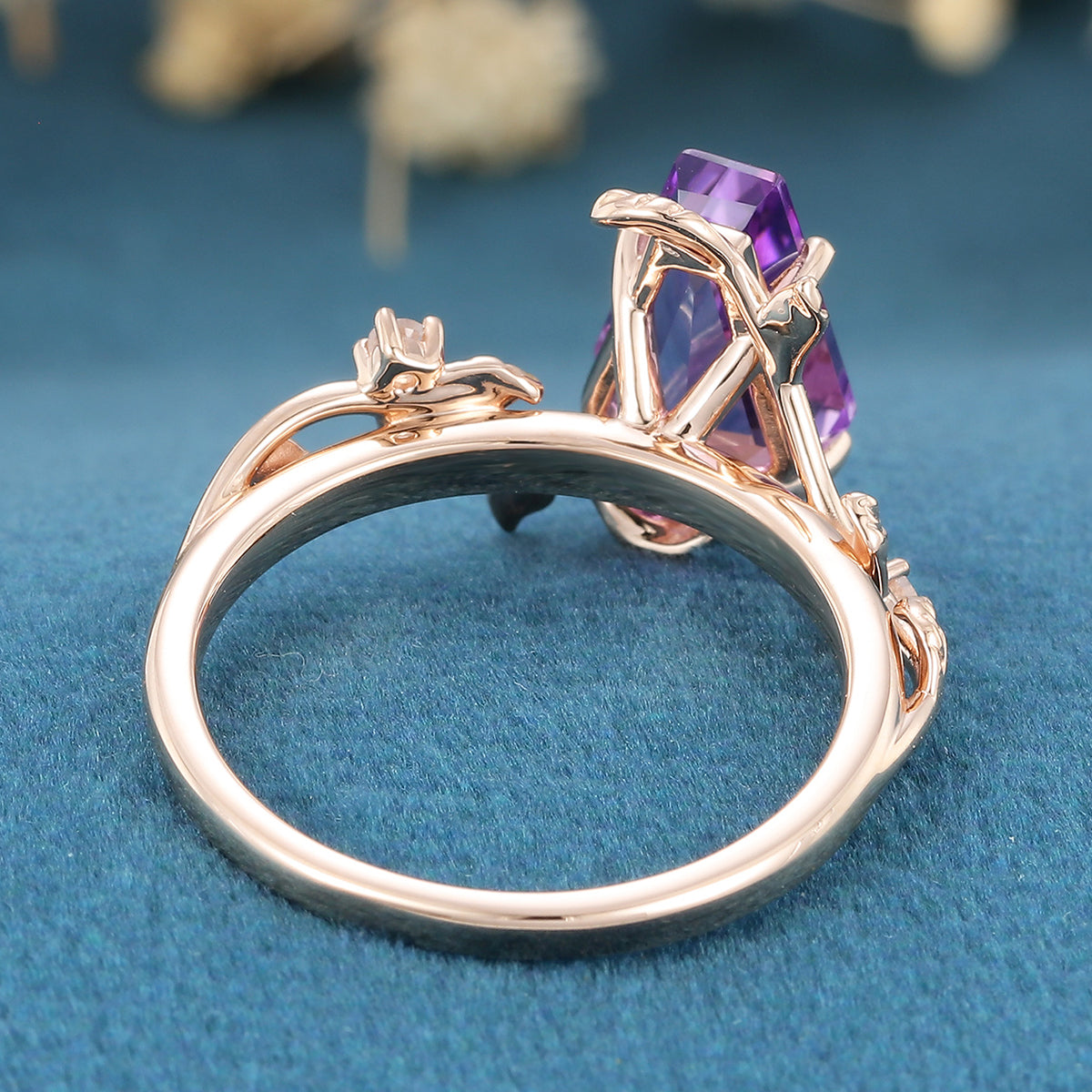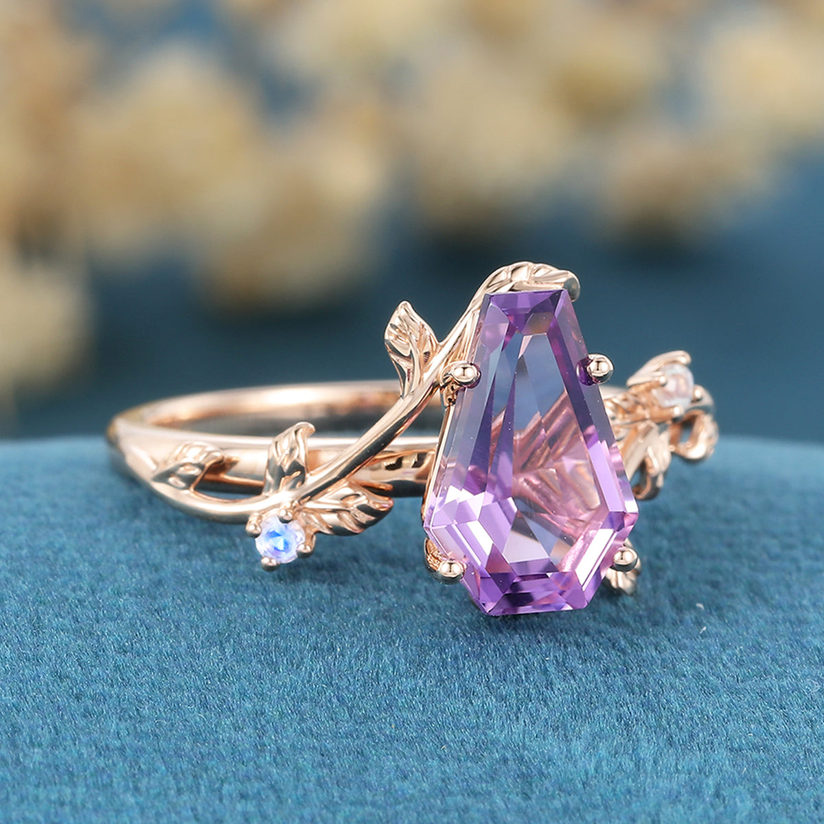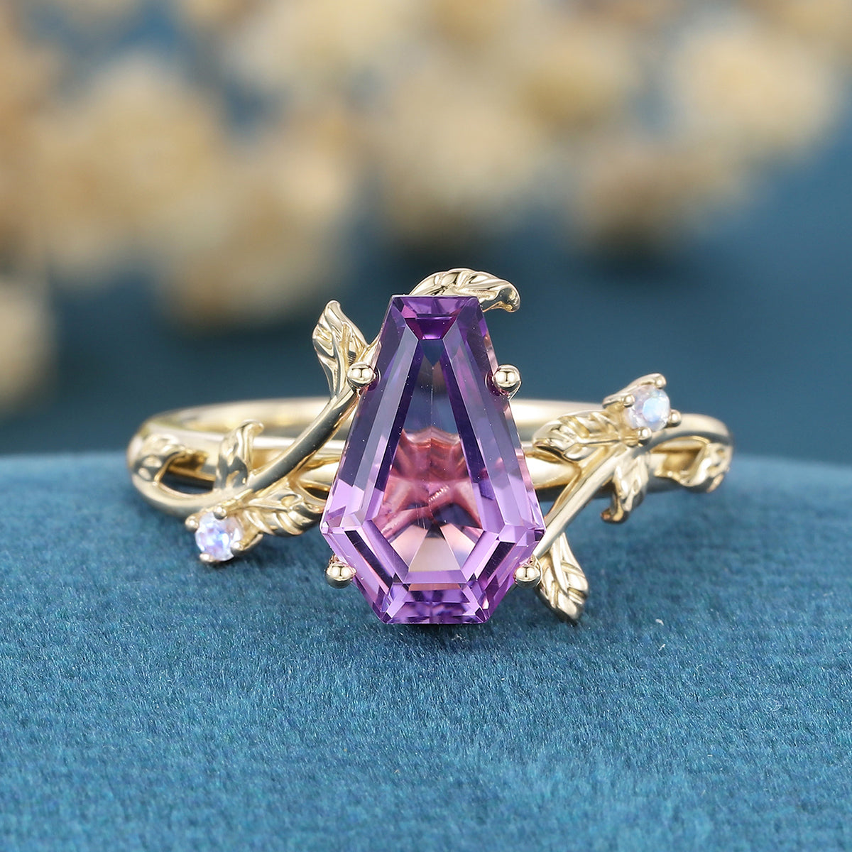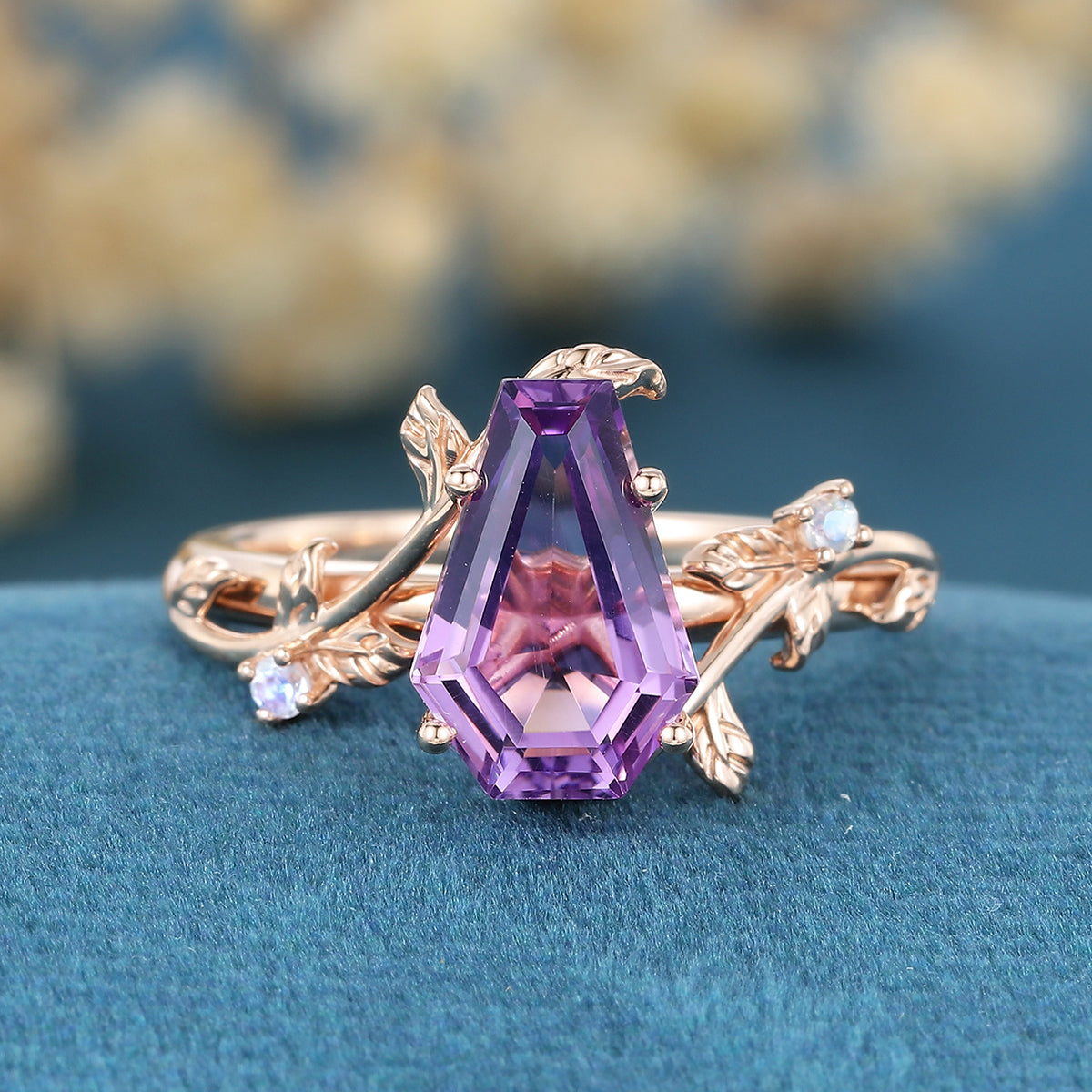 Inspired Coffin Cut Amethyst Engagement Ring