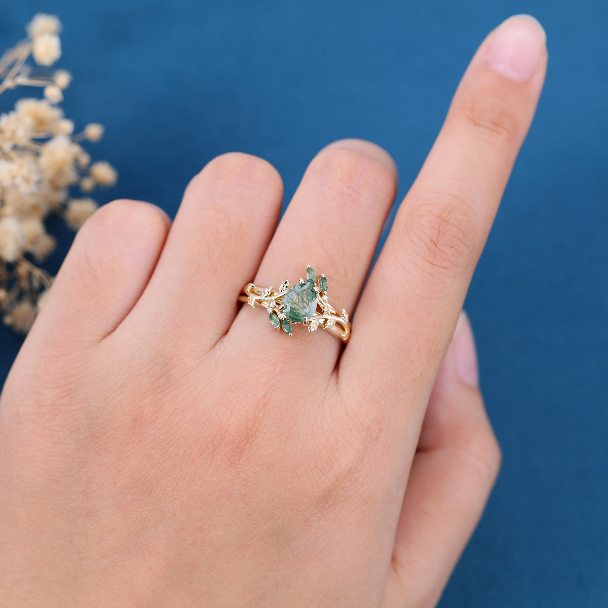 Type: Moissanite 0.04 Carat + Moss Agate 0.09 Carat Or Natural Diamonds 0.04 Carat + Moss Agate 0.09 Carat Clarity: SI-V VS Color: G-H Or Lab-grown Diamonds 0.04 Carat + Moss Agate 0.09 Carat Shape: Marquise cut | Round cut |