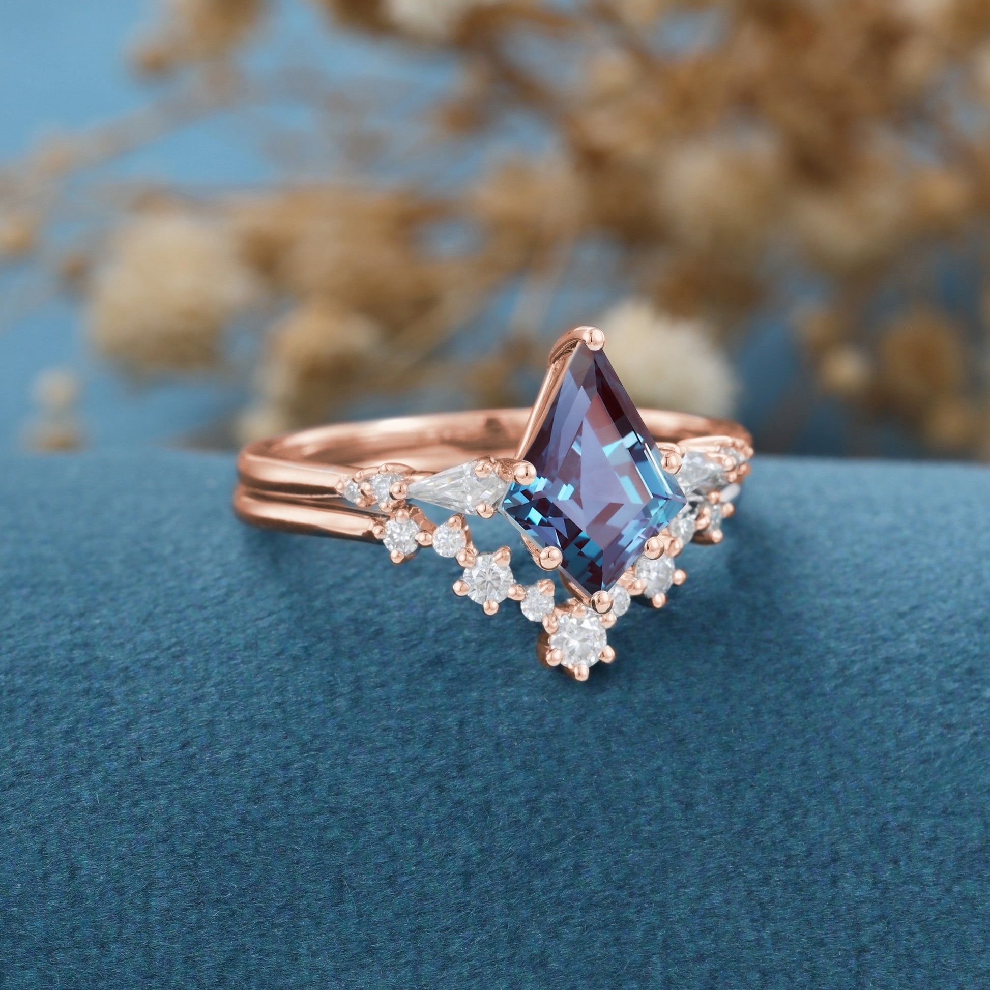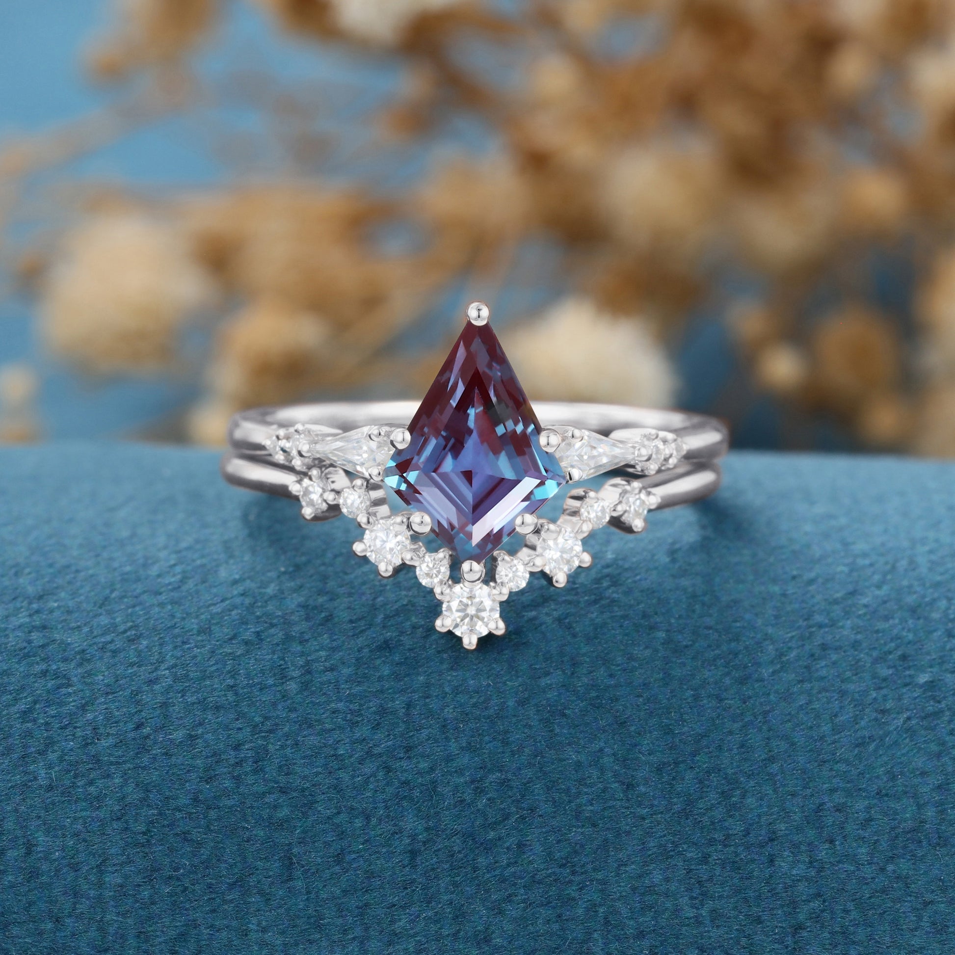 Type: Lab Alexandrite 1.35 Carat Size: 7 x 10 mm Shape: Kite cut Total weight: 2.4g(Depending on the ring size) |