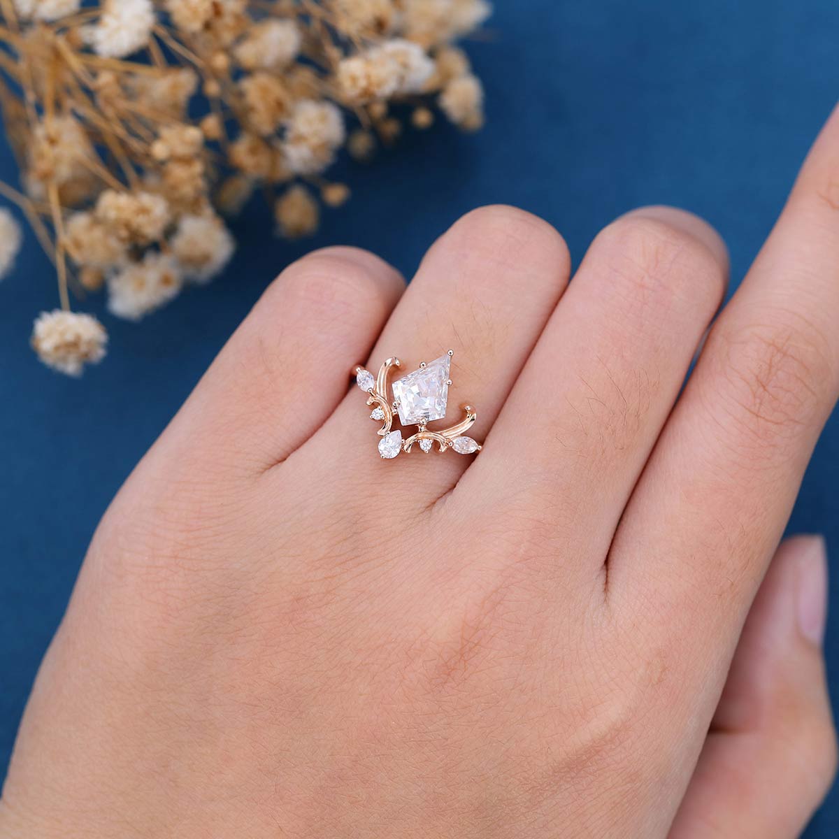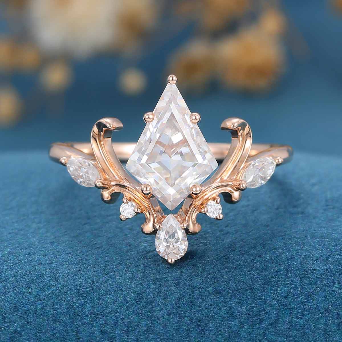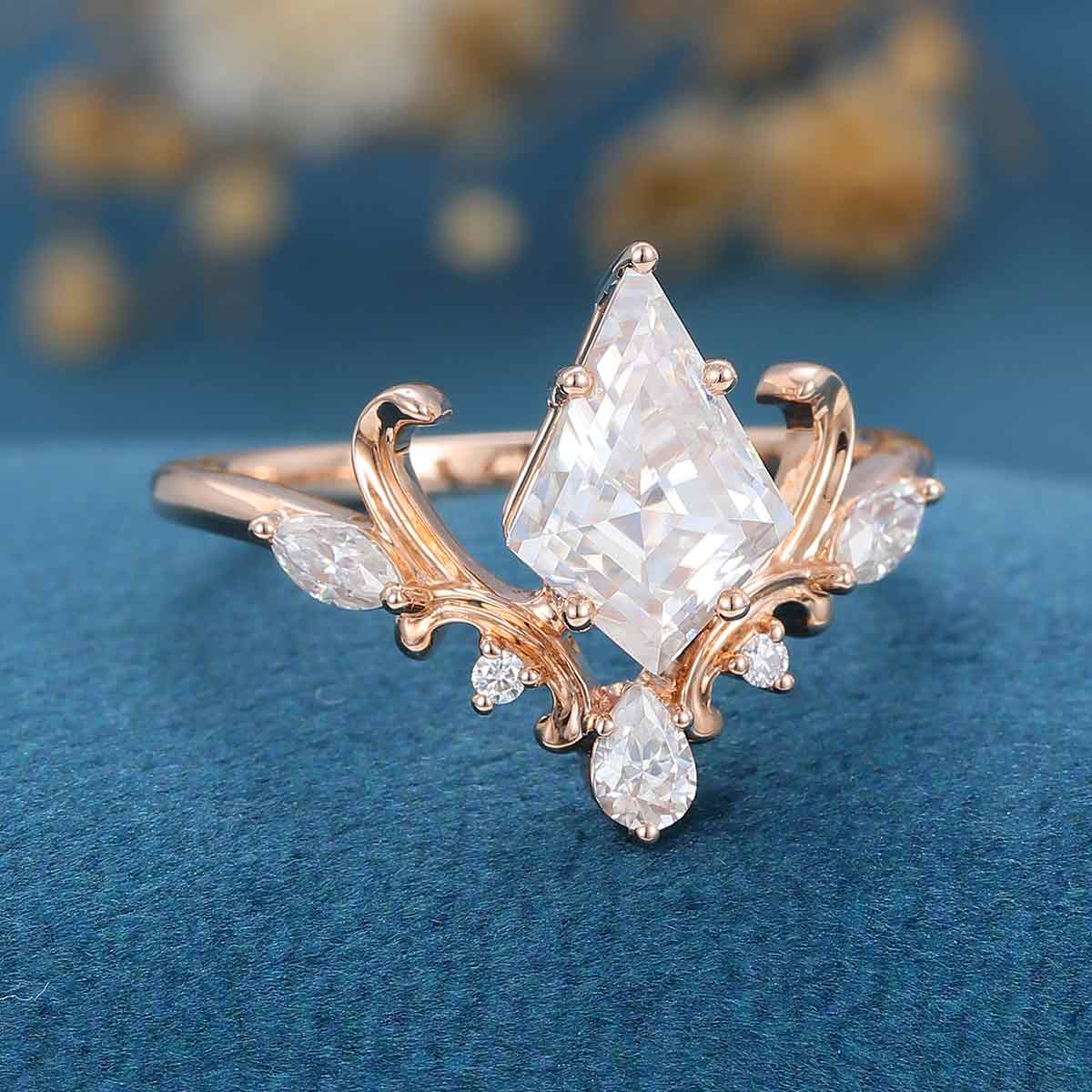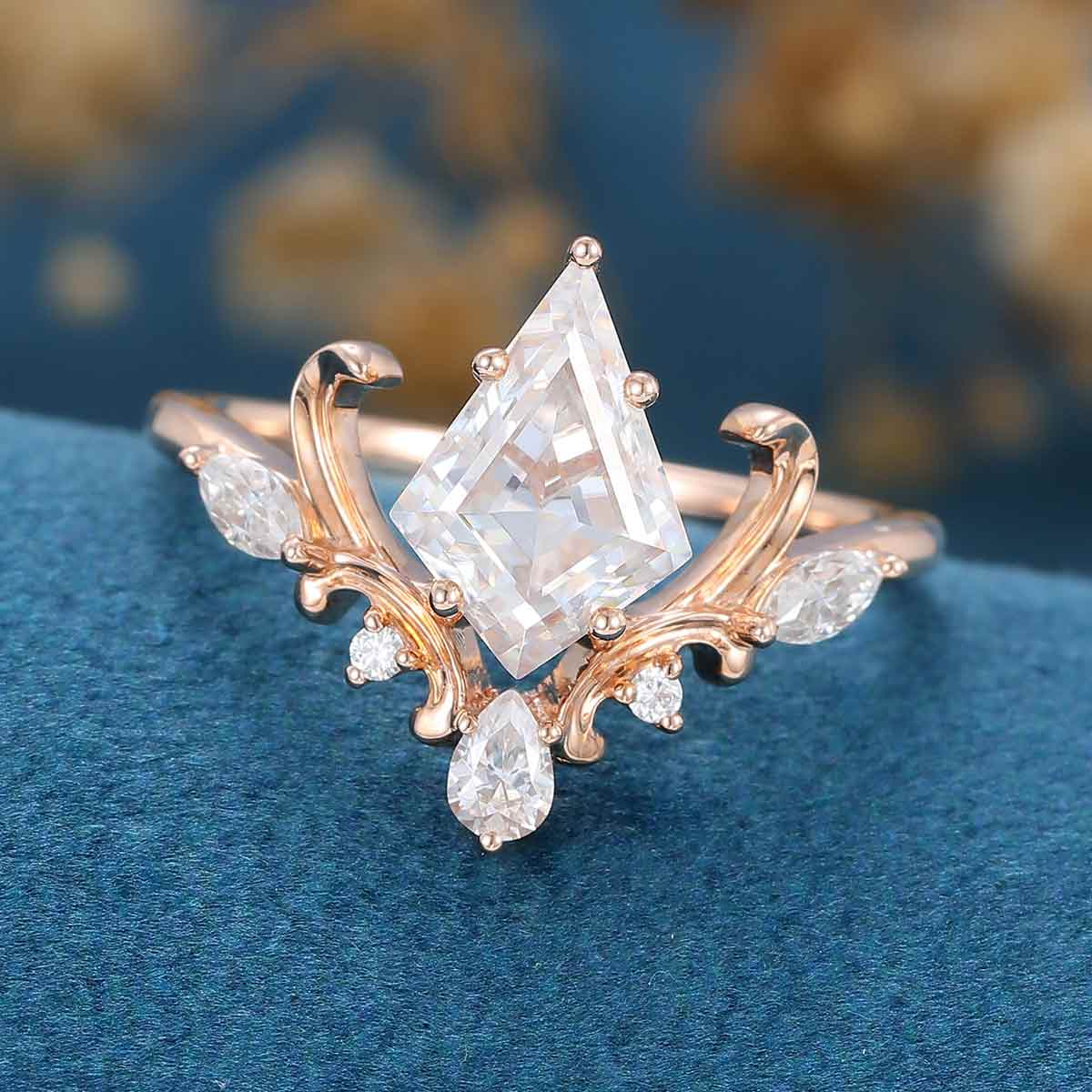 Kite Cut Moissanite Rose Gold Engagement Ring