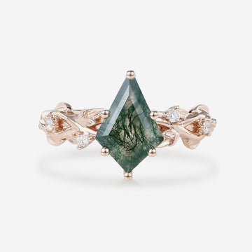 1.1Carat Kite Cut Moss Agate Cluster Engagement Ring