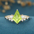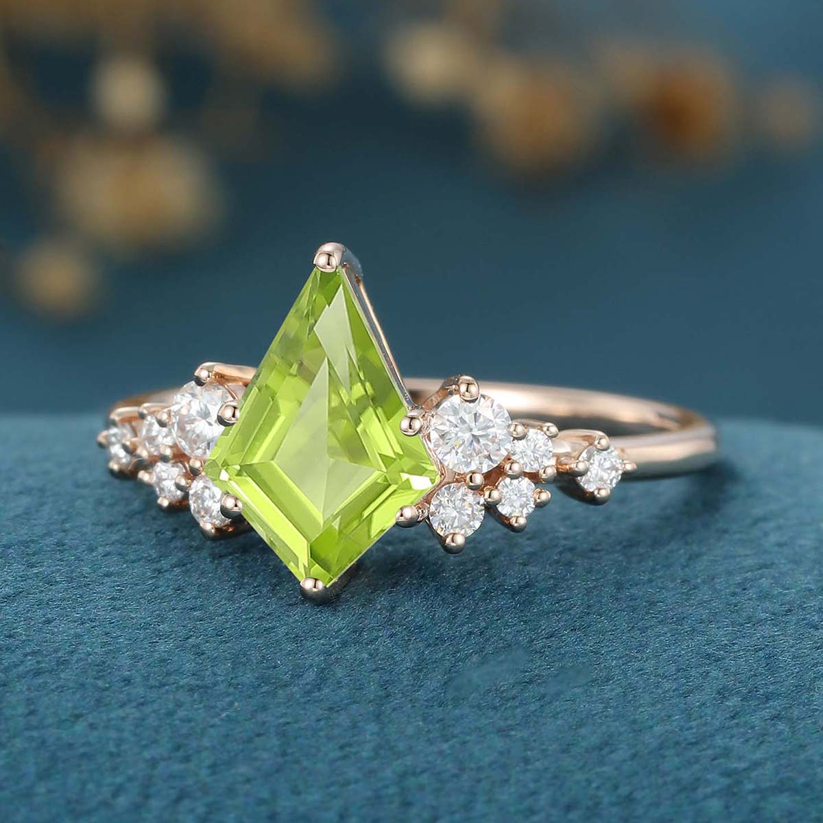 Type: Olivine 1.5 Carat Size: 7 x 10 mm Shape: Kite cut Total weight: 2.5g (Depending on the ring size) |