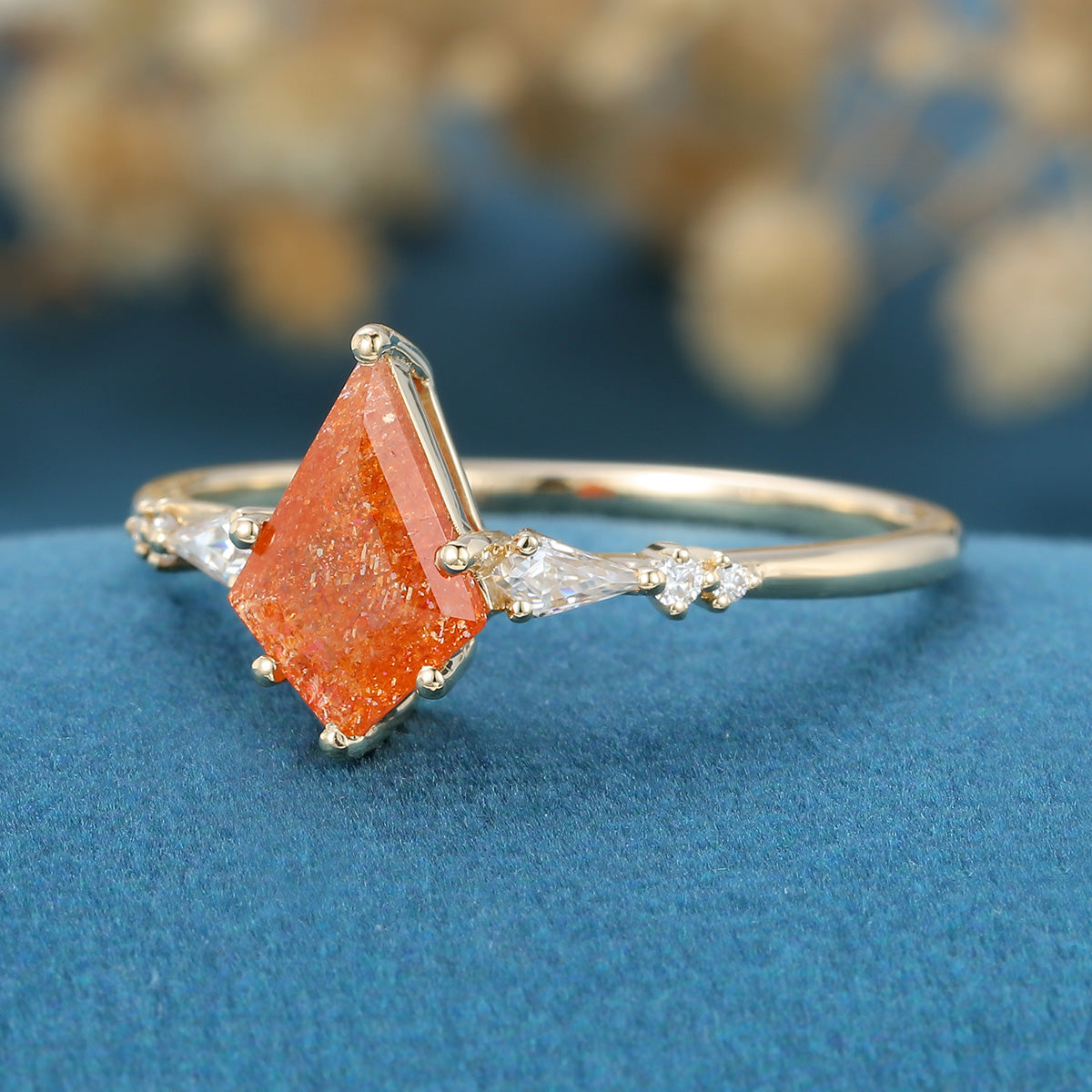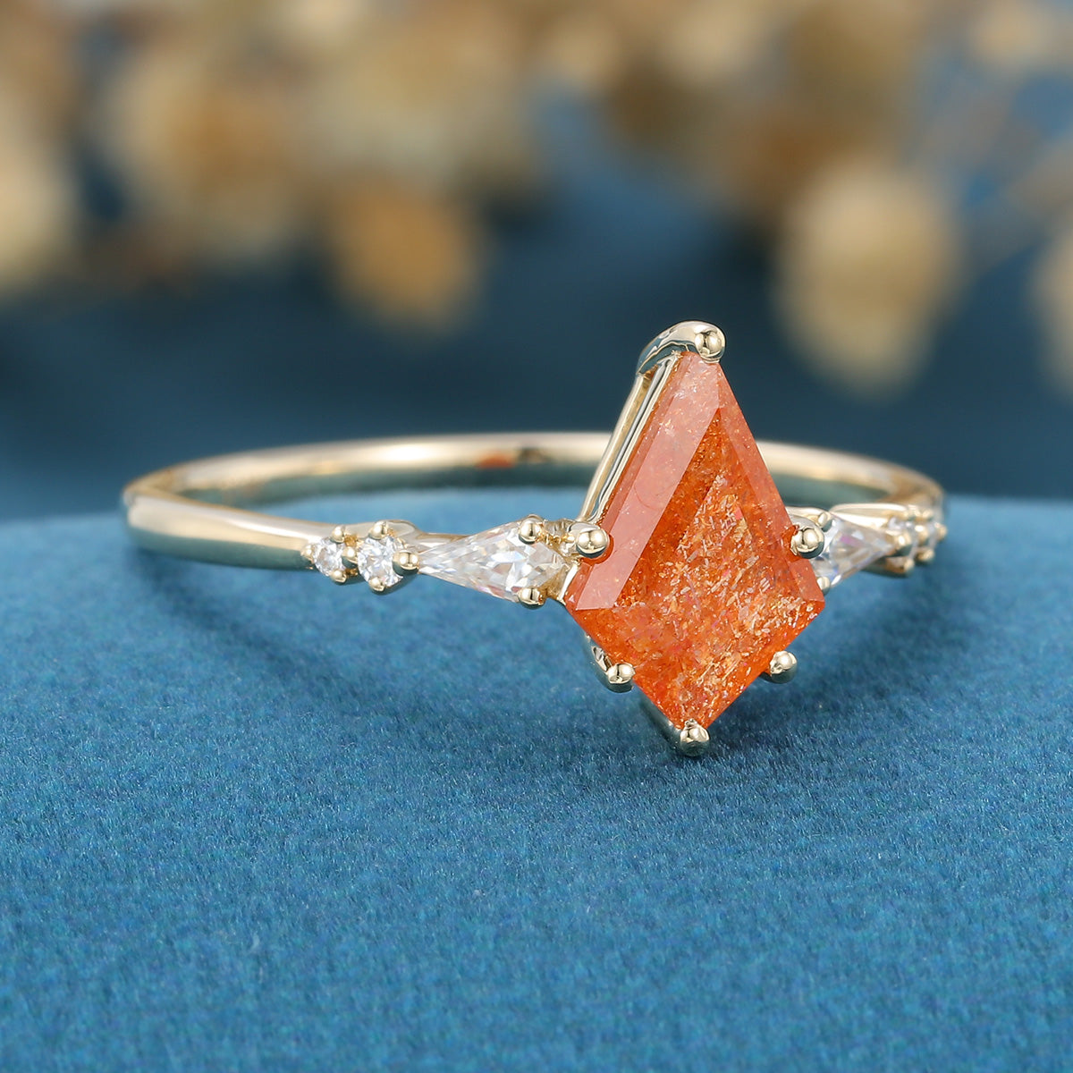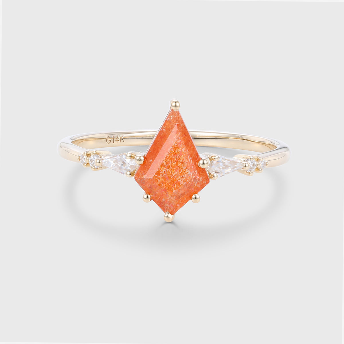 Type: Sun Stone 1.35 Carat Size: 7 x 10 mm Shape: Kite cut Total weight: 2.4g (Depending on the ring size) |