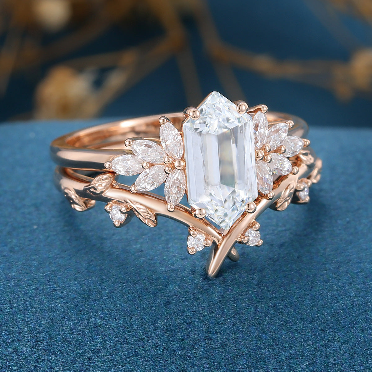 Long Hexagon cut Lab-Grown Diamond Wedding Bridal Set