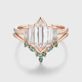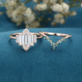 Long Hexagon cut Moissanite Bezel Engagement Ring Matching Curved Moss Agate band set