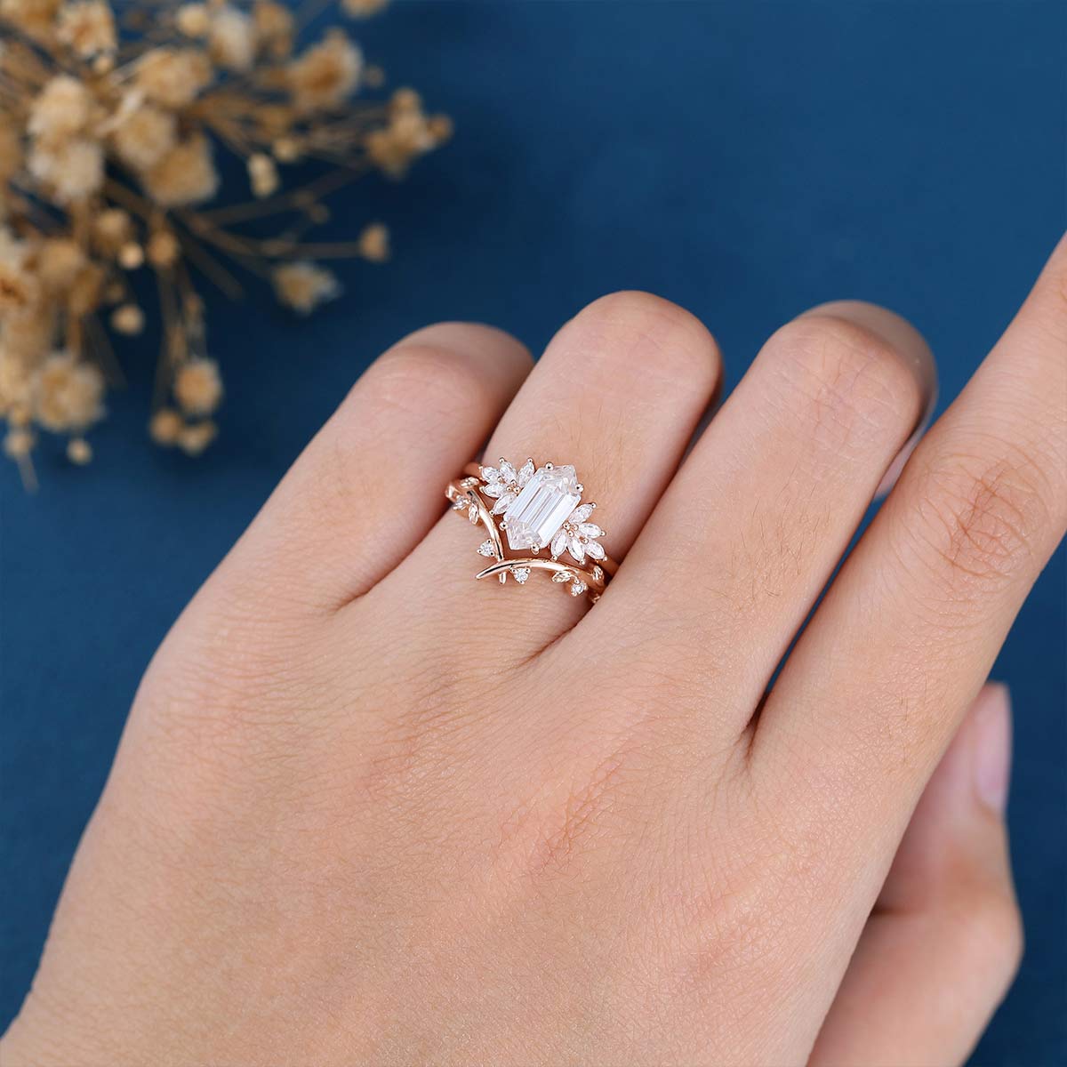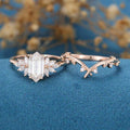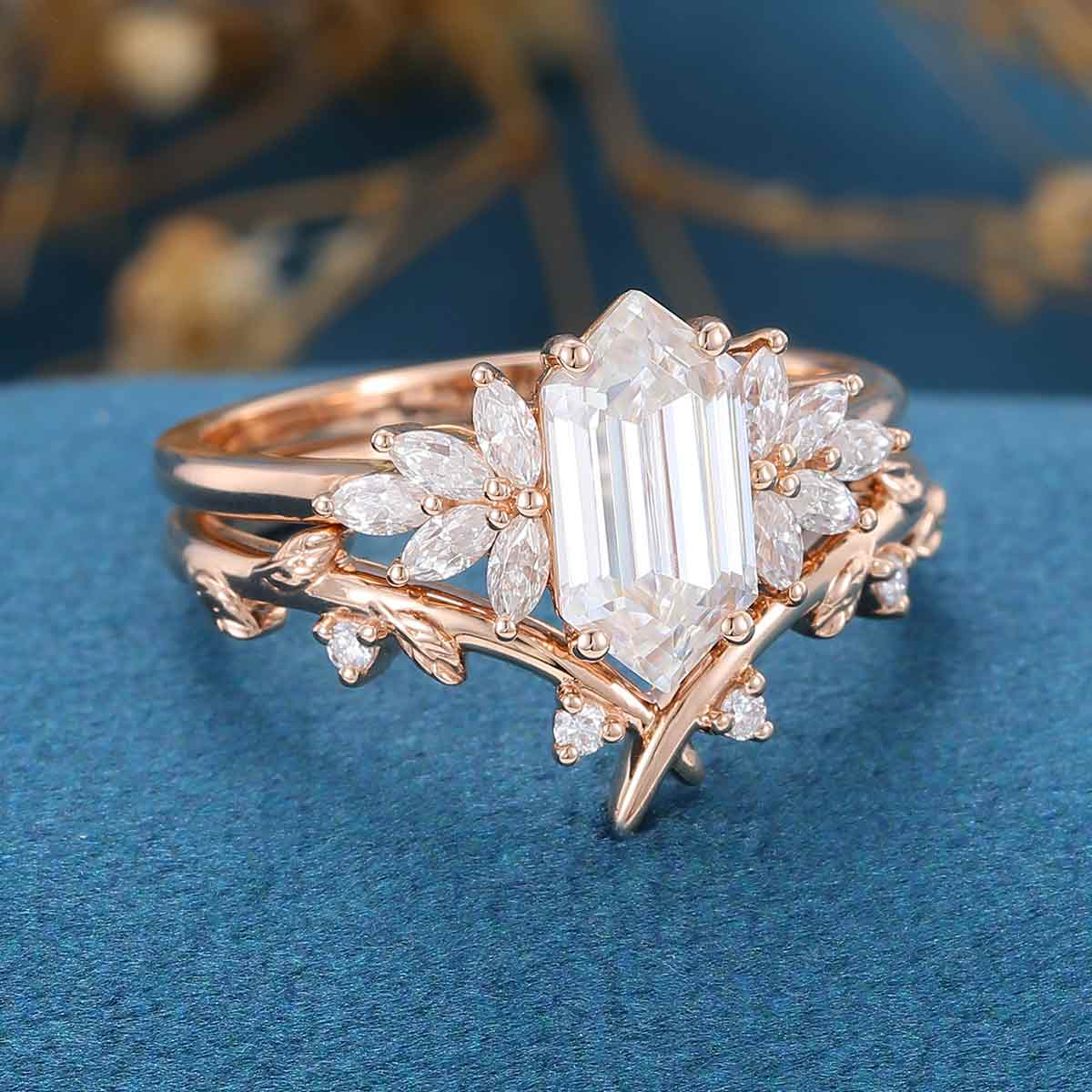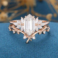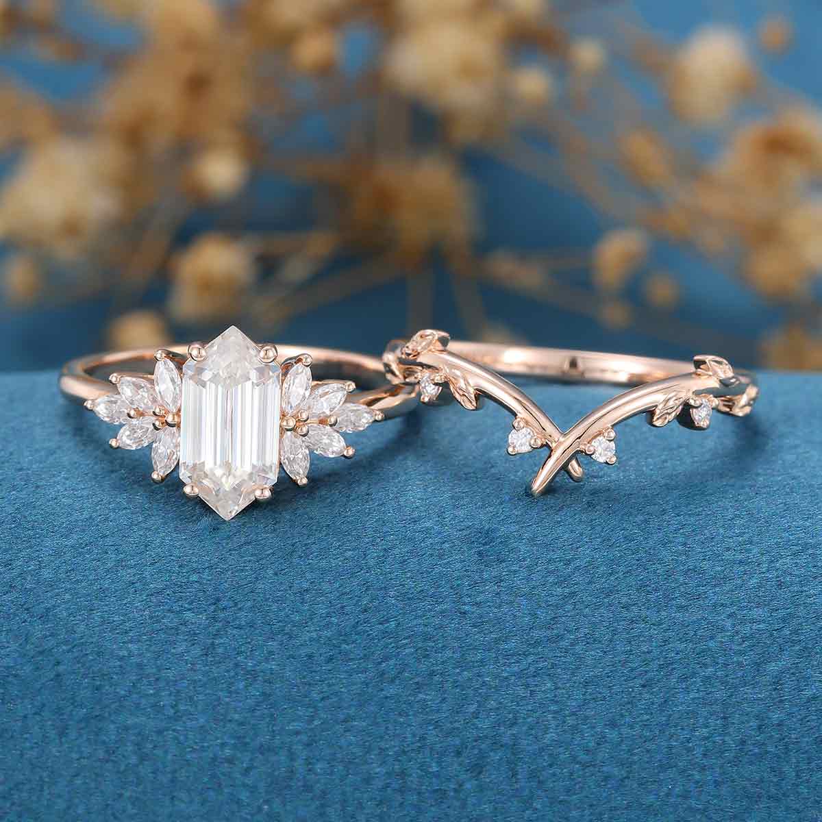 Long Hexagon cut Moissanite Engagement ring Bridal Set