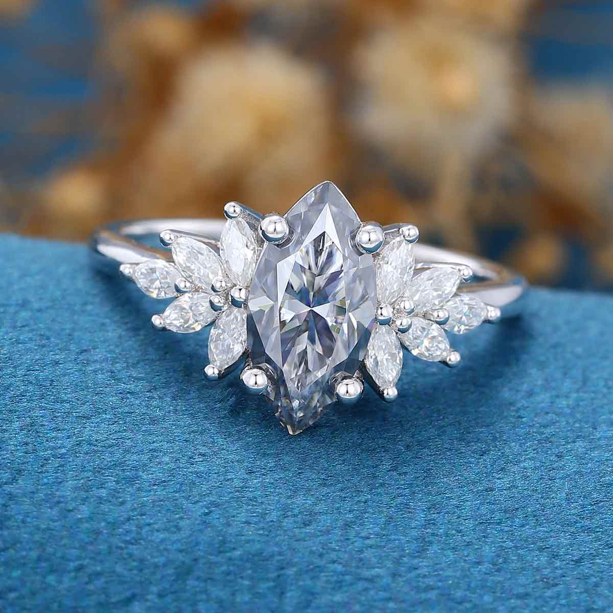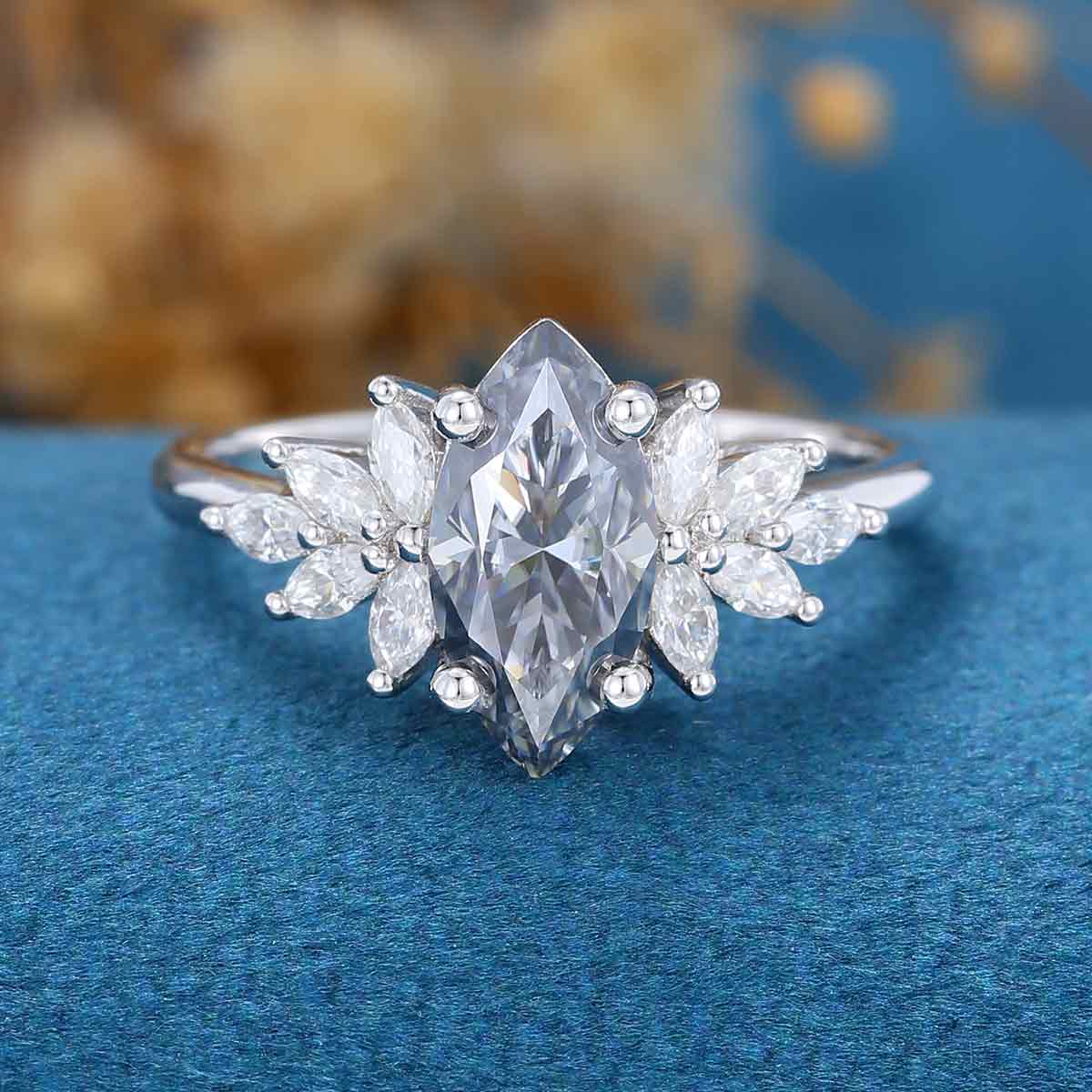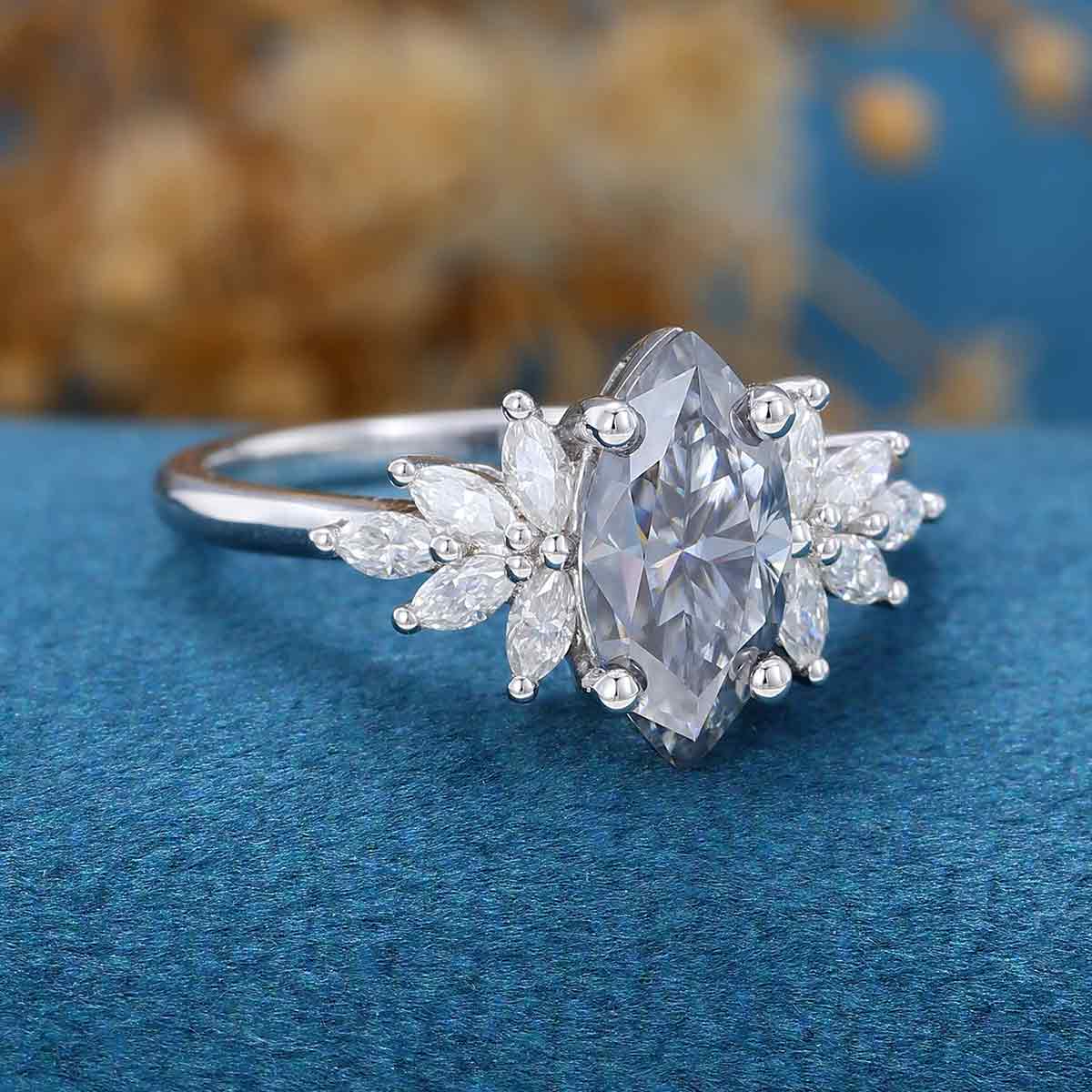 Marquise cut Gray Moissanite Cluster Engagement ring