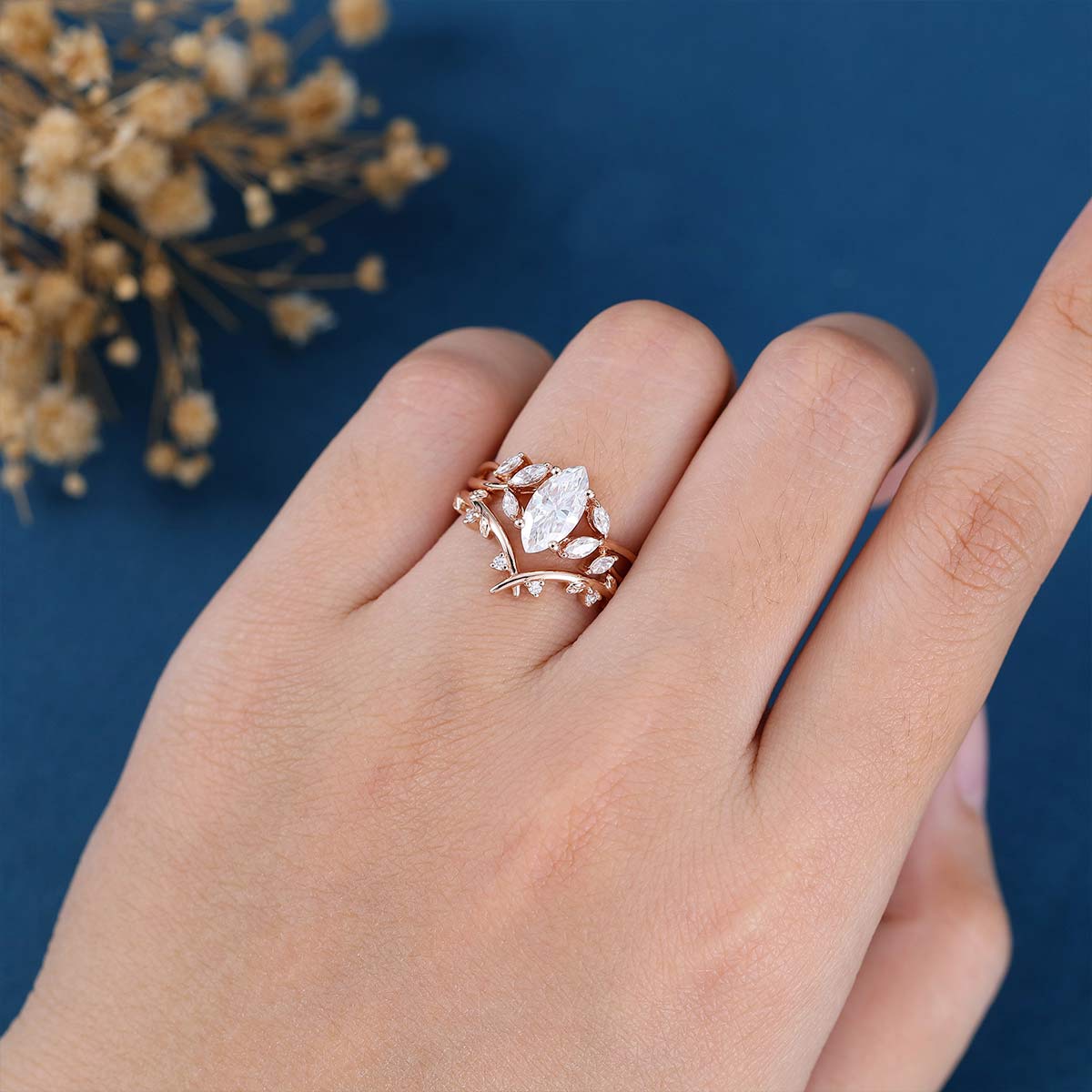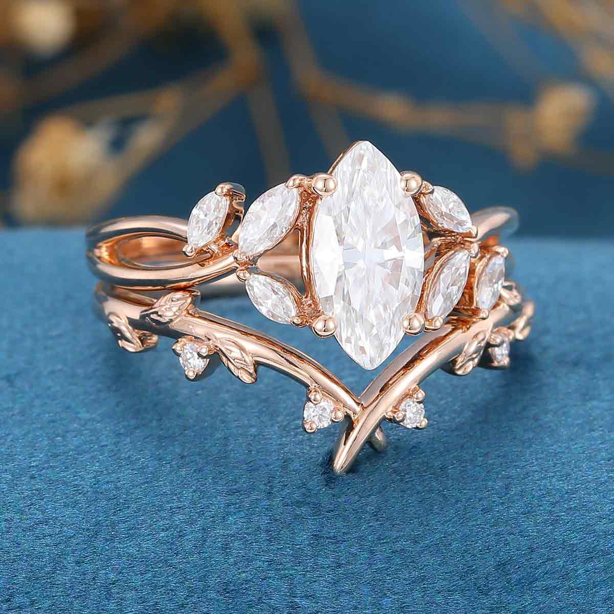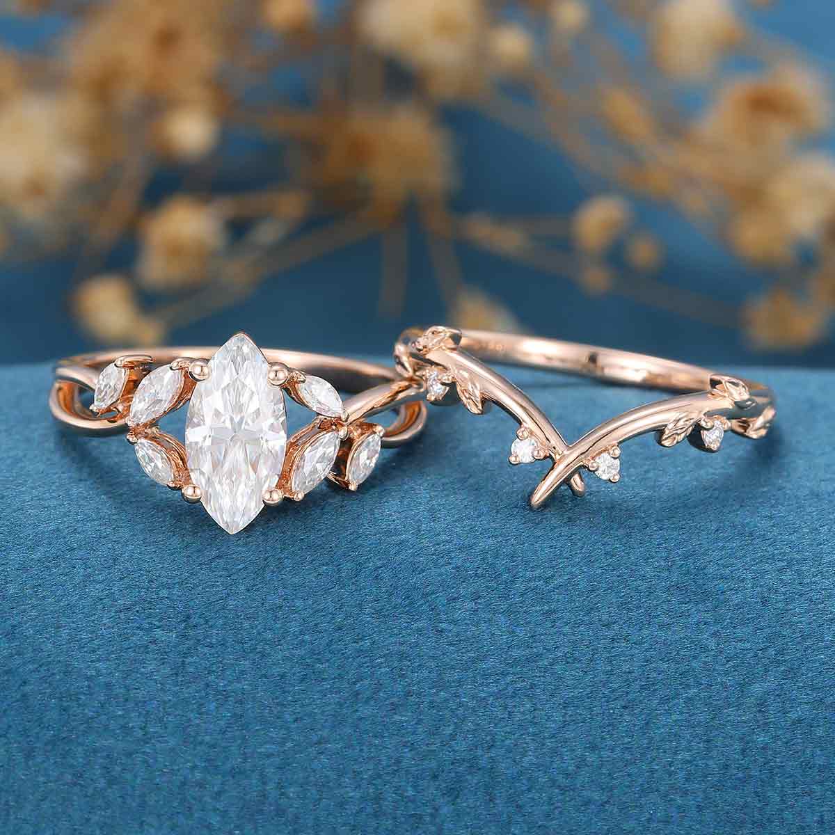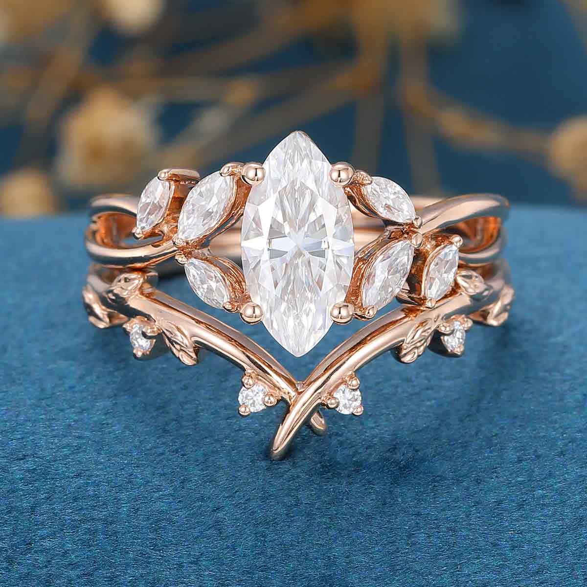 Marquise cut Moissanite Cluster Engagement Bridal Set