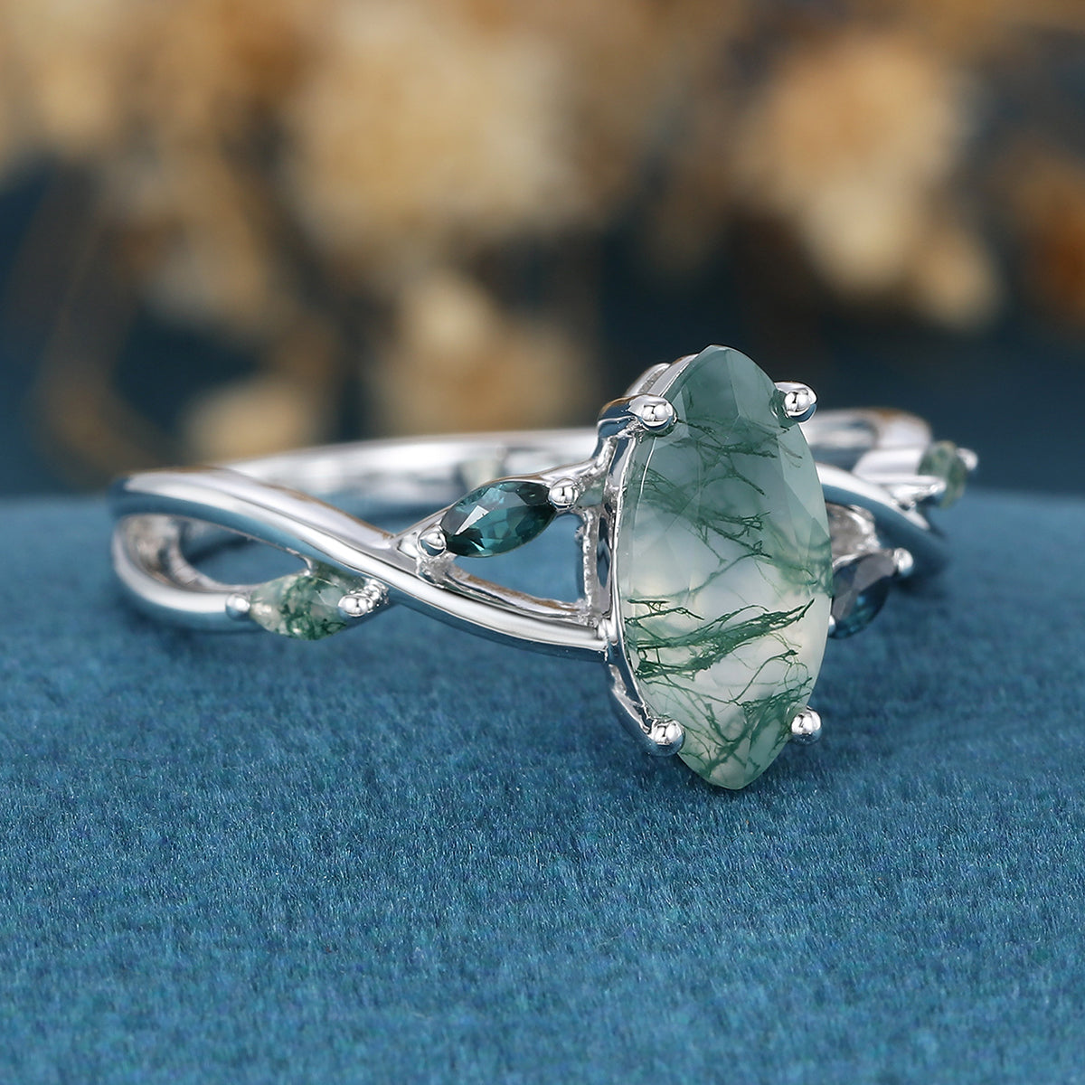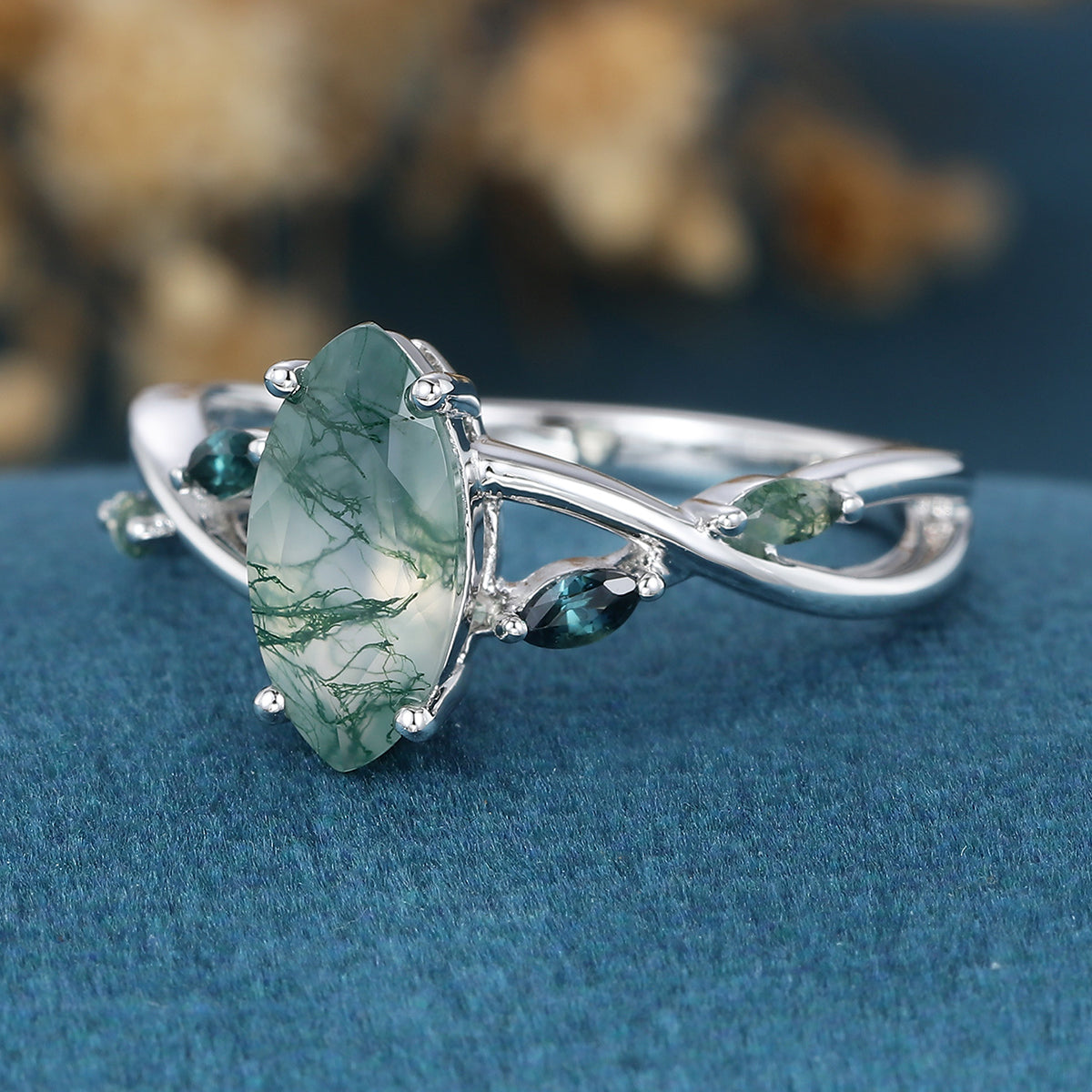Type: Moss Agate 1.0 Carat Size: 5 x 10 mm Shape: Marquise cut Total weight: 2.7g (Depending on the ring size) |