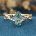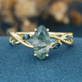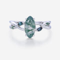 Marquise cut Moss Agate Matching Moss Agate | Blue-green sapphire Gold Engagement Ring