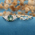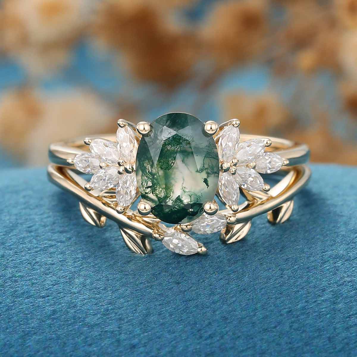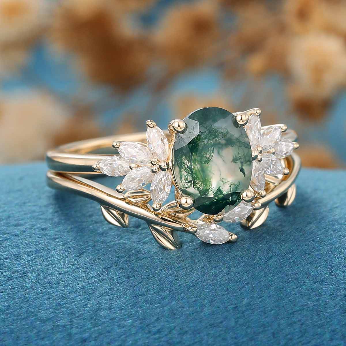 Natural Green Moss Agate Oval Cluster WeddingBridal Sets