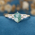 Natural Green Moss Agate Oval cut cluster Engagement Ring