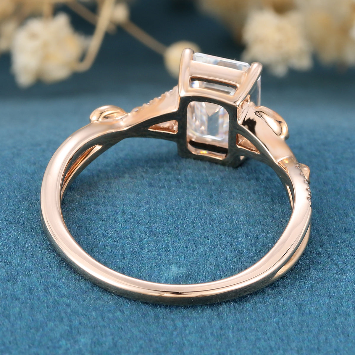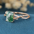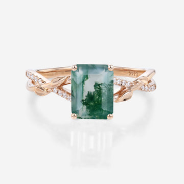 Nature Inspired Emerald cut Moss Agate Leaf Gold Engagement Ring