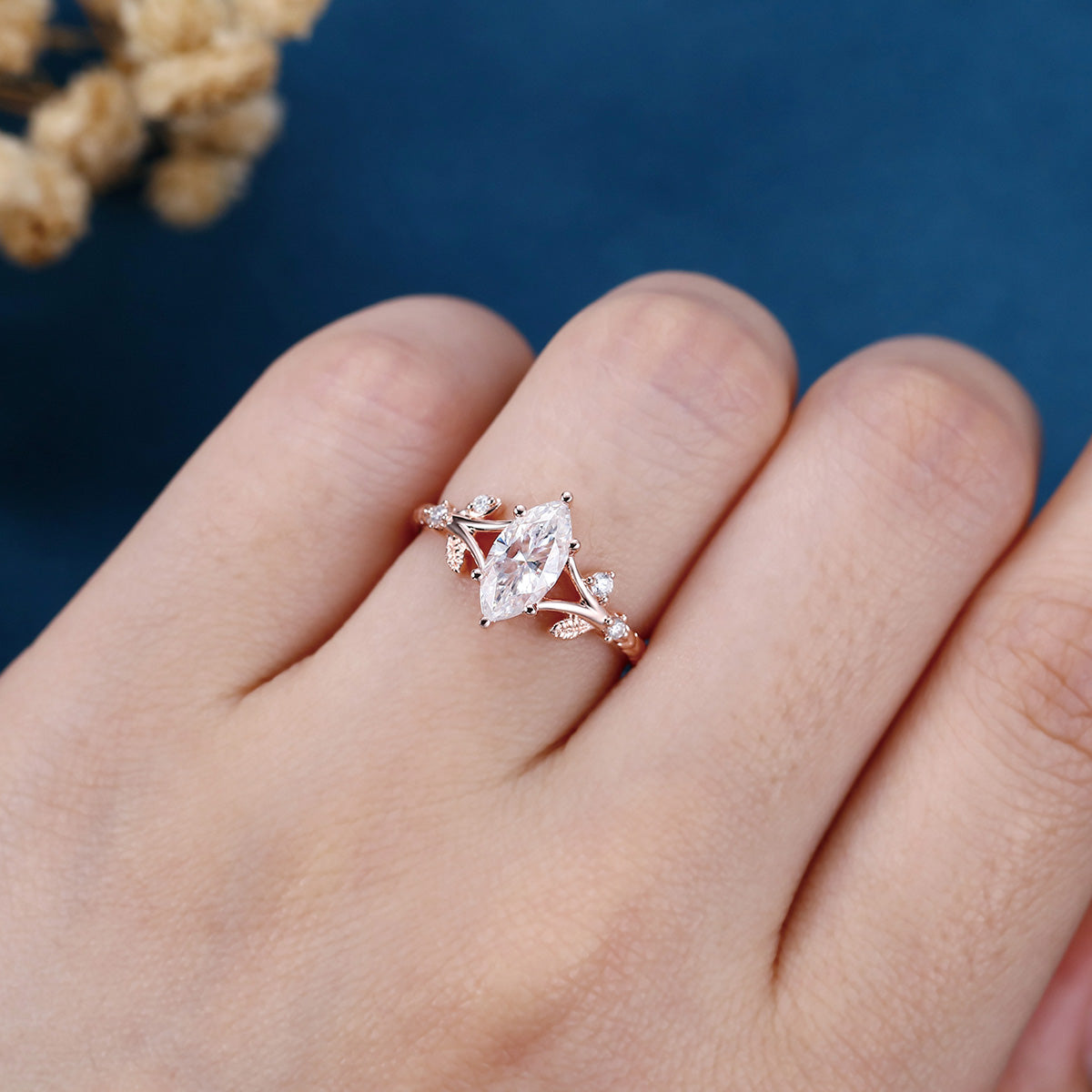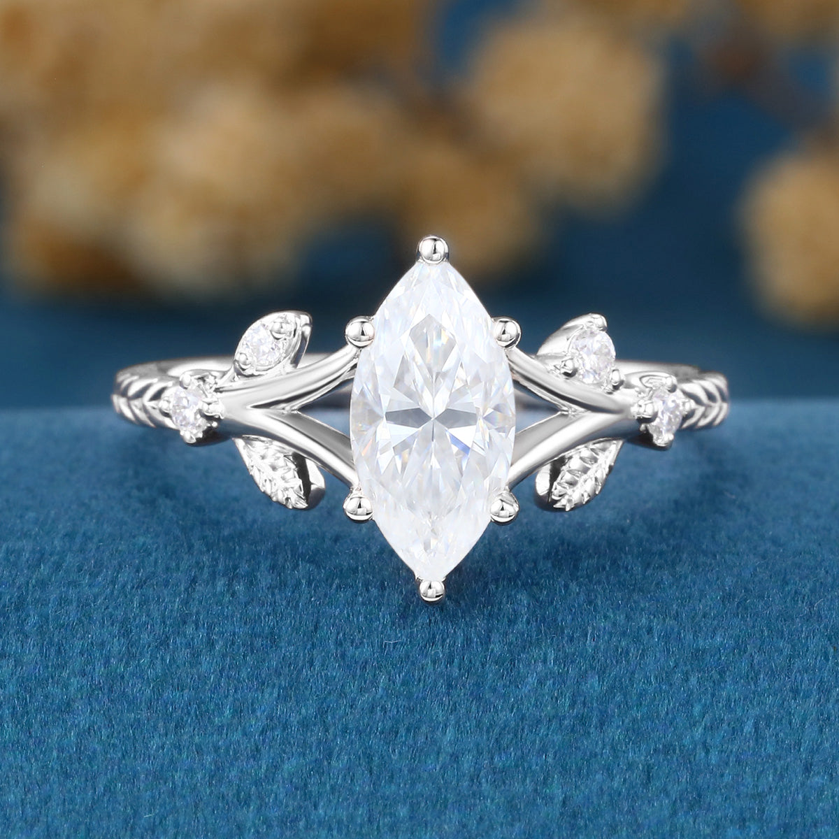 Nature Inspired Marquise cut Moissanite Engagement Ring