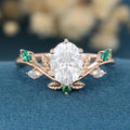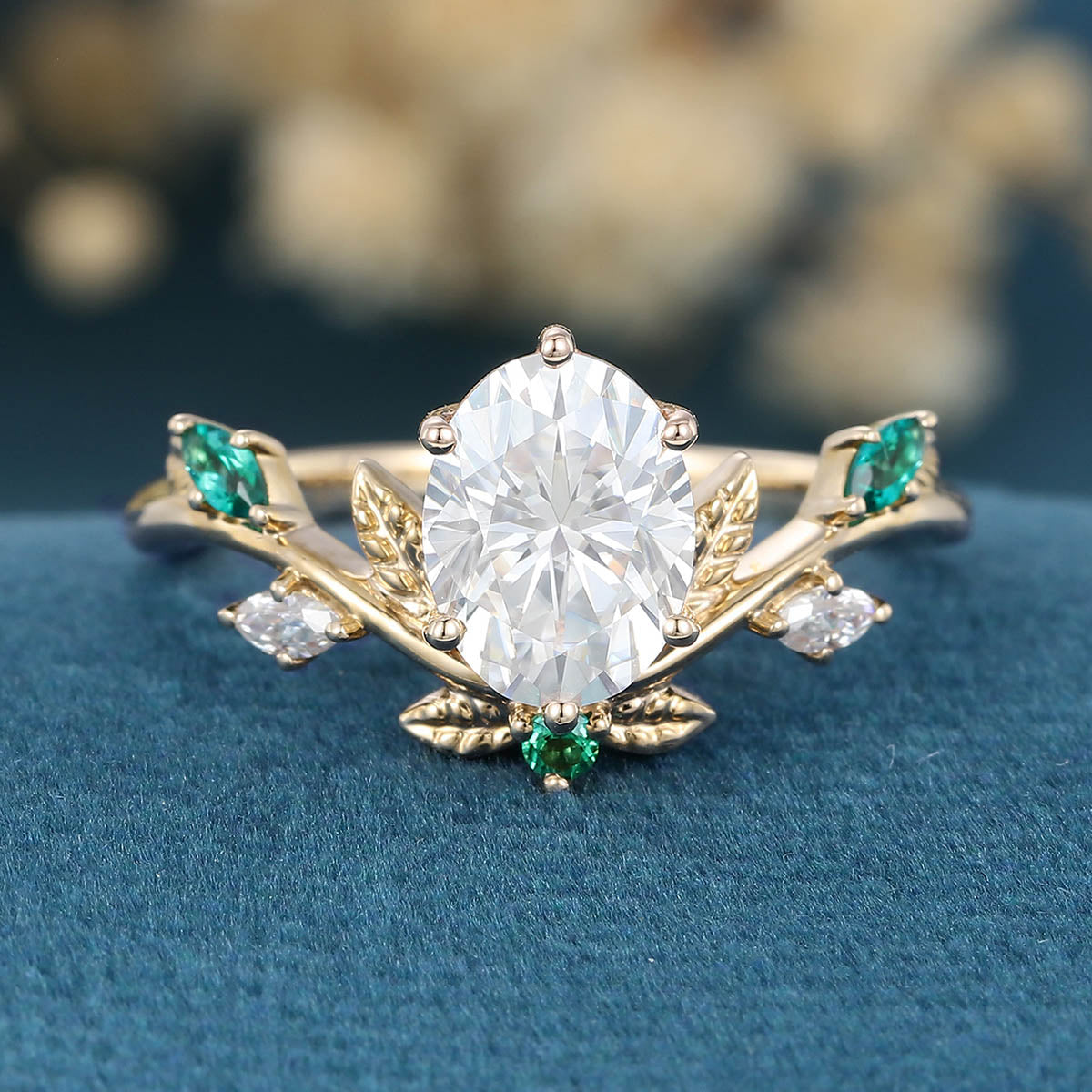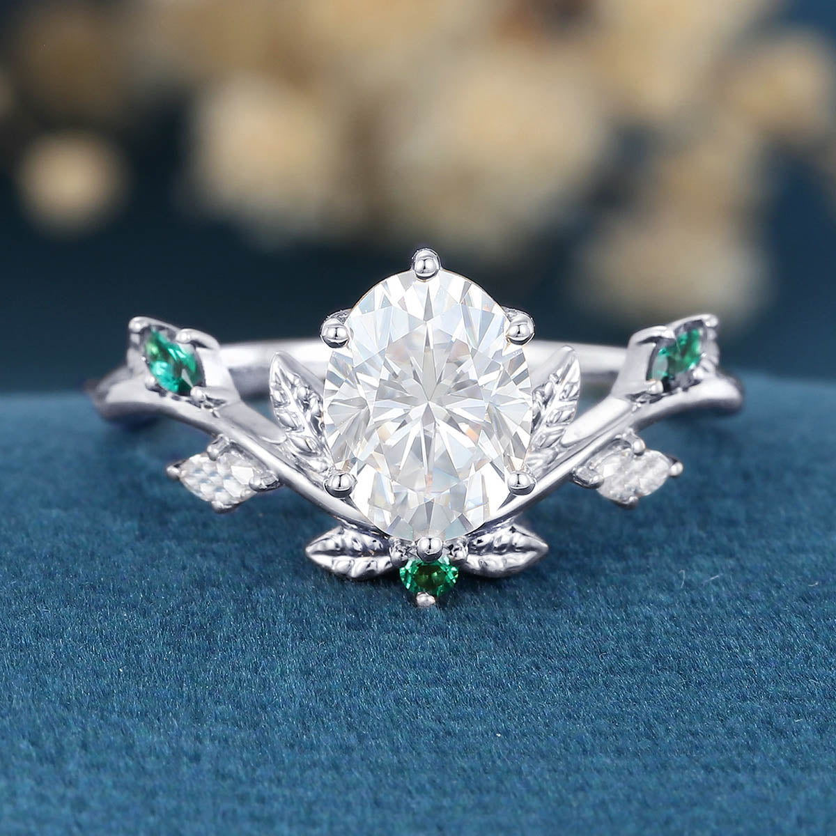 Nature Inspired Oval cut Moissanite Leaf Engagement Ring