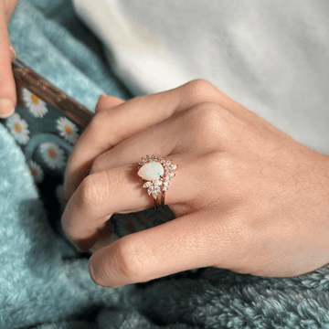 Nature Inspired Pear cut Opal Leaf Gold Engagement Ring