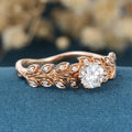 Nature Inspired Round cut Moissanite Leaf Gold Engagement Ring