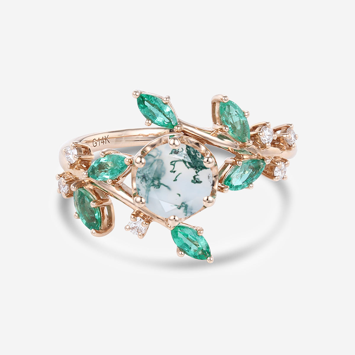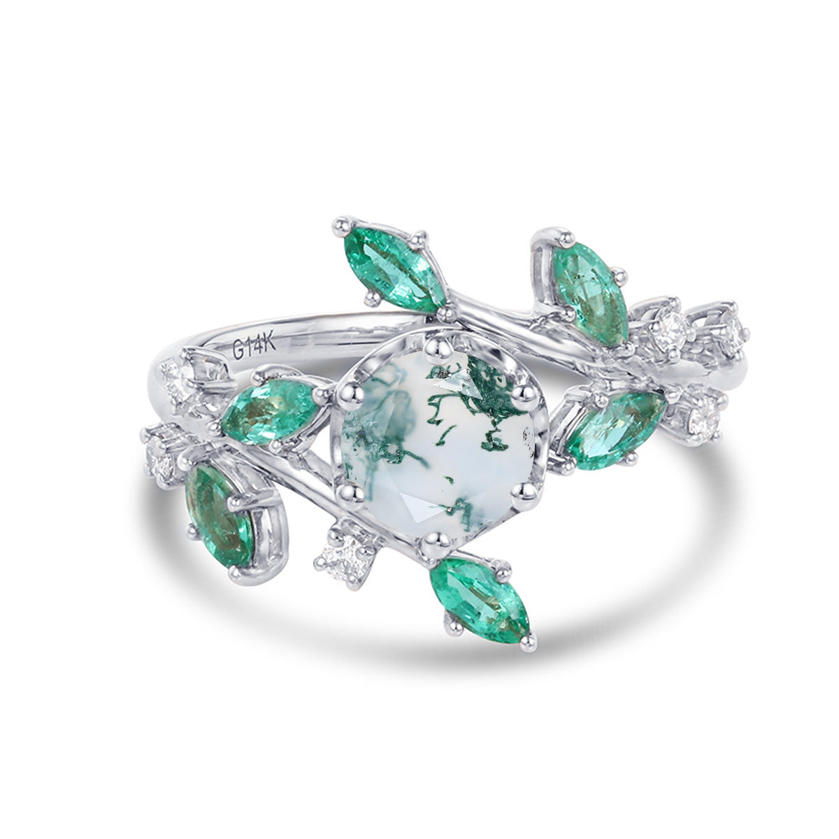 Type: Moissanite 0.09 Carat +Natural Emeralds 0.46 Carat Or Natural Diamonds 0.09 Carat +Natural Emeralds 0.46 Carat Clarity: SI-V VS Color: G-H Or Lab-grown Diamonds 0.09 Carat +Natural Emeralds 0.46 Carat Shaped: Round cut | Marquise cut |