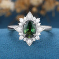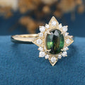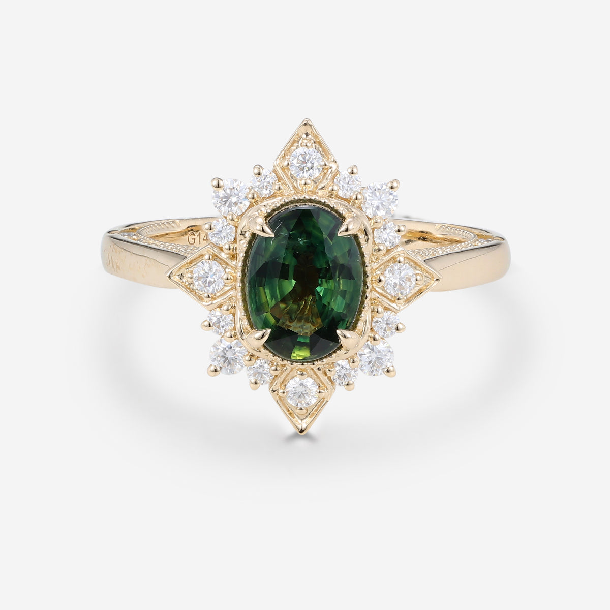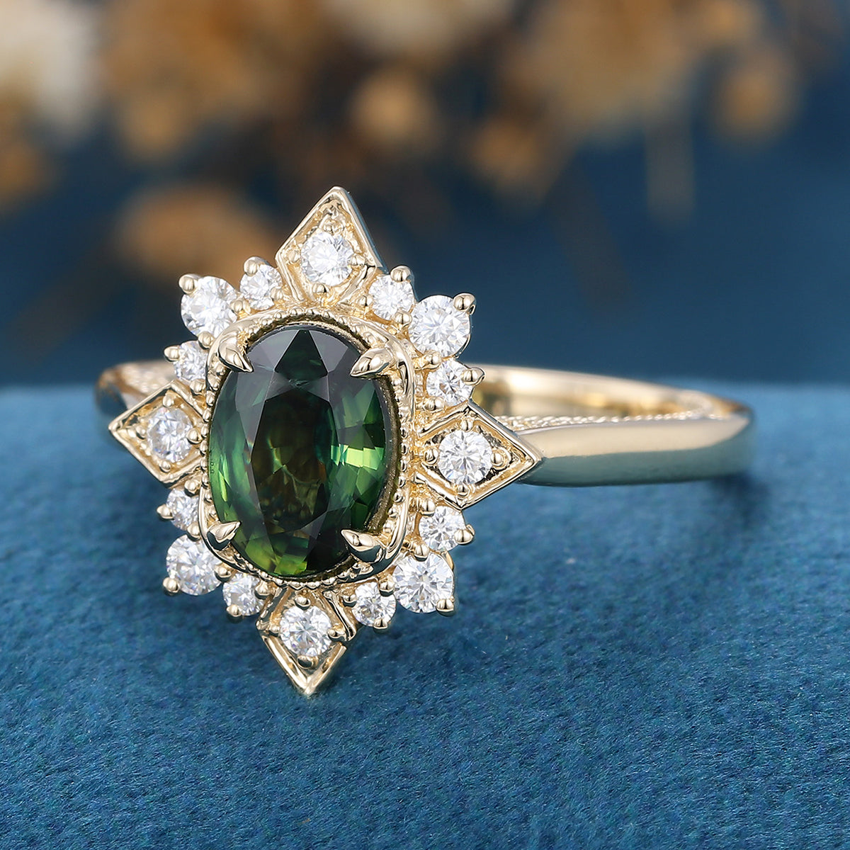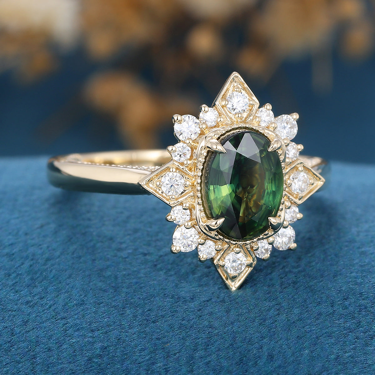 Oval cut Blue Green Sapphire Halo Moissanite | Diamonds Engagement ring