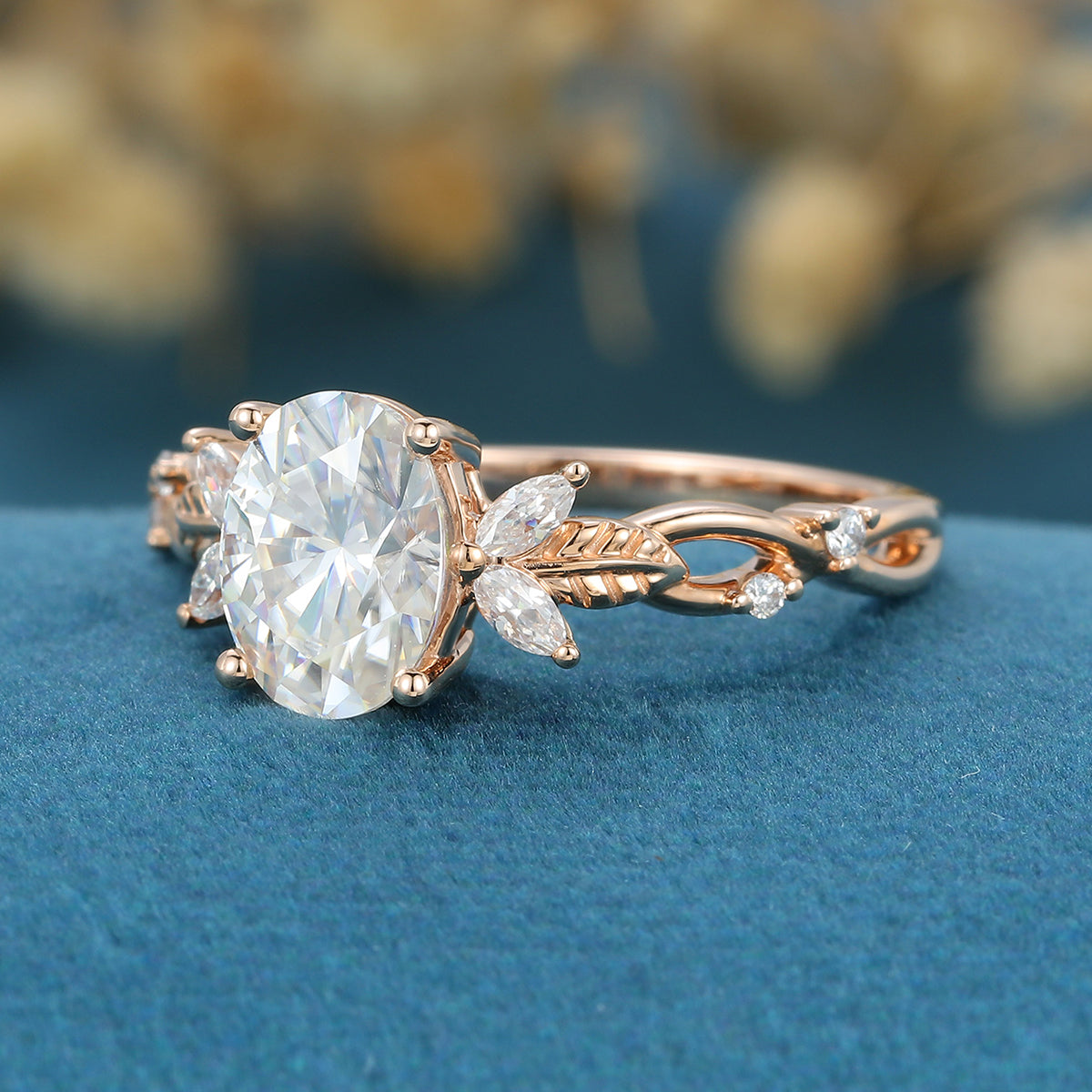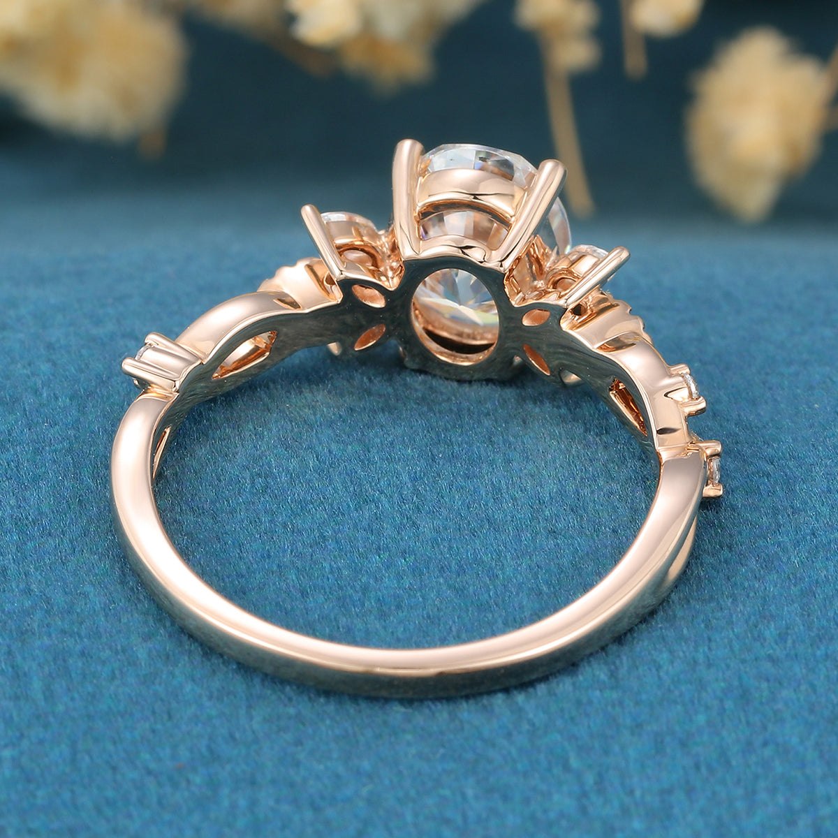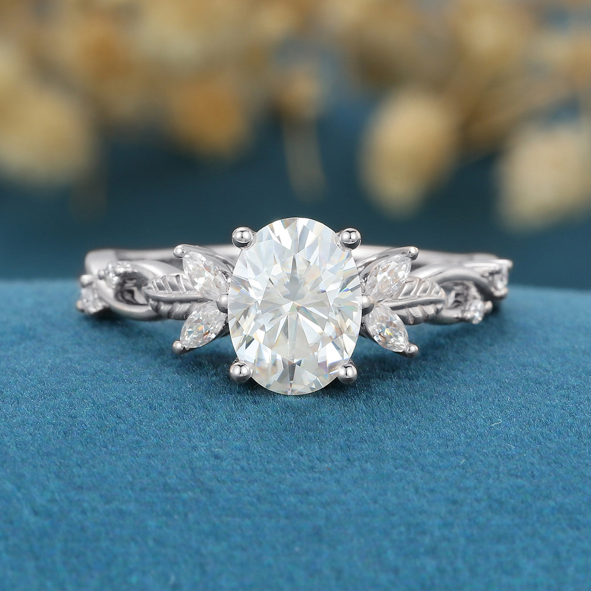 Oval cut Moissanite Cluster Engagement Ring