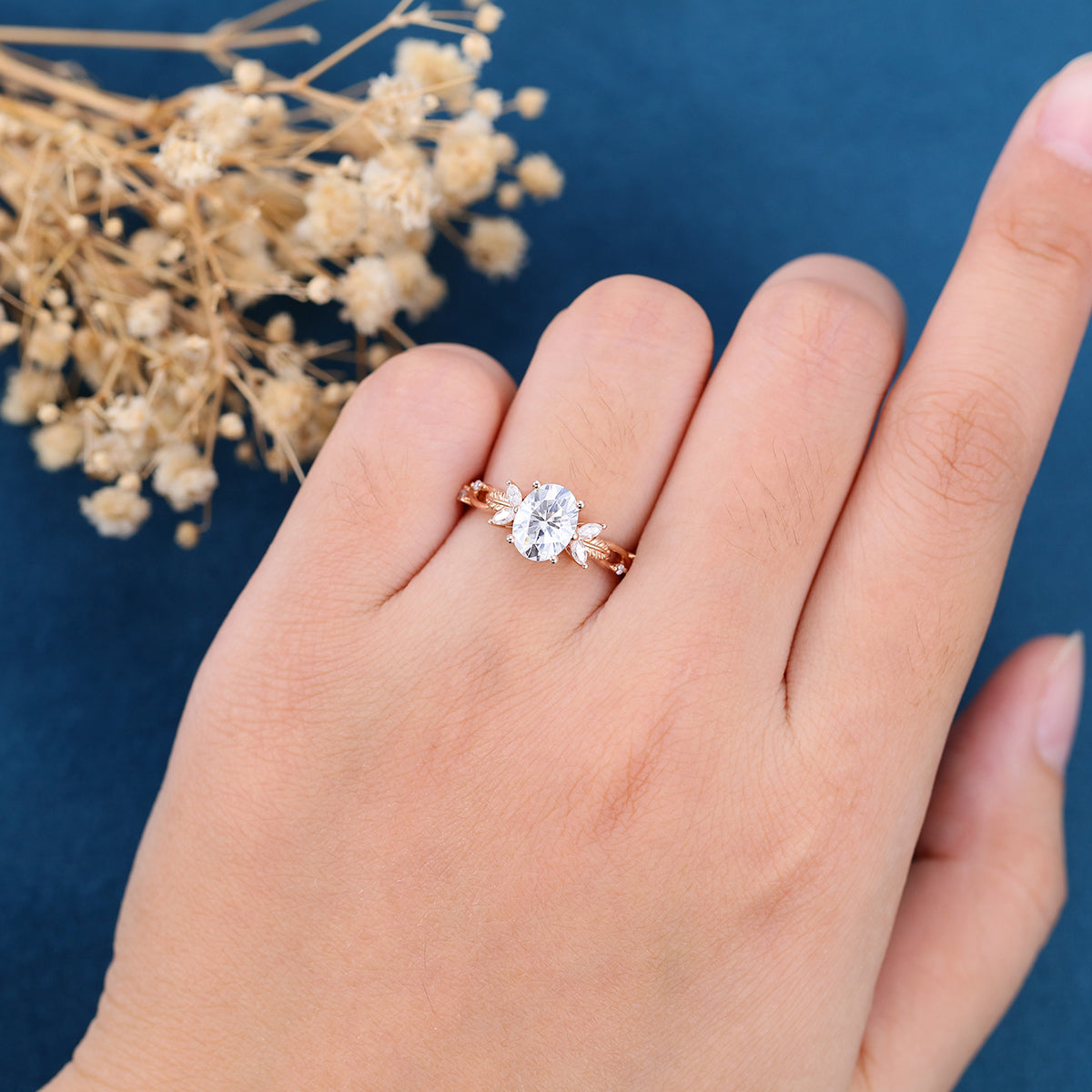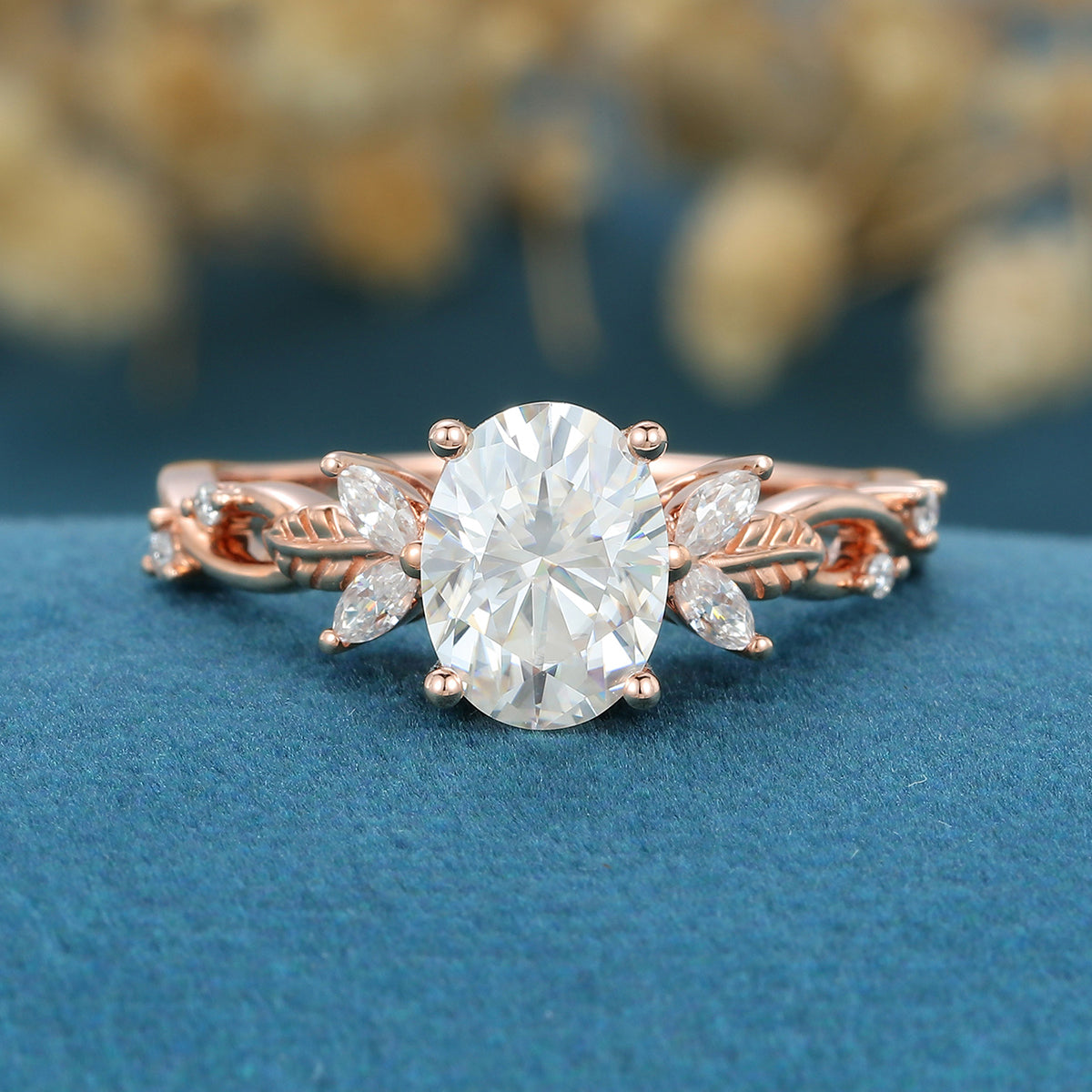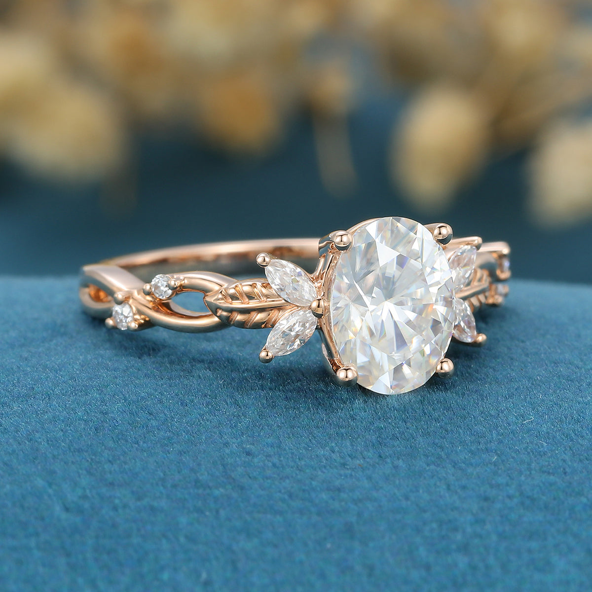 Oval cut Moissanite Cluster Engagement Ring