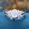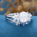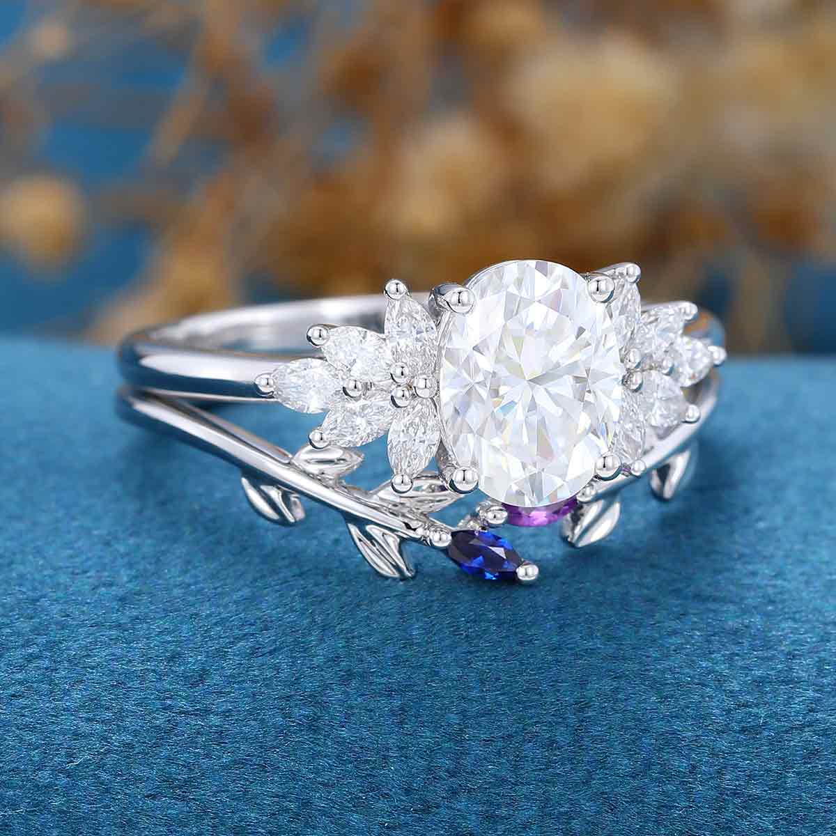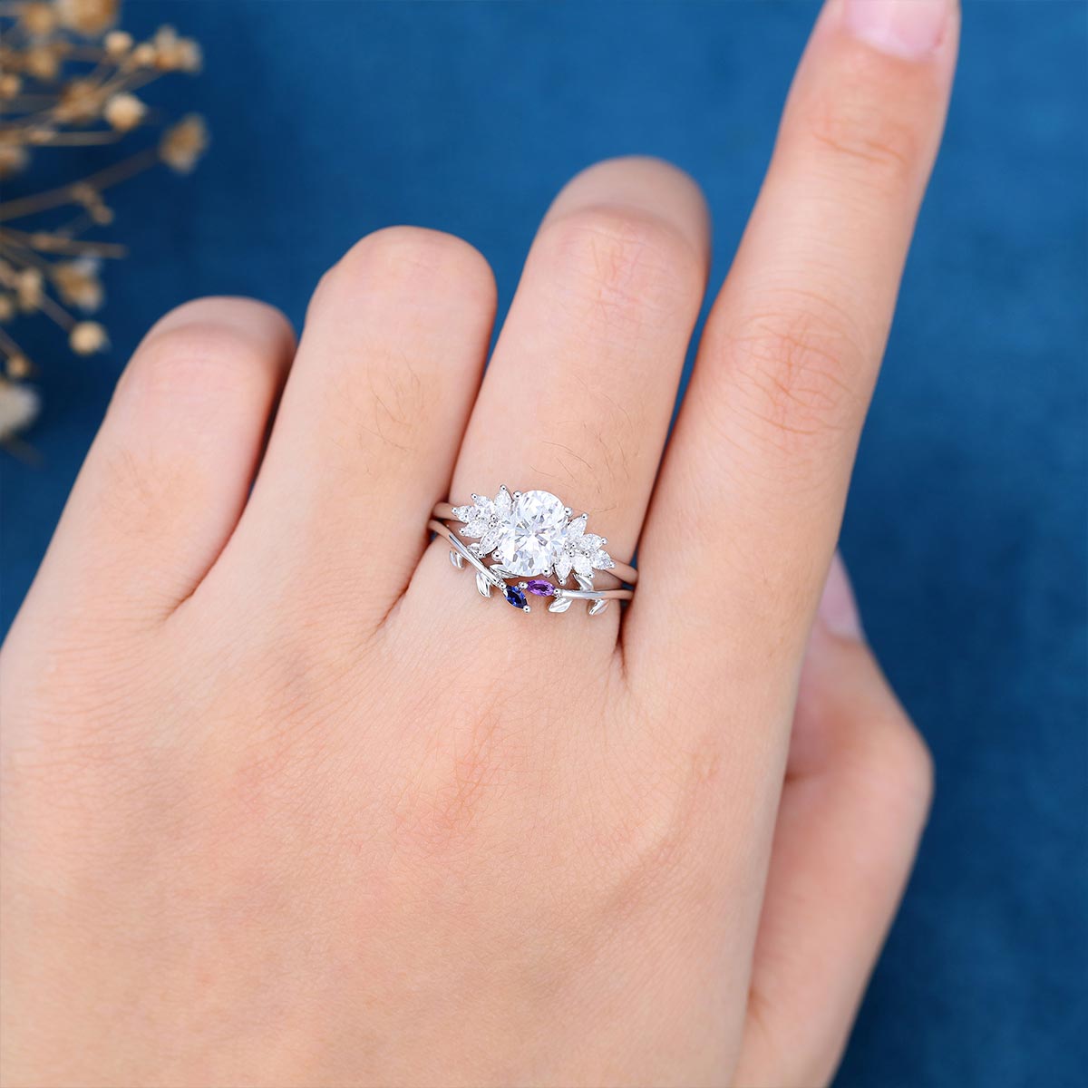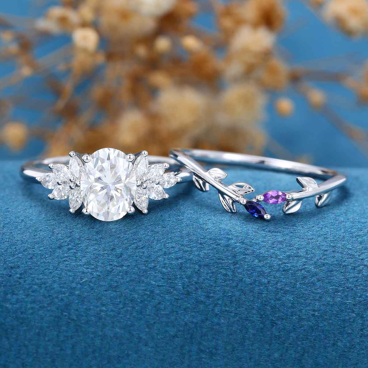 Oval cut Moissanite Cluster Engagement ring Bridal Set