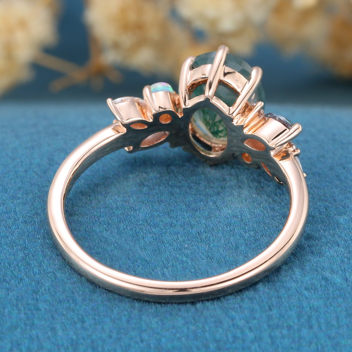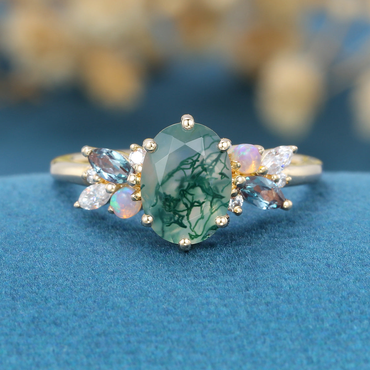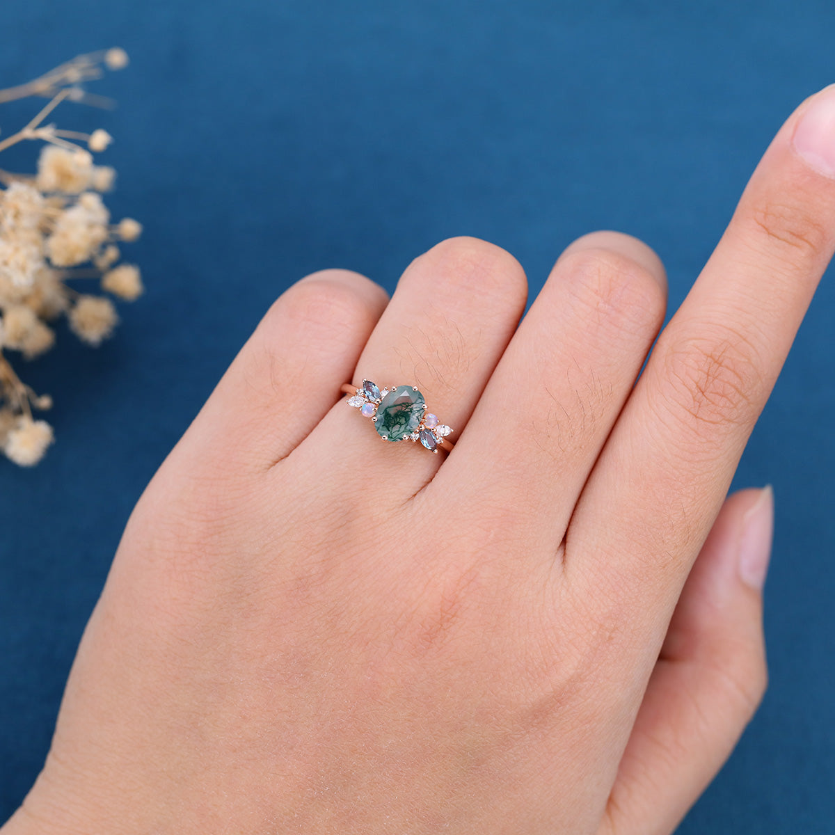 Type: Moss Agate 1.3 Carat Size: 6 x 8 mm Shape: Oval cut Total weight: 2.7g(Depending on the ring size) |