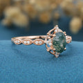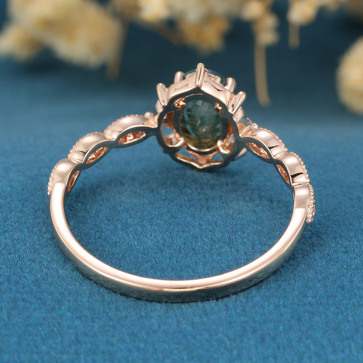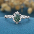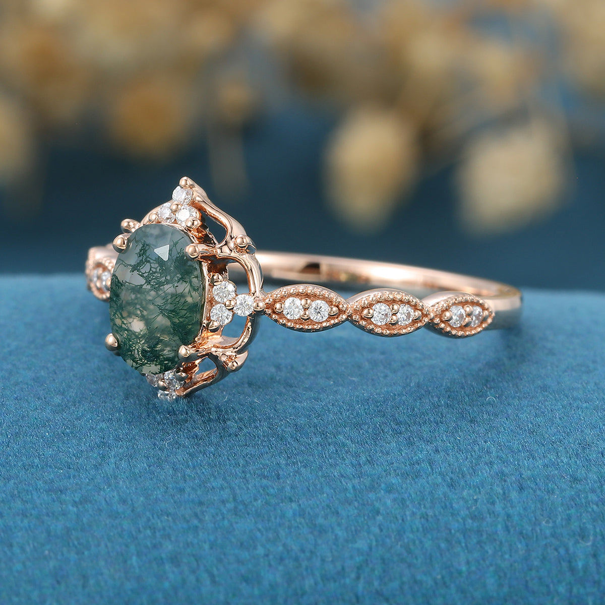 Oval cut Moss Agate Matching Moissanite | Diamonds Gold Engagement Ring