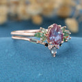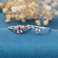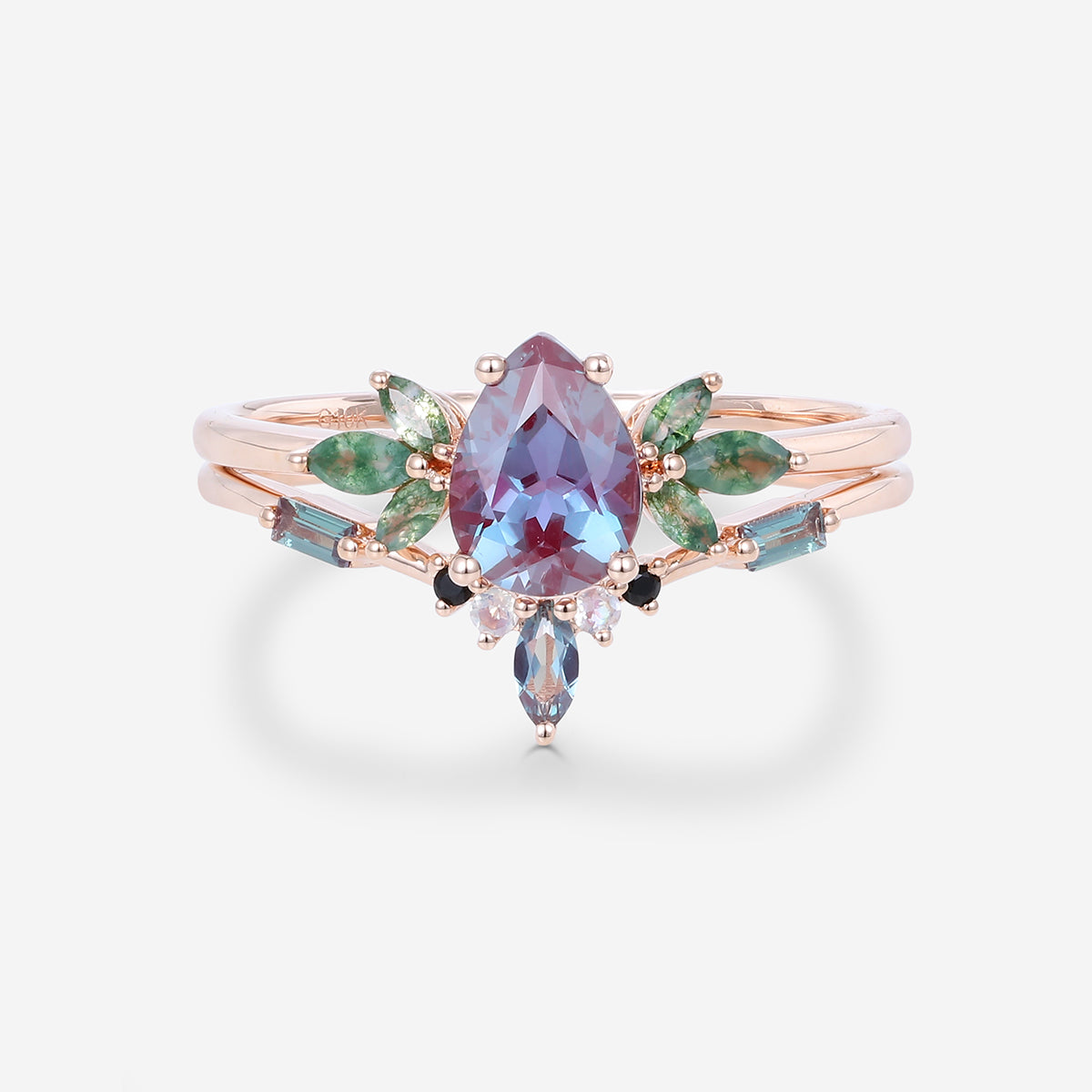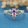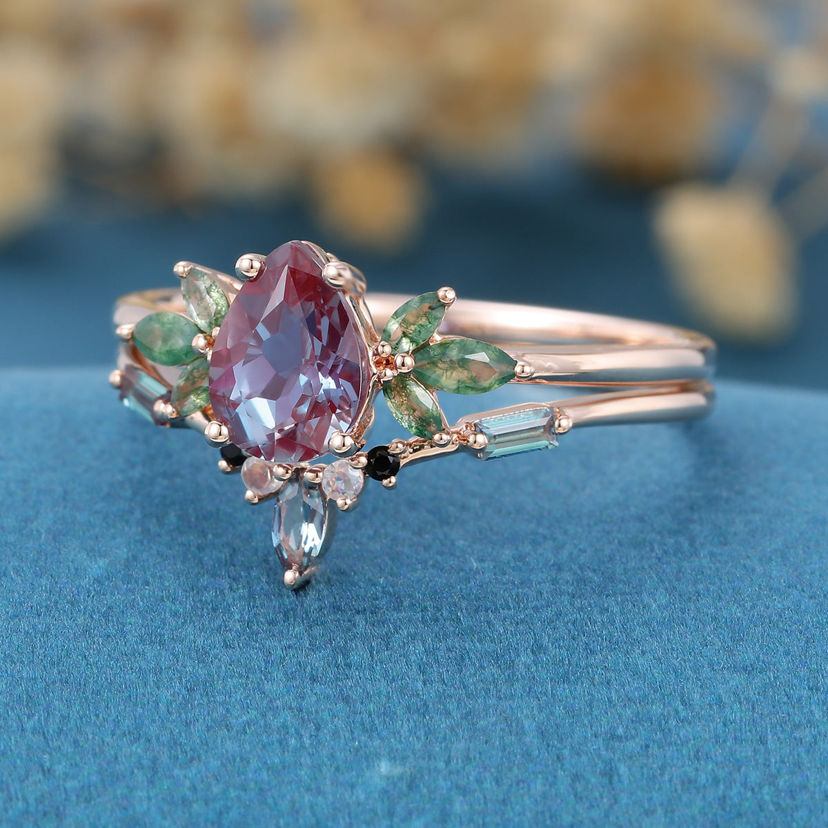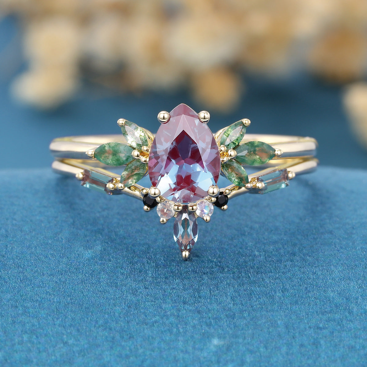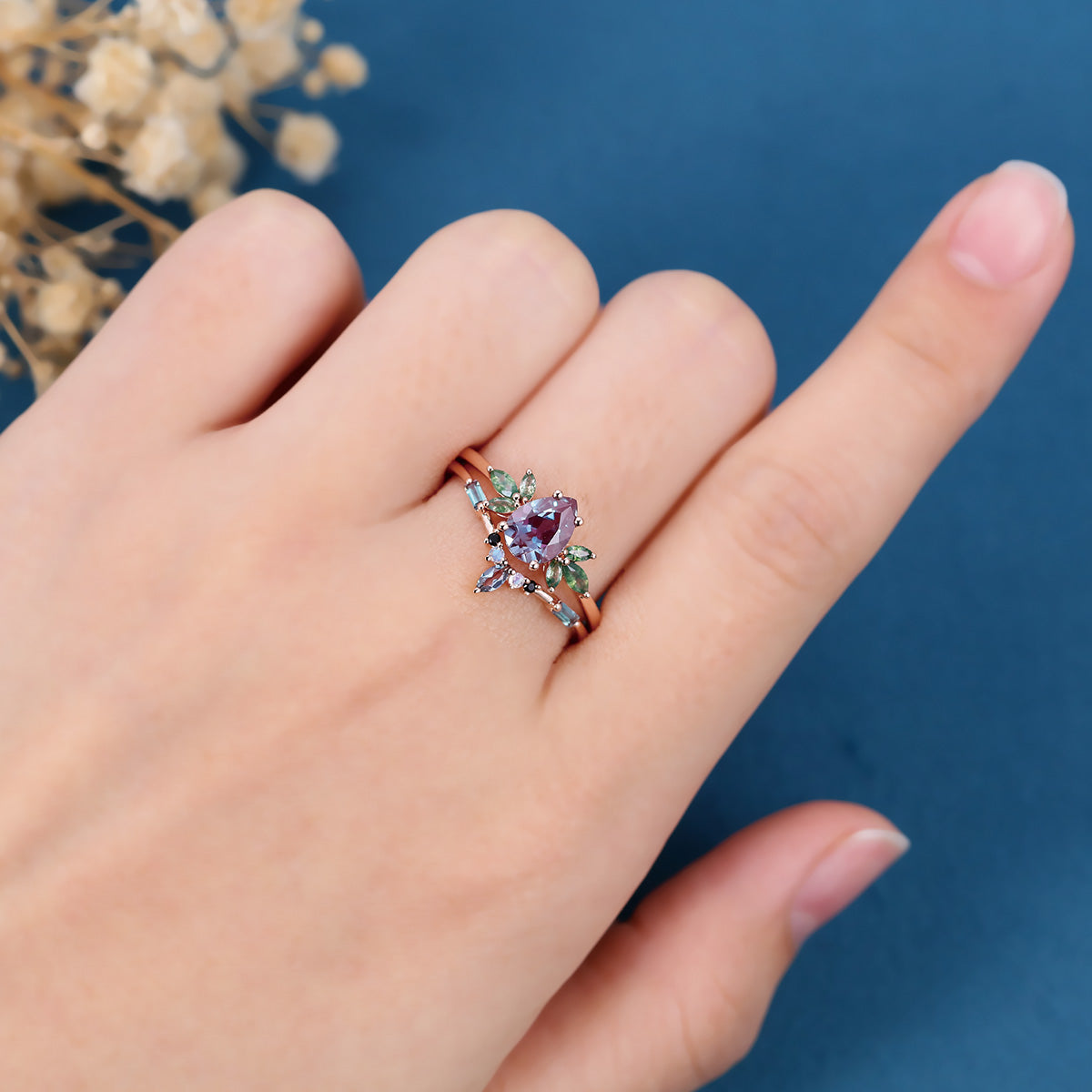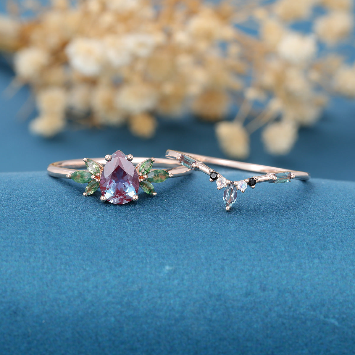 Pear cut Alexandrite Cluster Engagement Ring Set