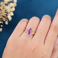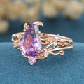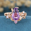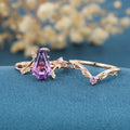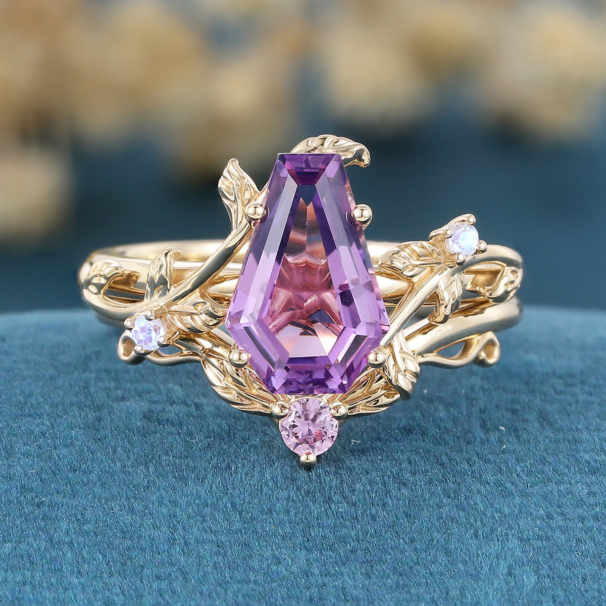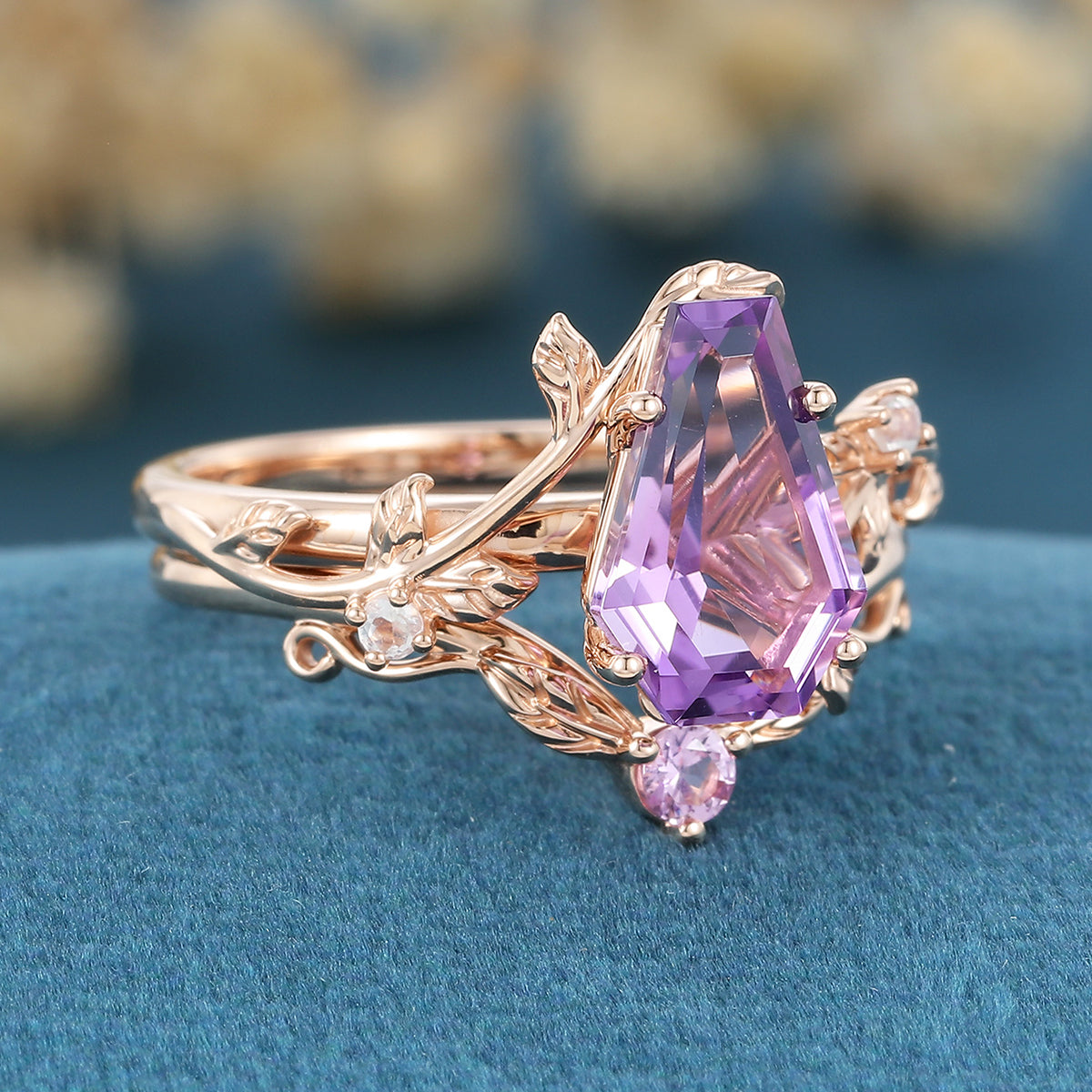 Coffin Cut Amethyst + Natural Pink Sapphire Wedding Bridal Set