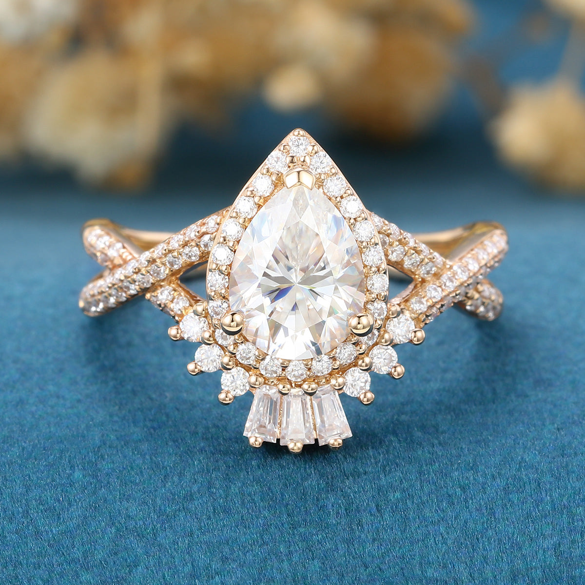 Type: Moissanite 1.2 Carat Size: 6 x 8 mm Shape: Pear cut Total weight: 3.5 g(Depending on the ring size) |