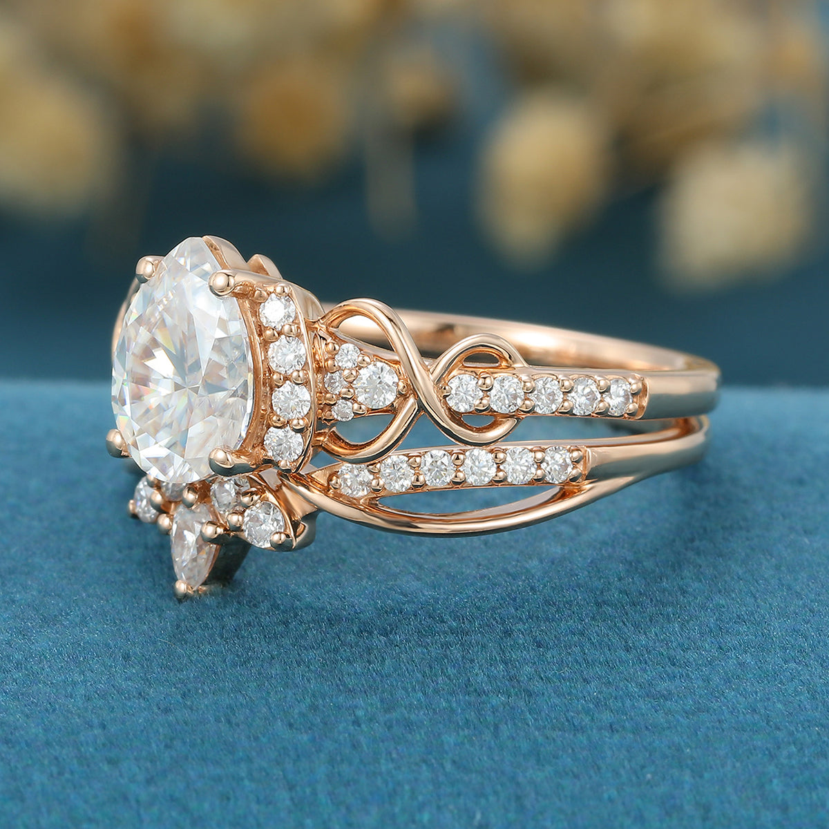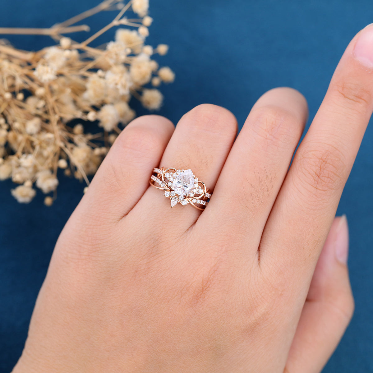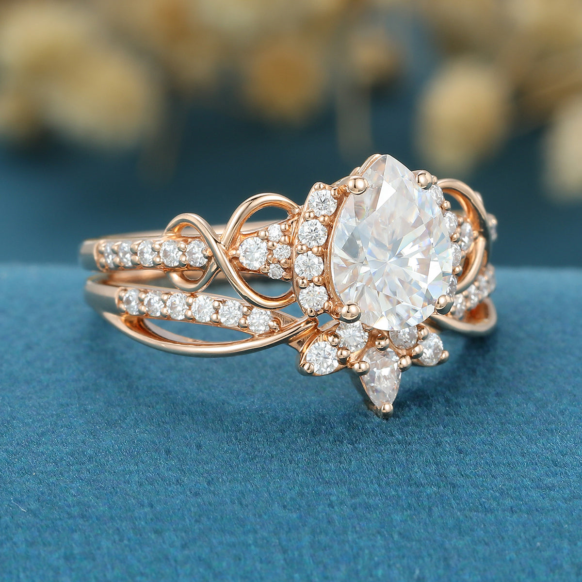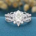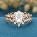 Pear cut Moissanite Engagement ring Bridal Set