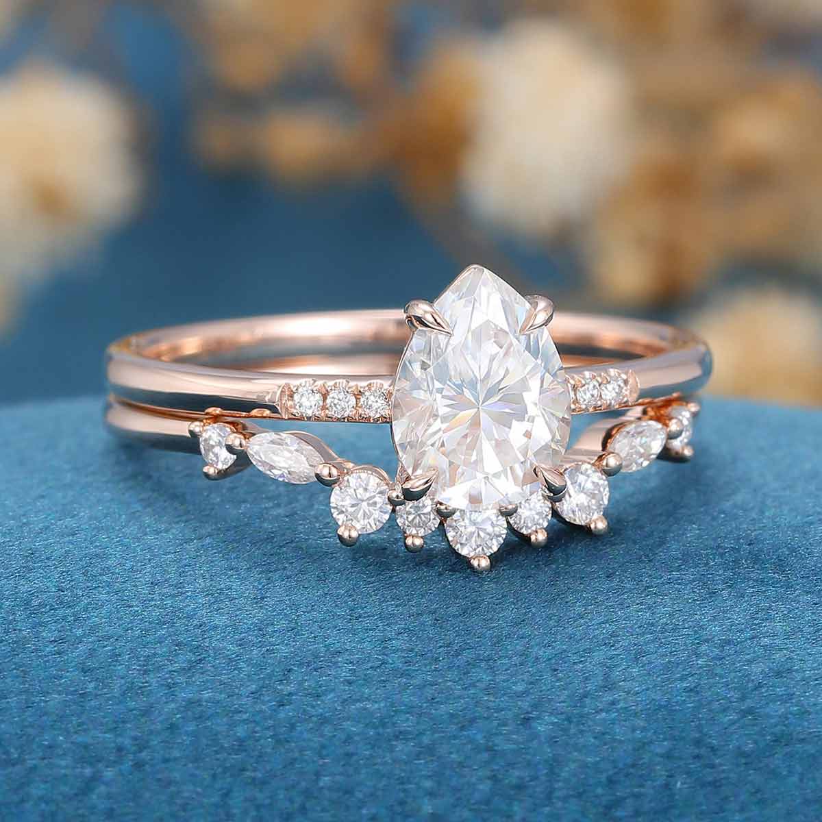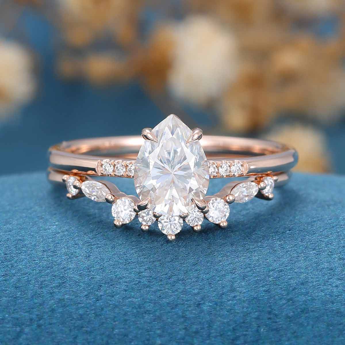Type: Moissanite 1.2 Carat Size: 6*8 mm Shape: Pear cut Band Width: 1.6 mm | Band Thickness :1.2 mm Total weight: 1.9g (Depending on the ring size) |