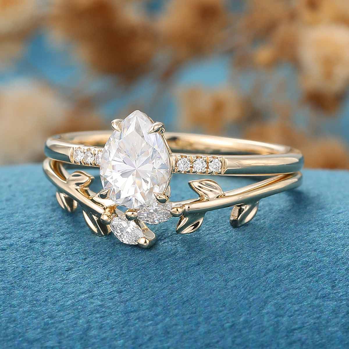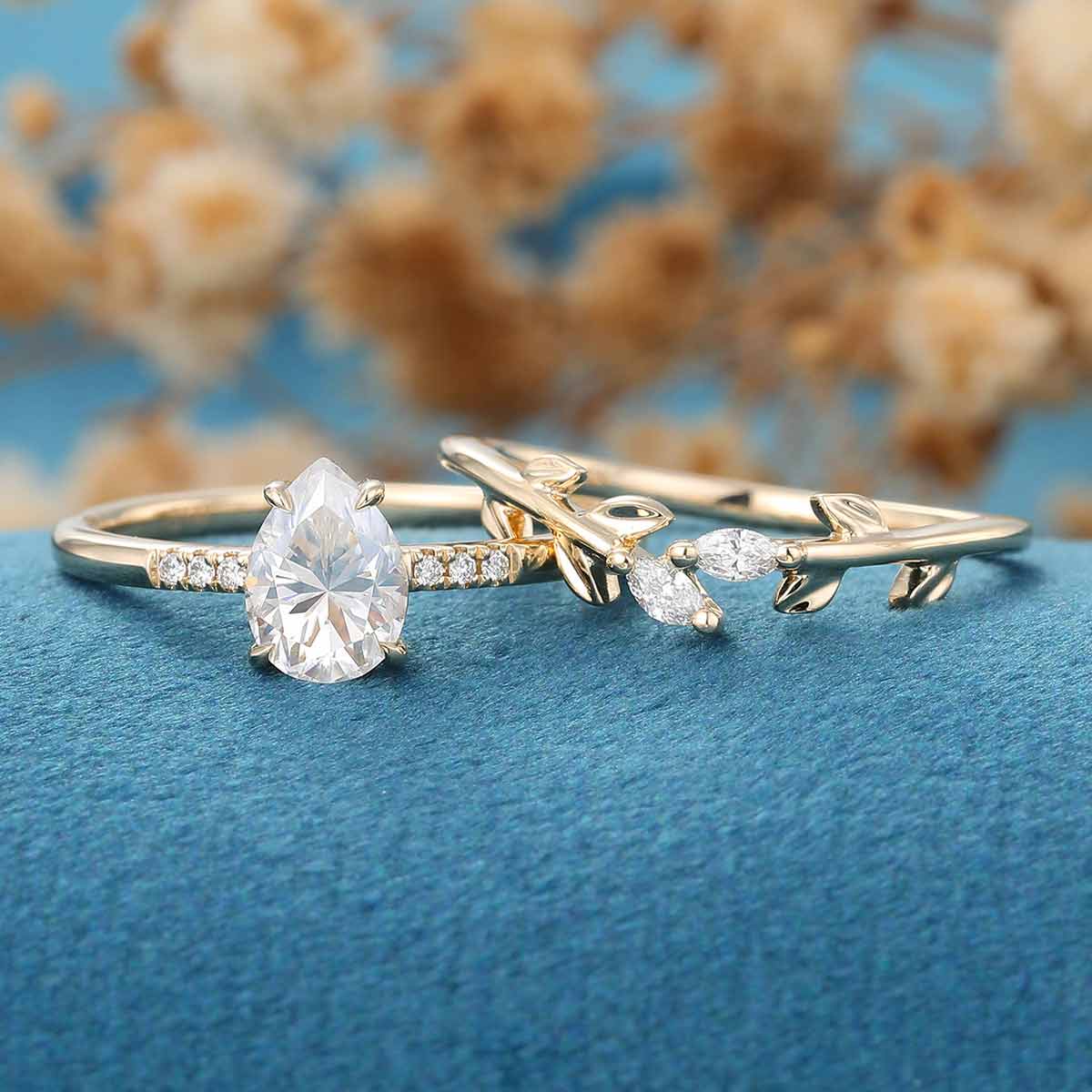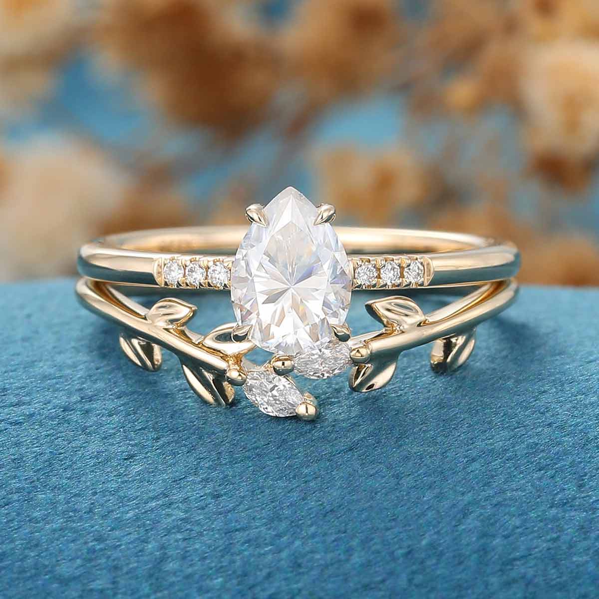 Type: Moissanite 1.2 Carat Size: 6 x 8 mm Shape: Pear cut Band Width: 1.6 mm | Band Thickness :1.2 mm Total weight: 1.9g (Depending on the ring size) |