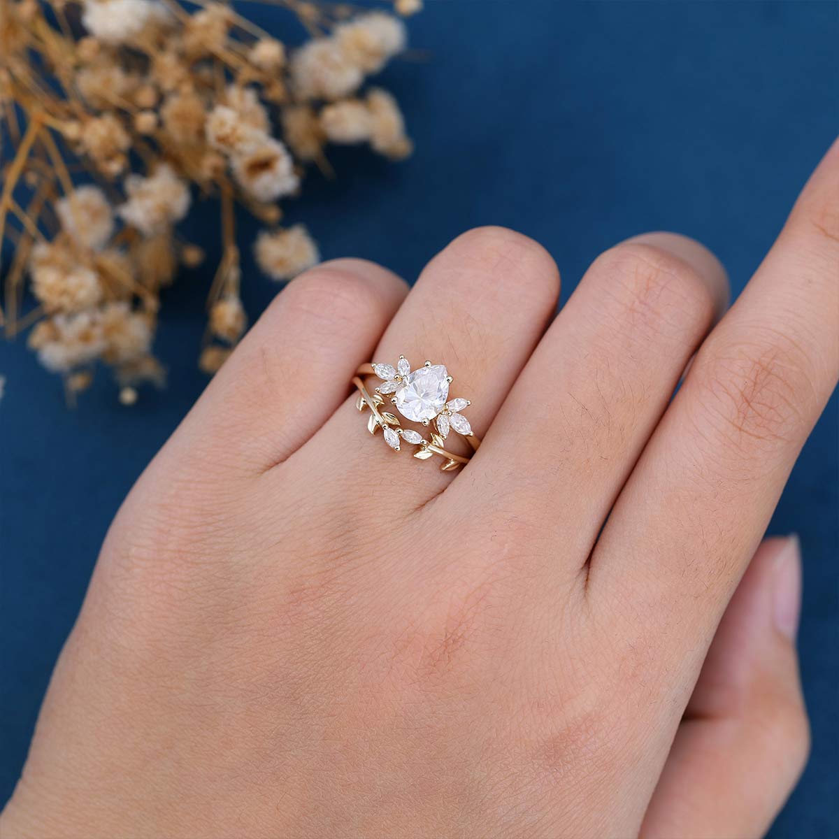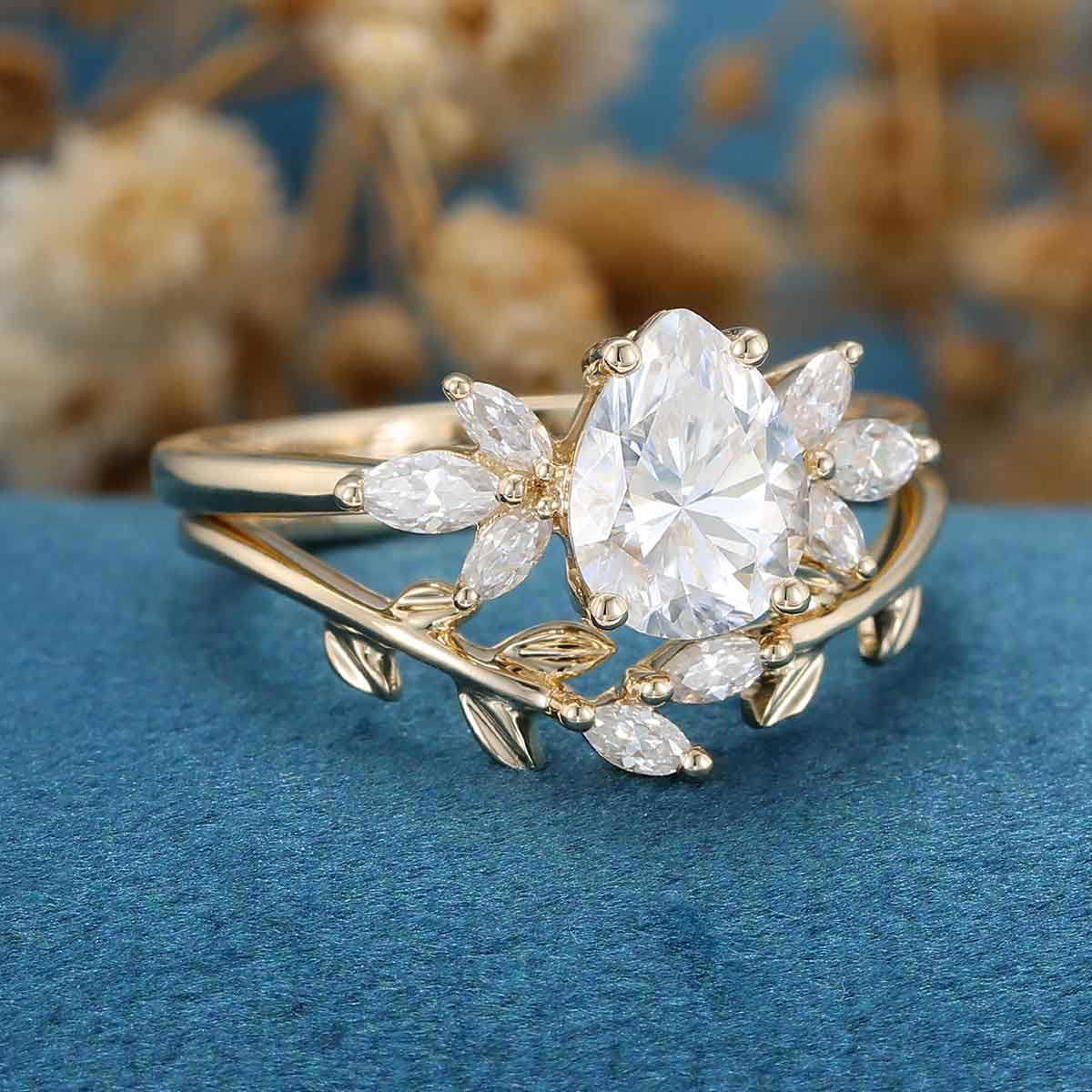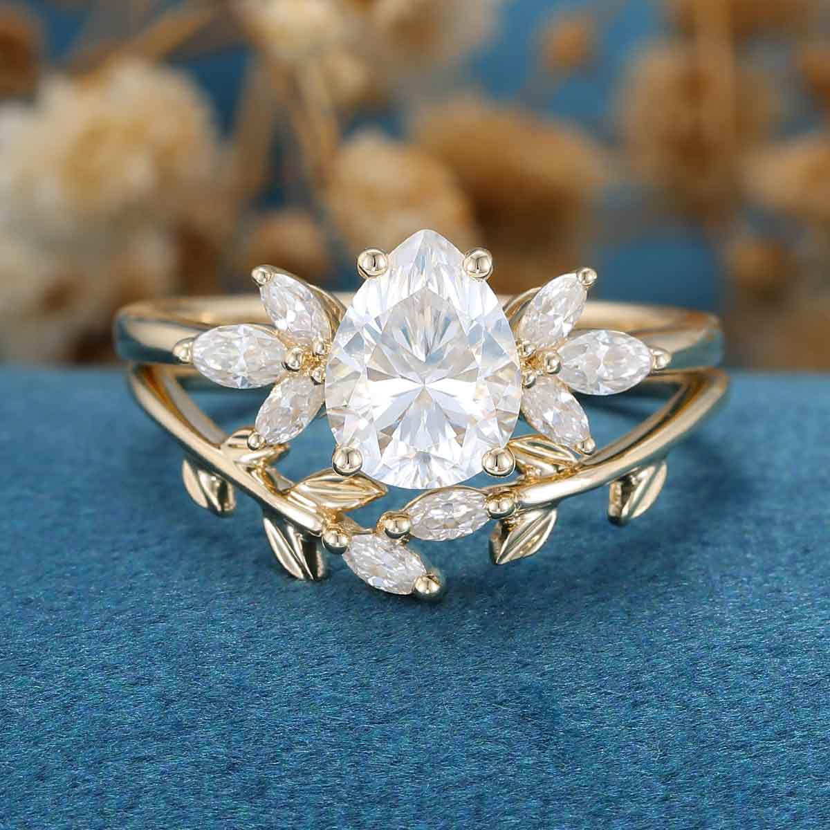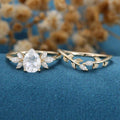 Pear cut Moissanite Engagement ring Bridal Set