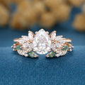 Pear cut Moissanite Engagement ring +Moss agate Wedding Bridal set