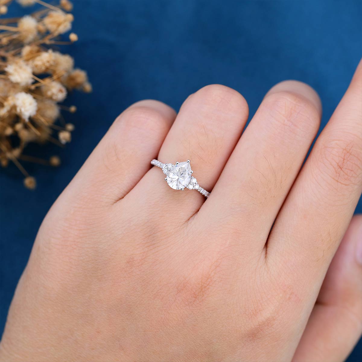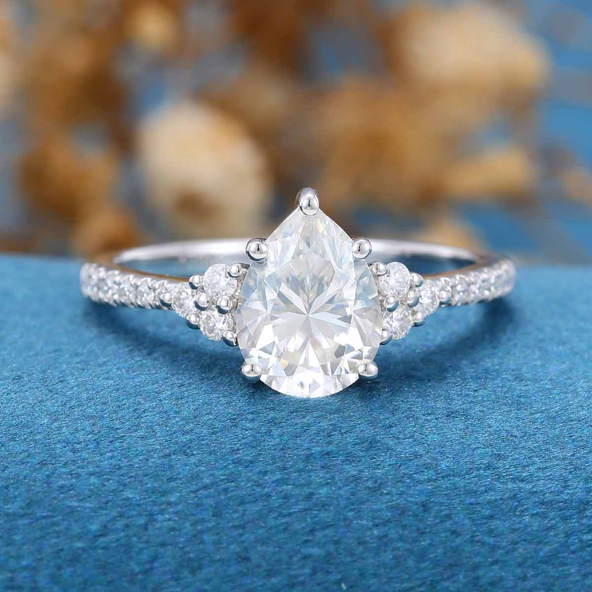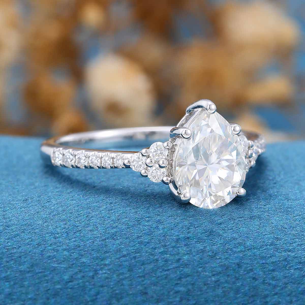Pear cut Moissanite + Half Eternity Diamonds Engagement ring